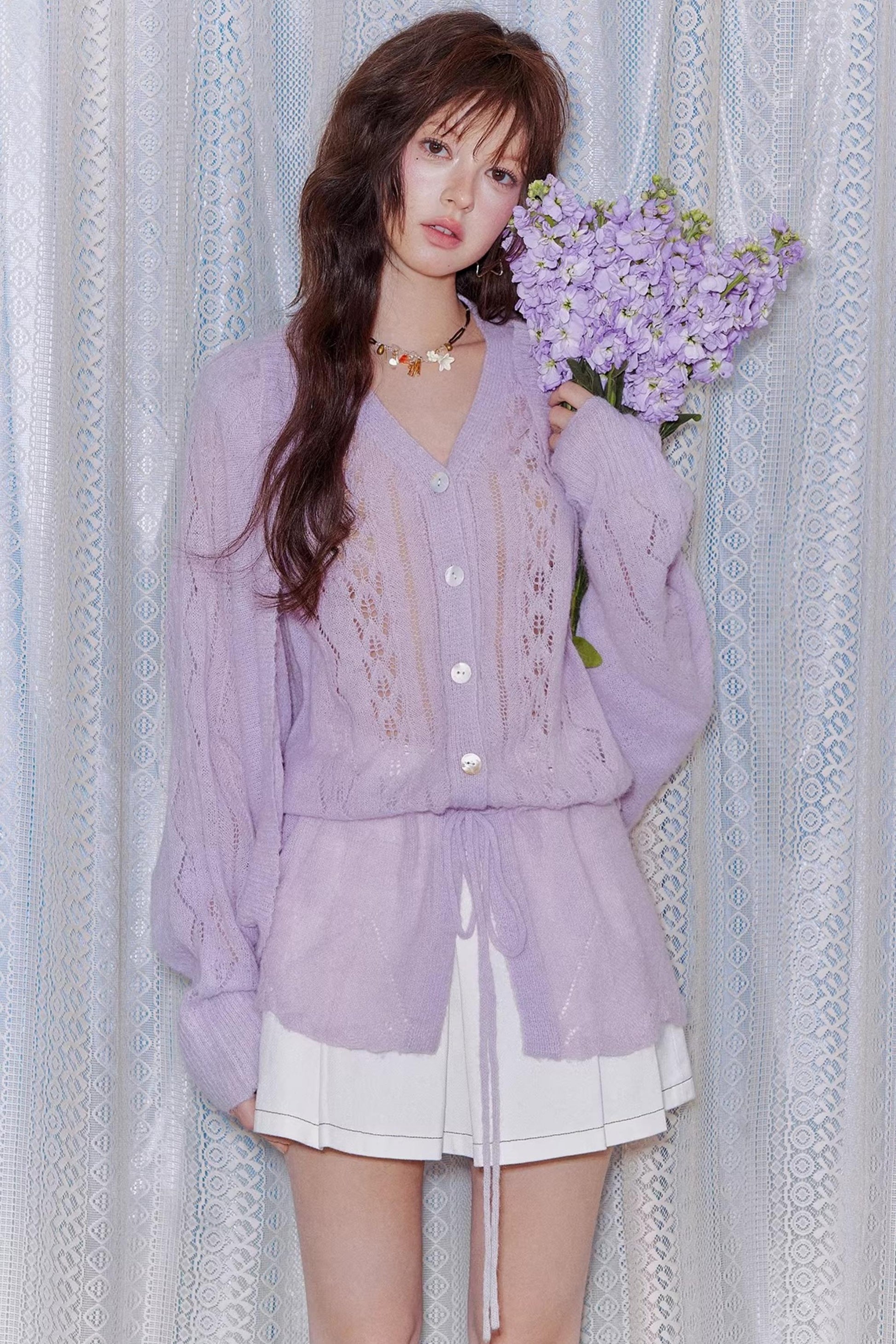Mohair Purple Cut-Out Cardigan Set