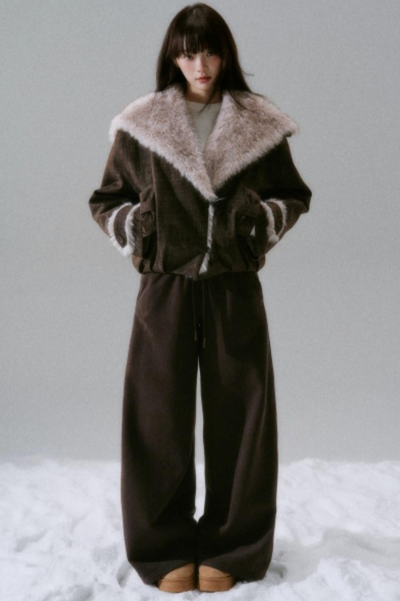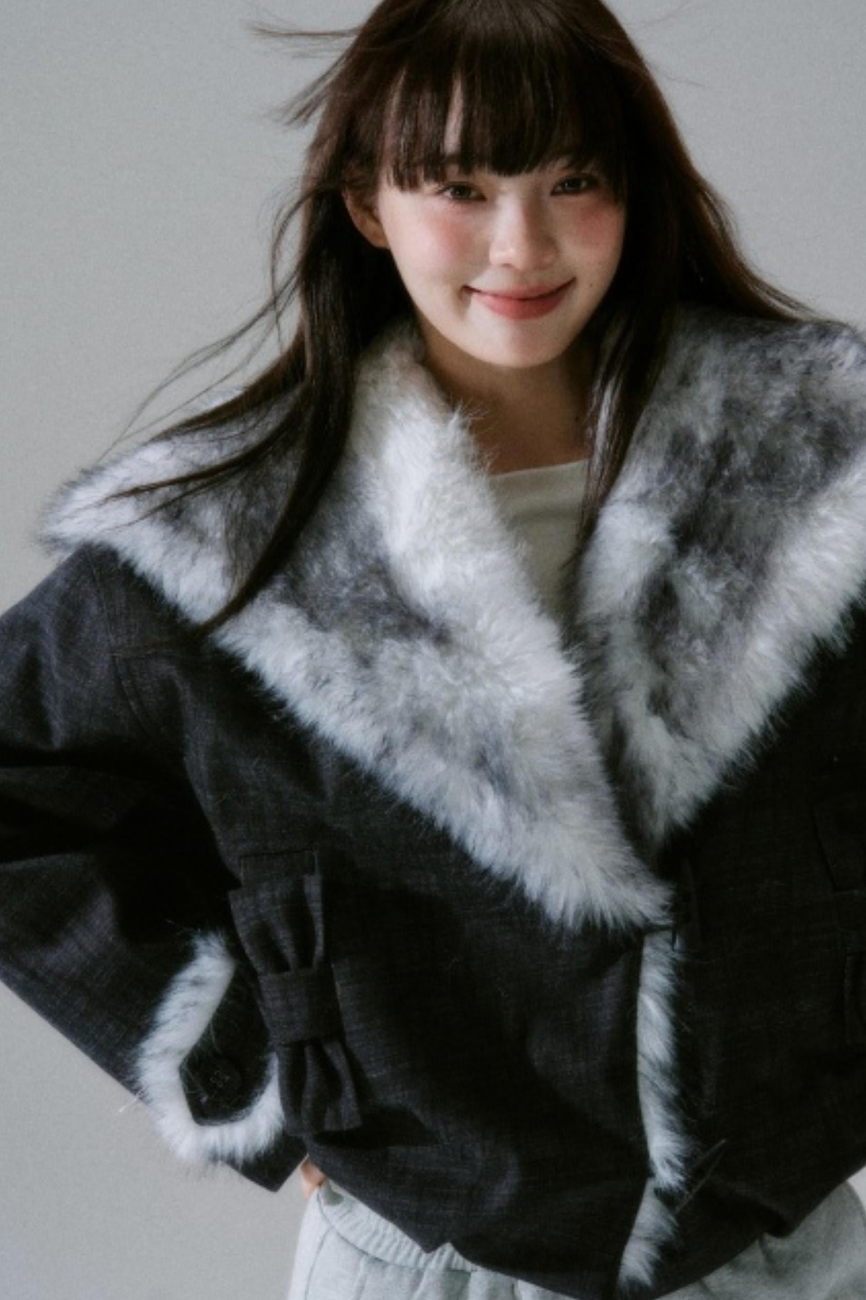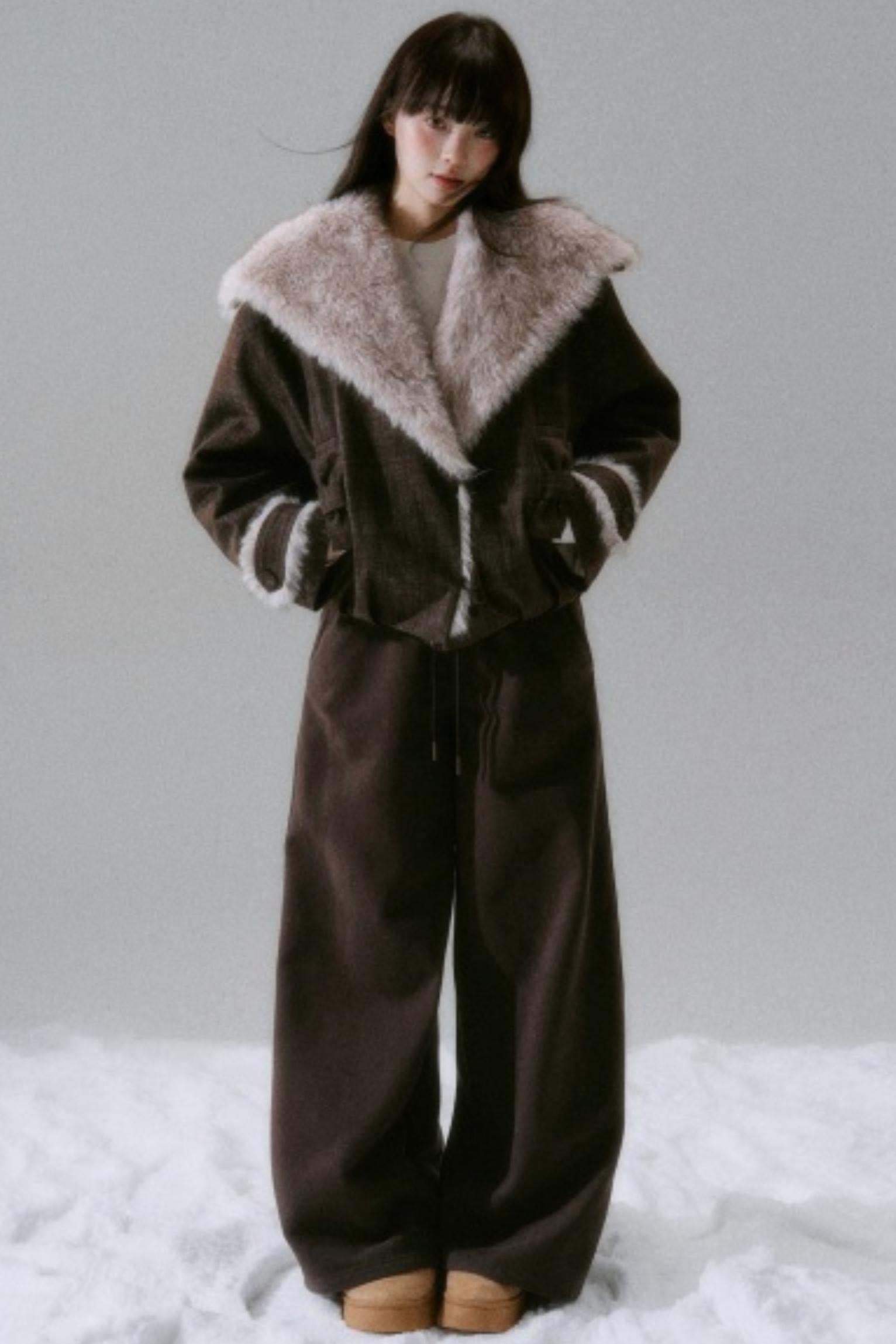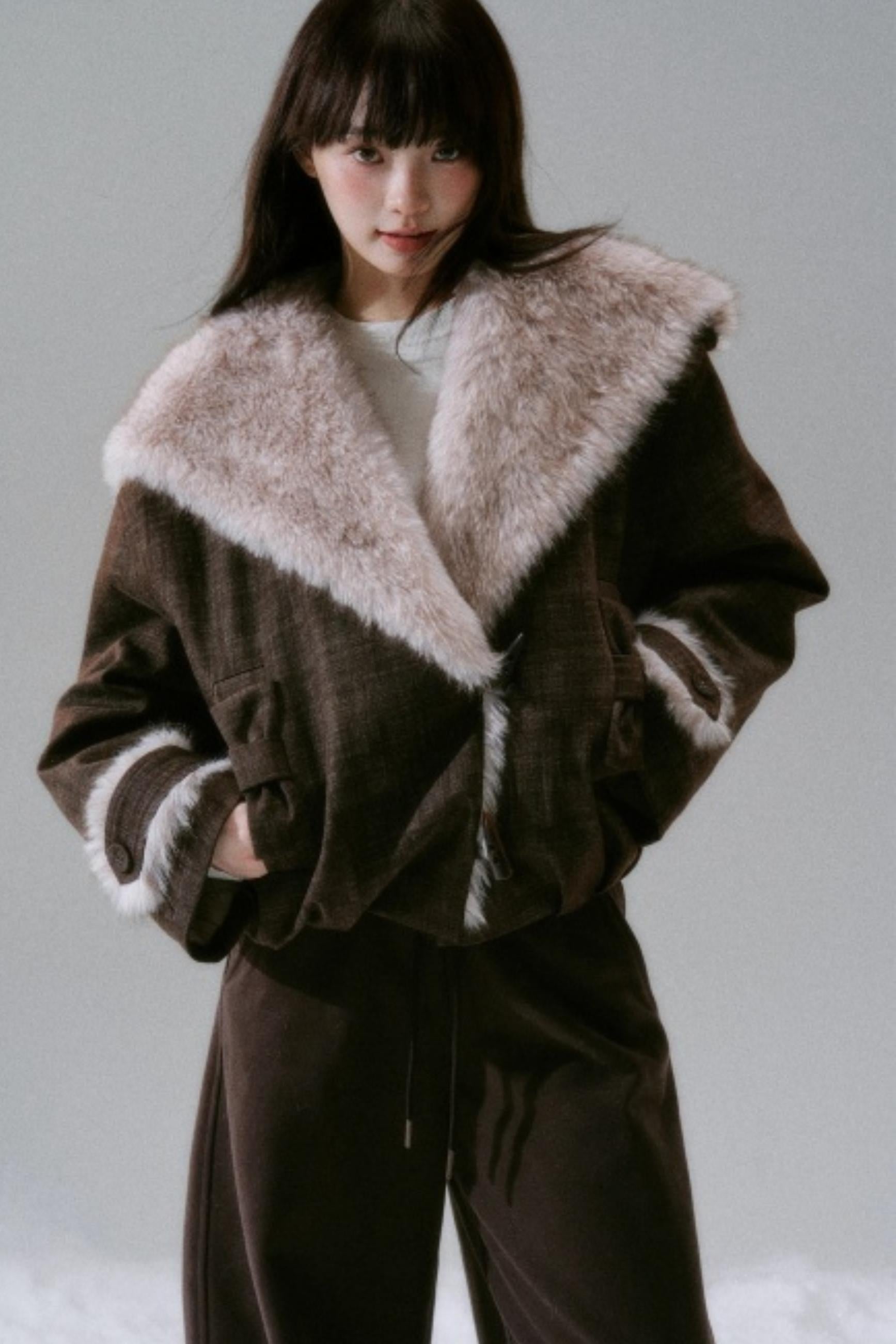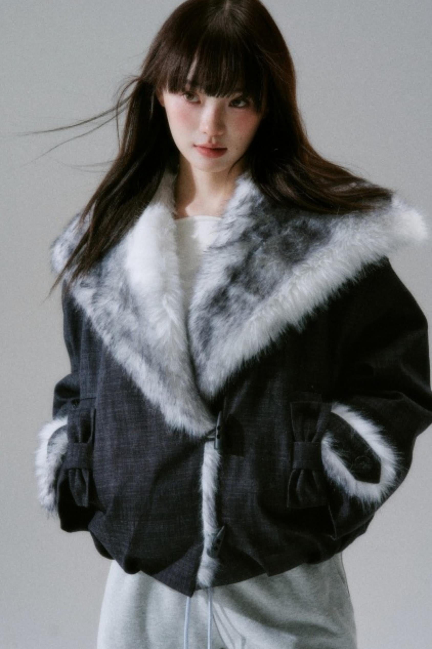 Navy Collar Plush Jacket