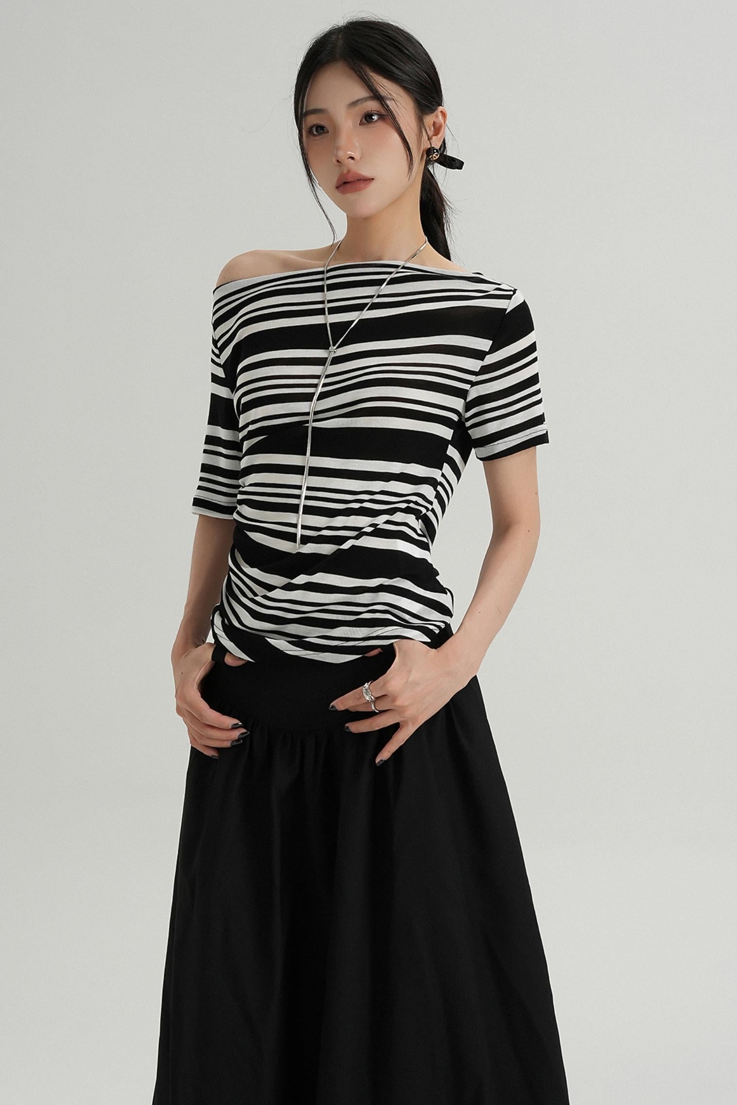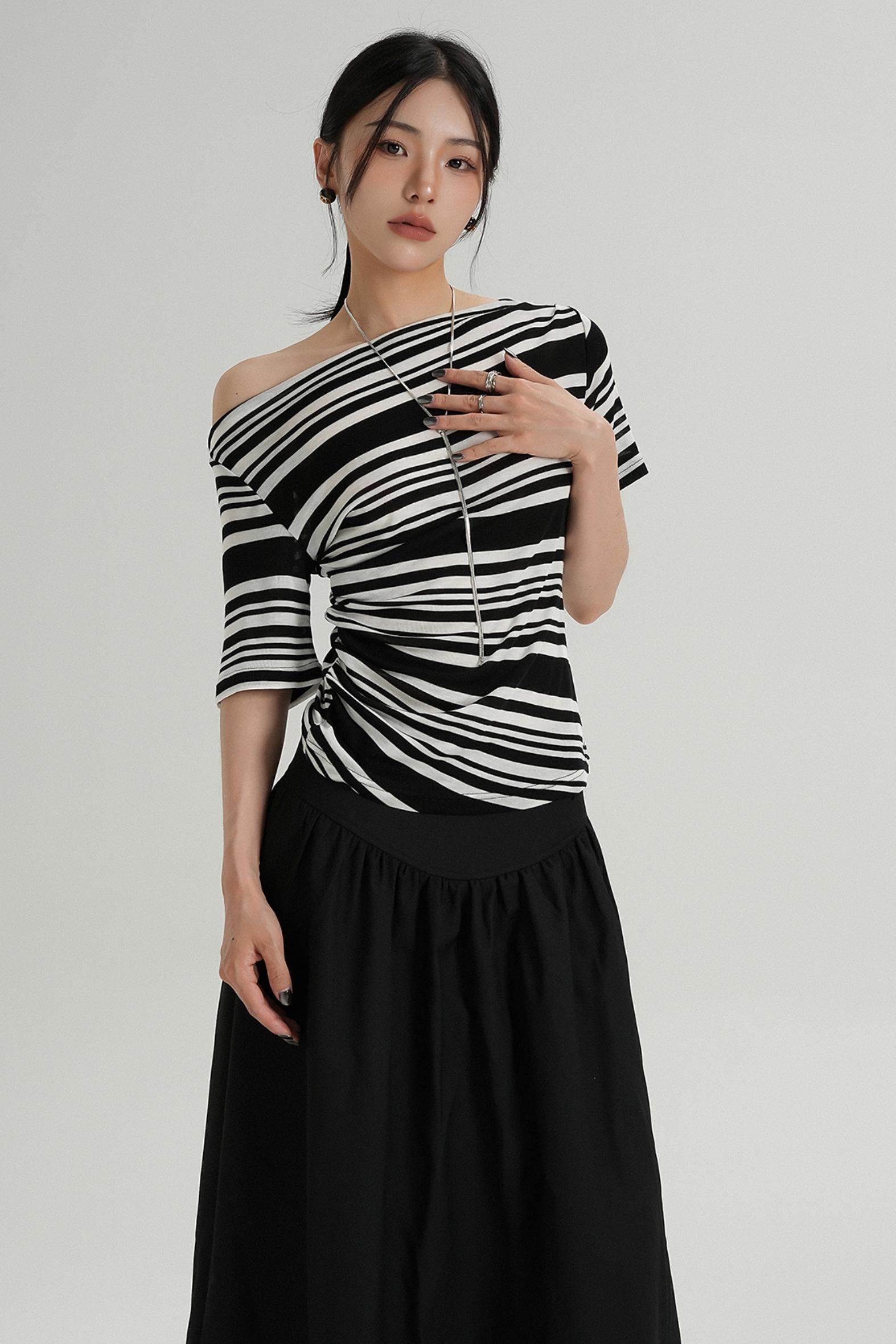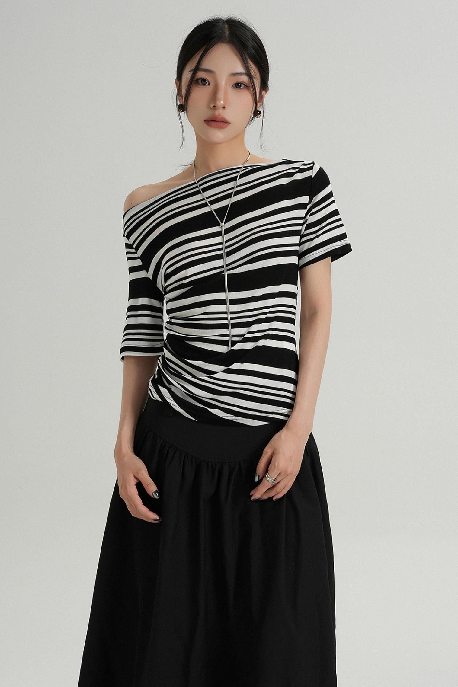 Stripe One-Shoulder Top