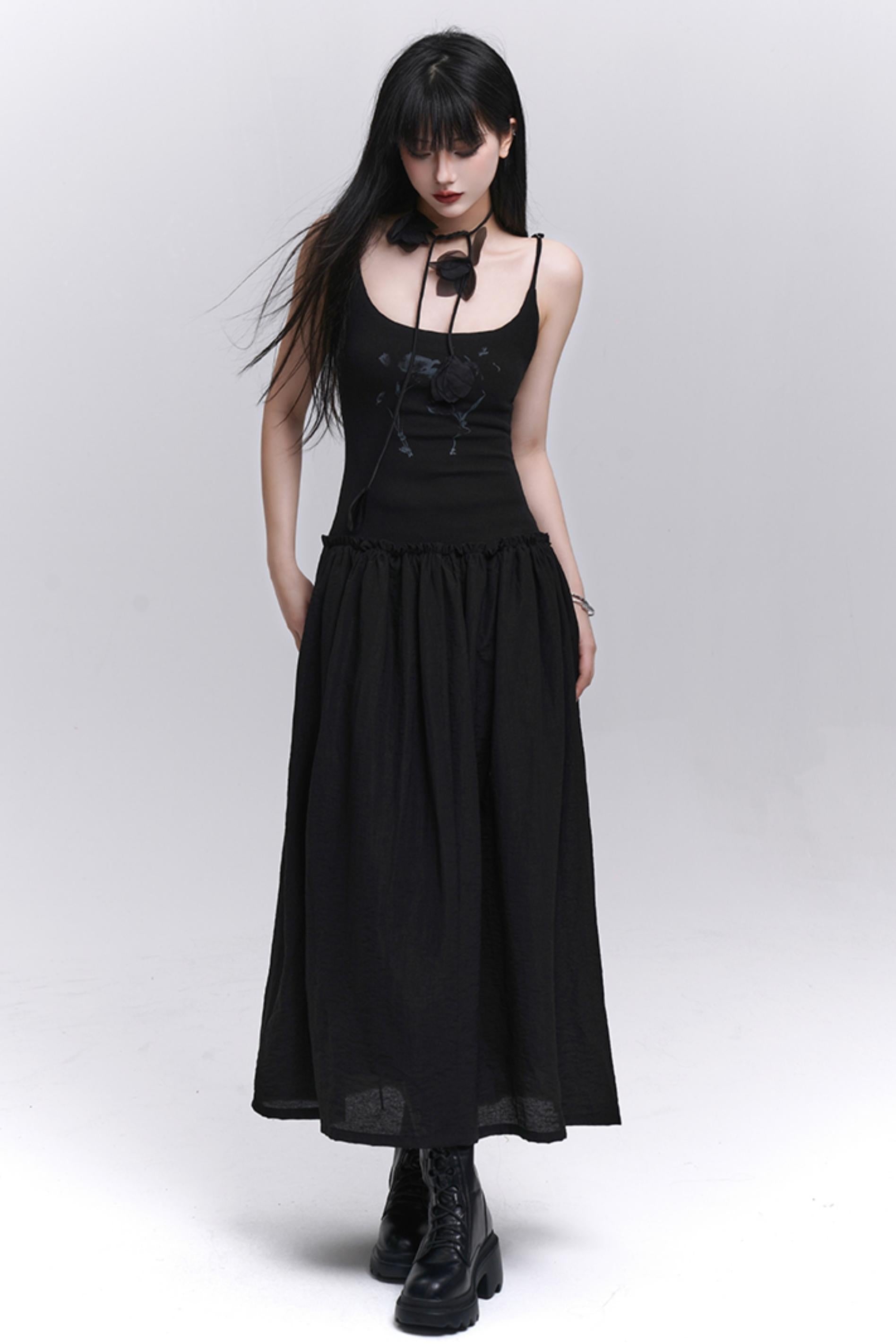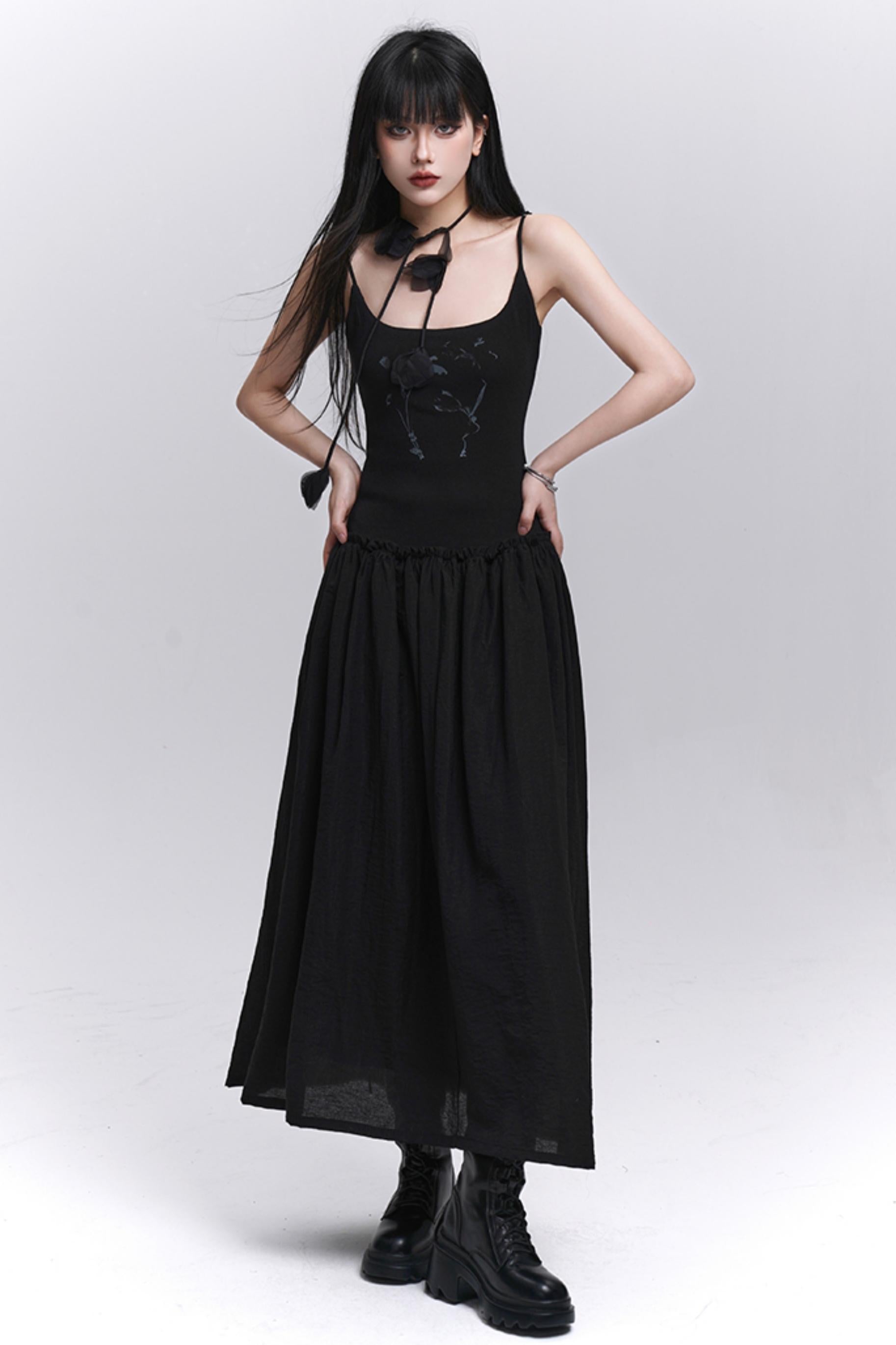 Summer Black-White Halter Dress