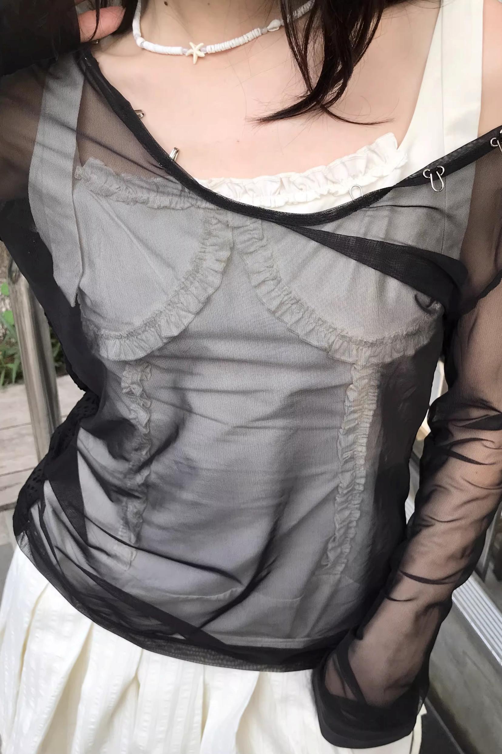Two-Tone Sheer Mesh Blouse