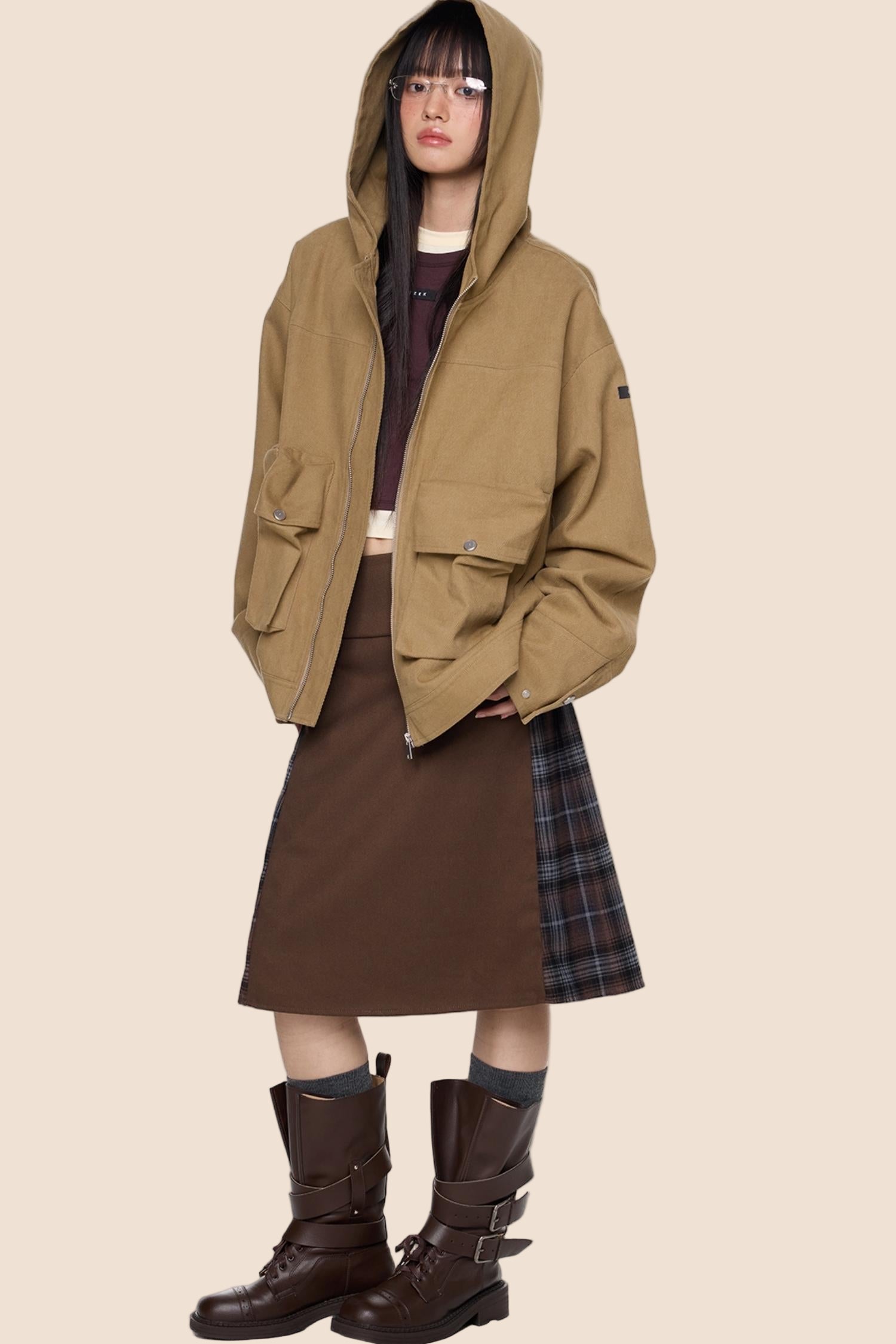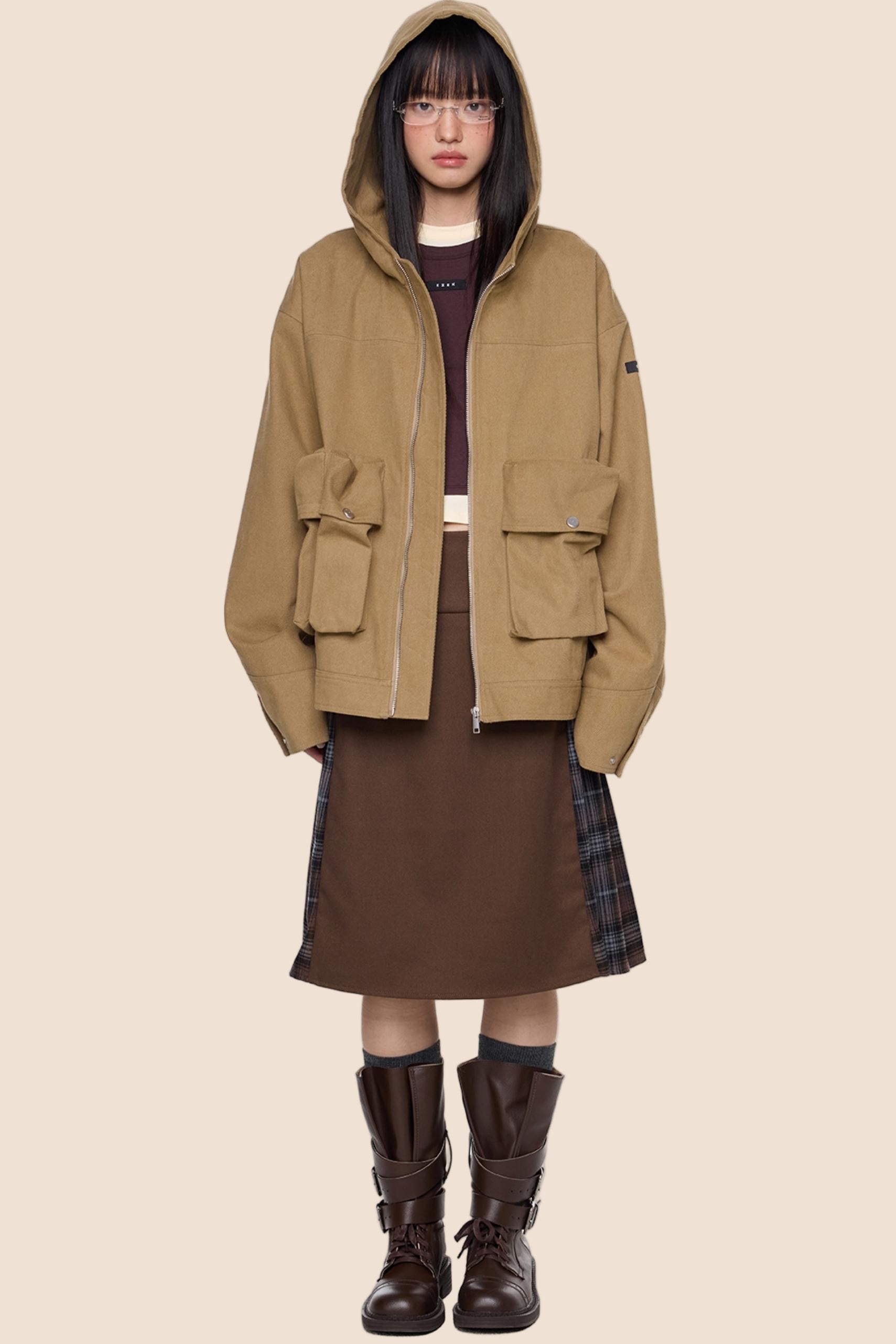 Vintage Fall Hooded Zip Jacket