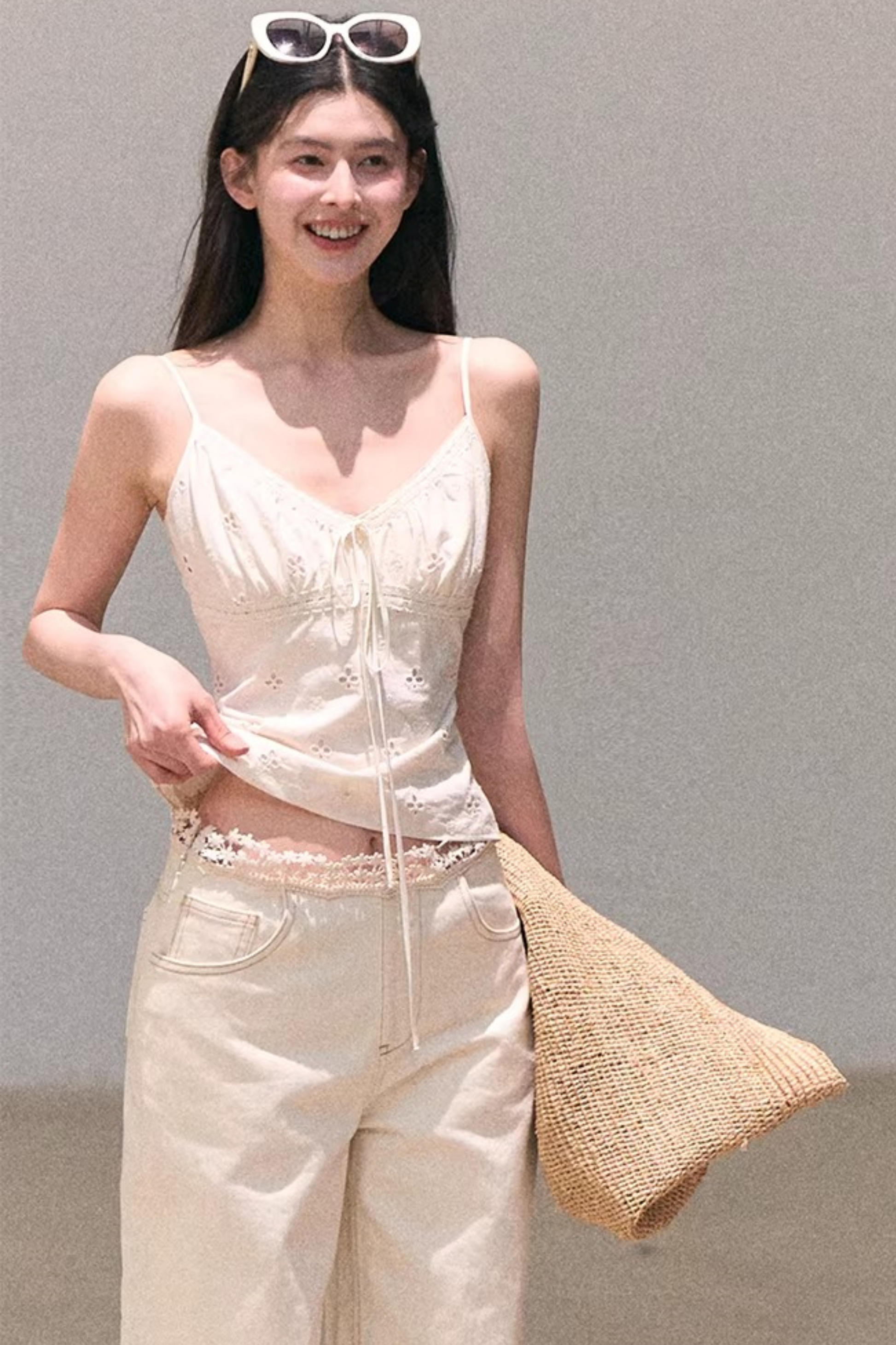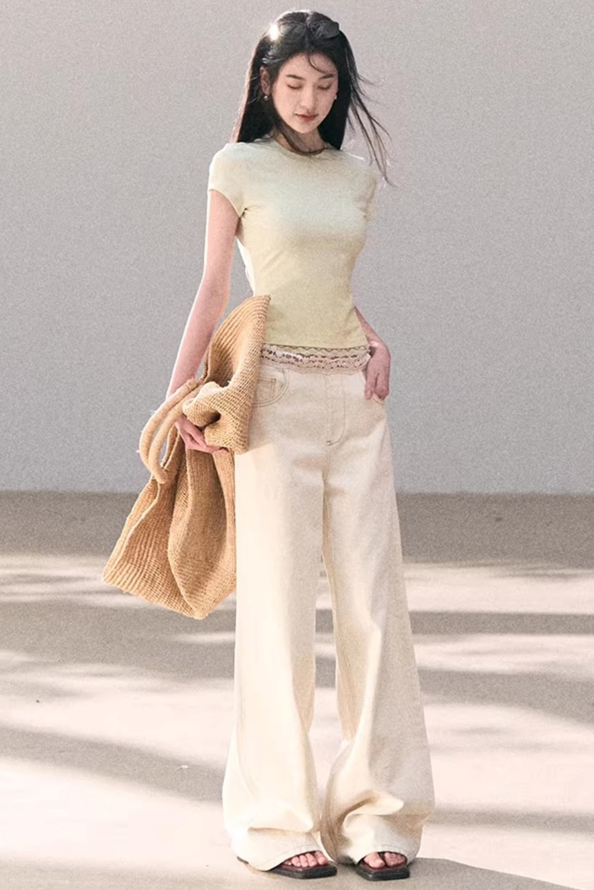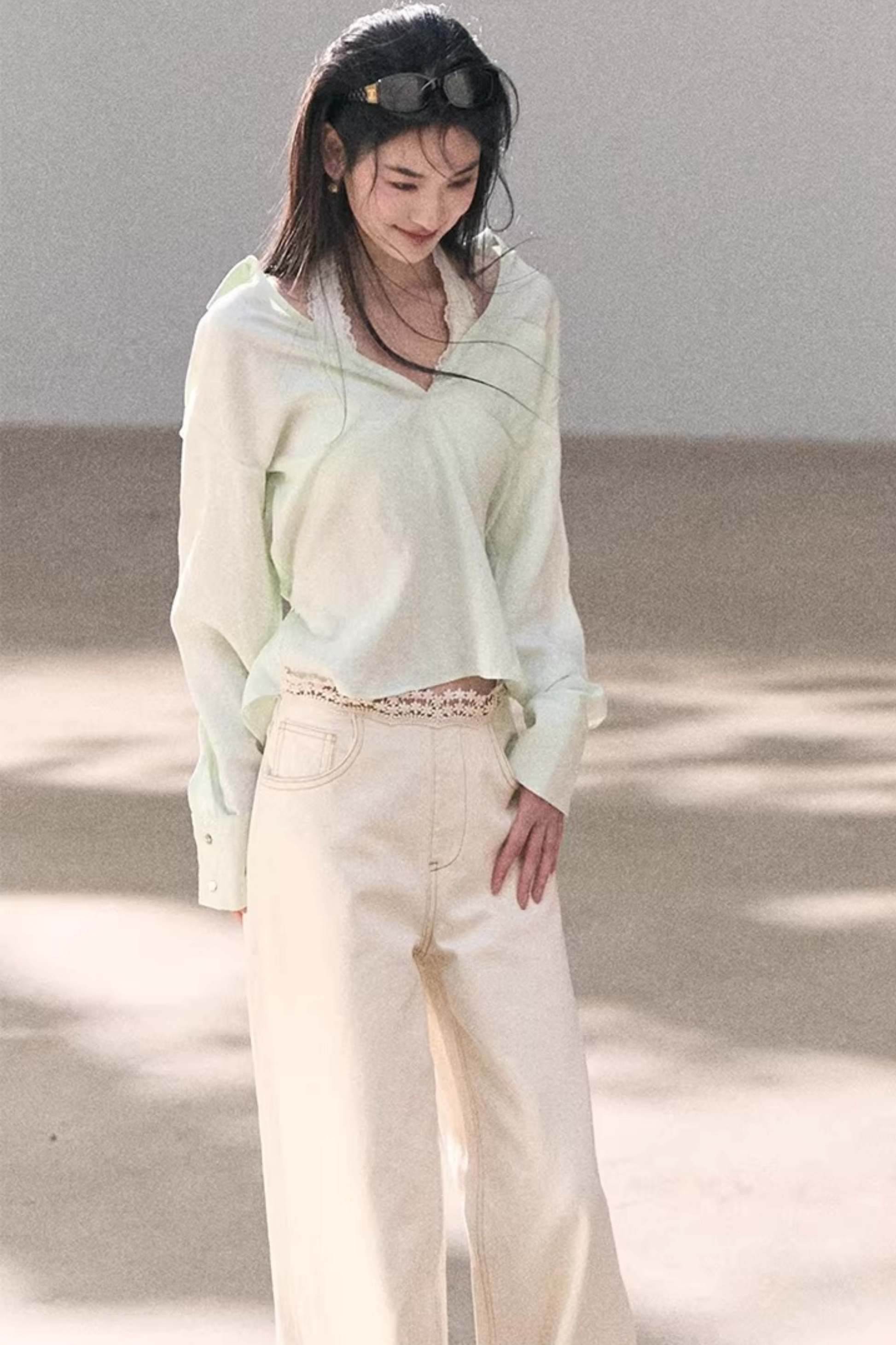 Washed Wide-Leg Lace Pants