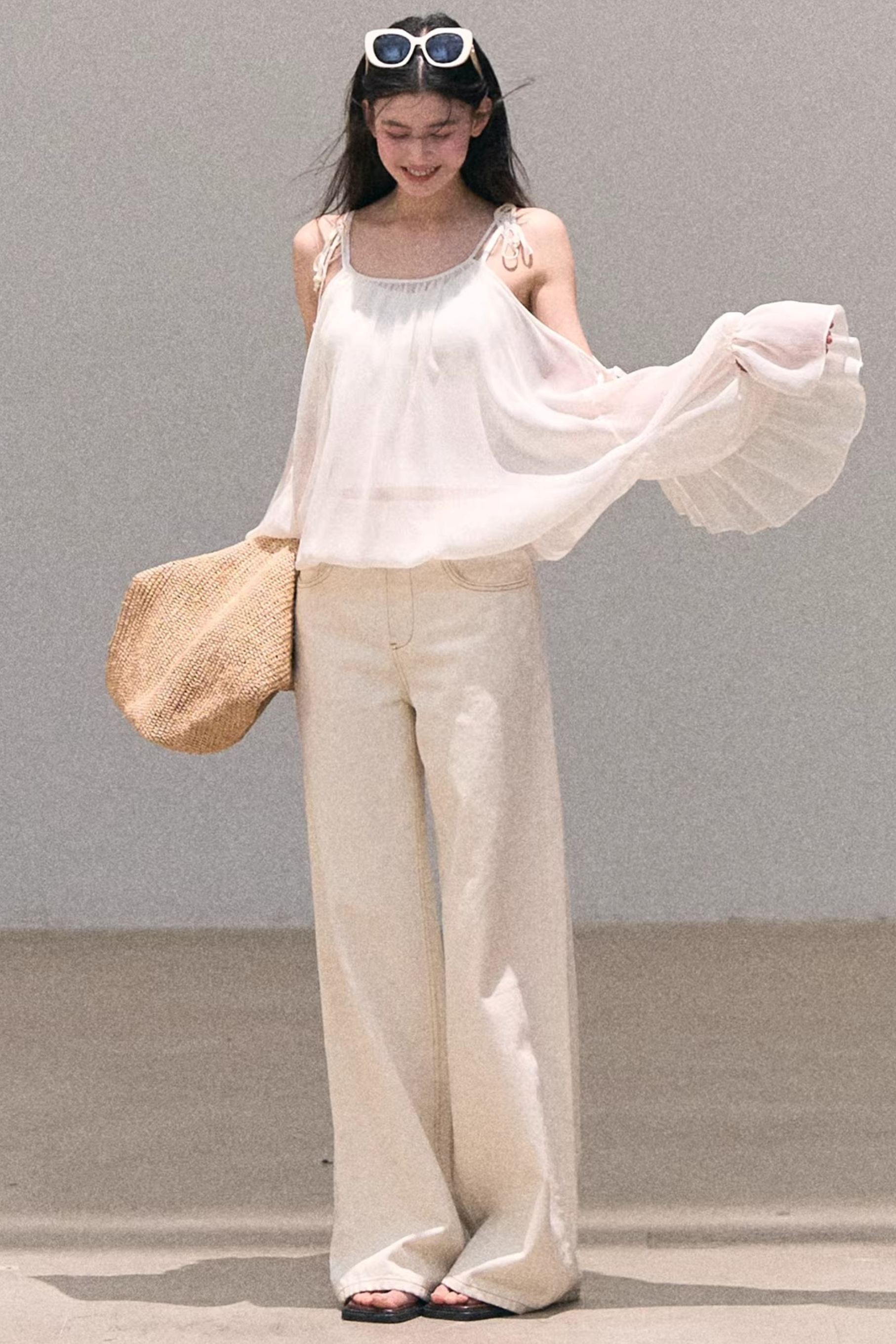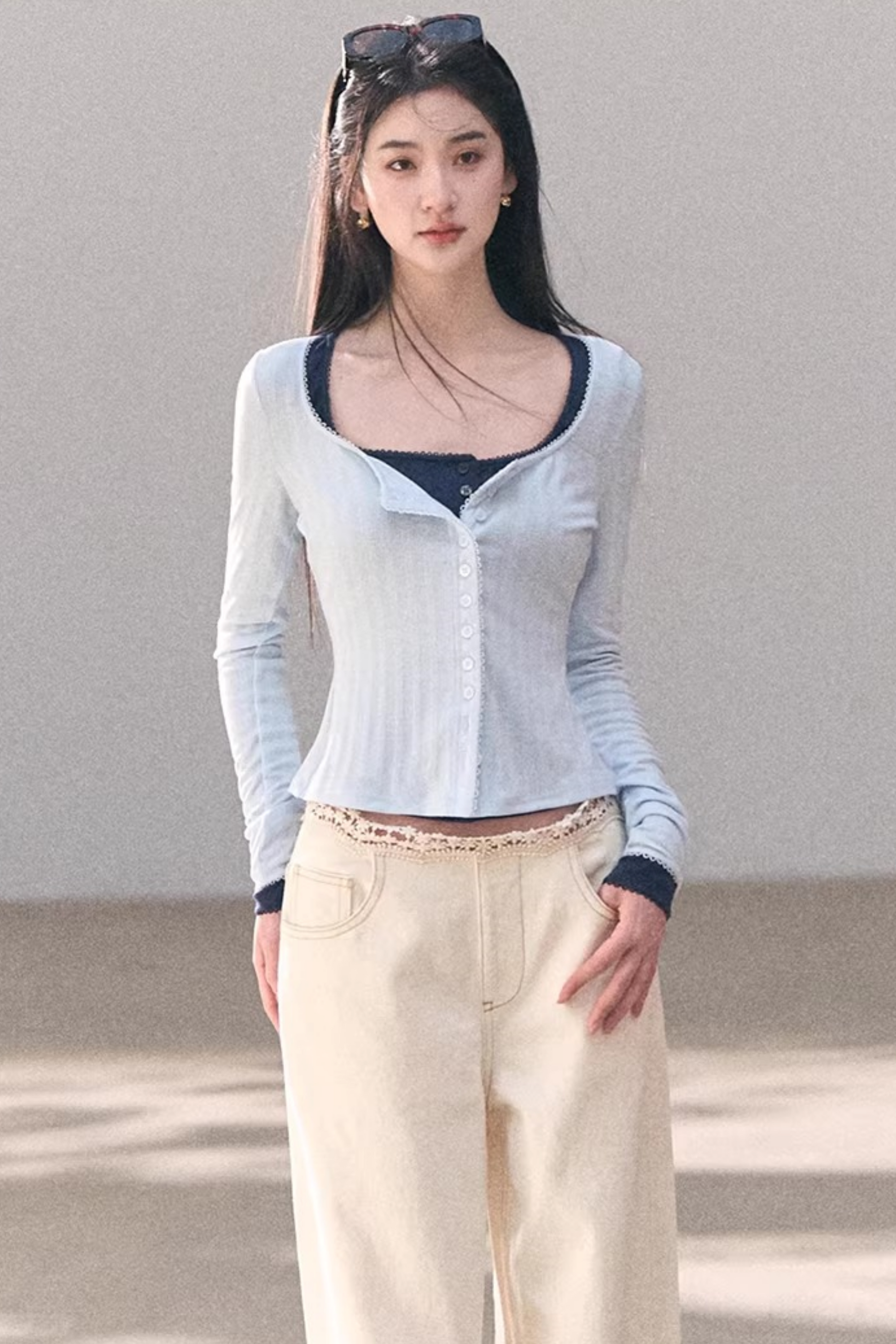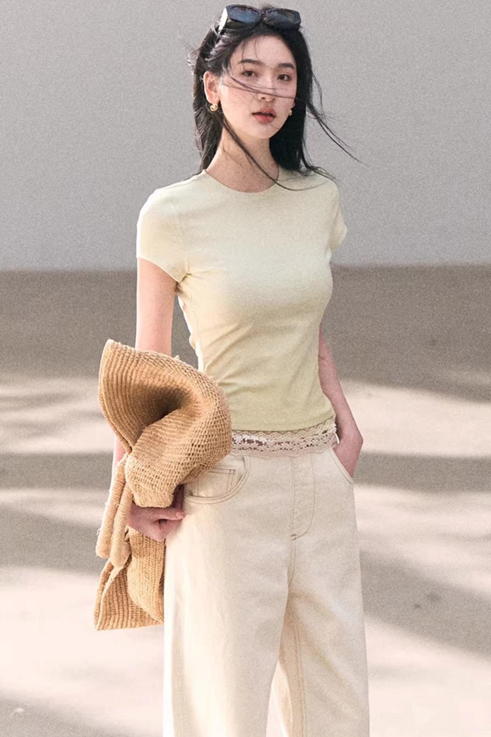 Washed Wide-Leg Lace Pants