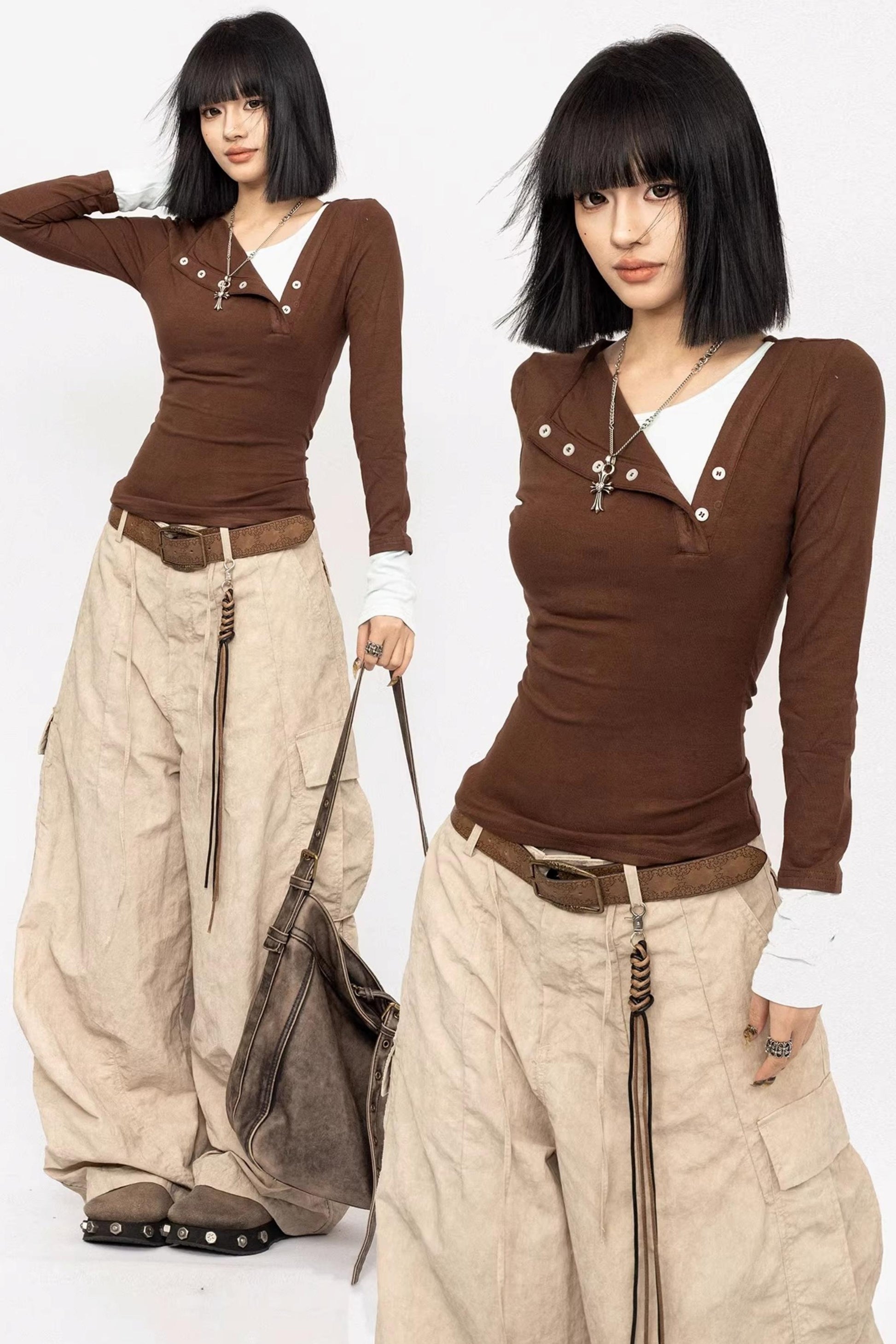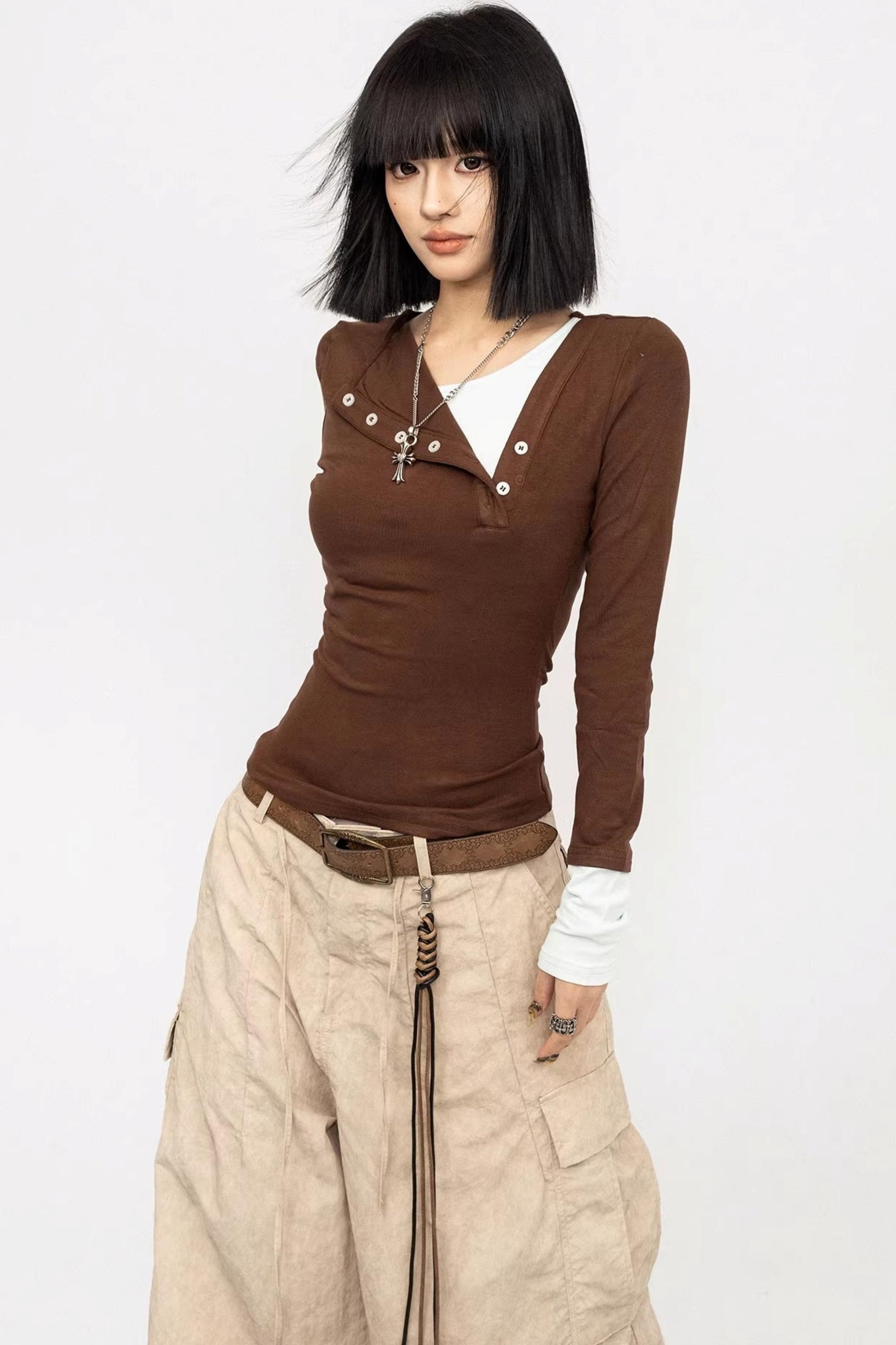 Haut deux pièces à faux empiècements de couleur
