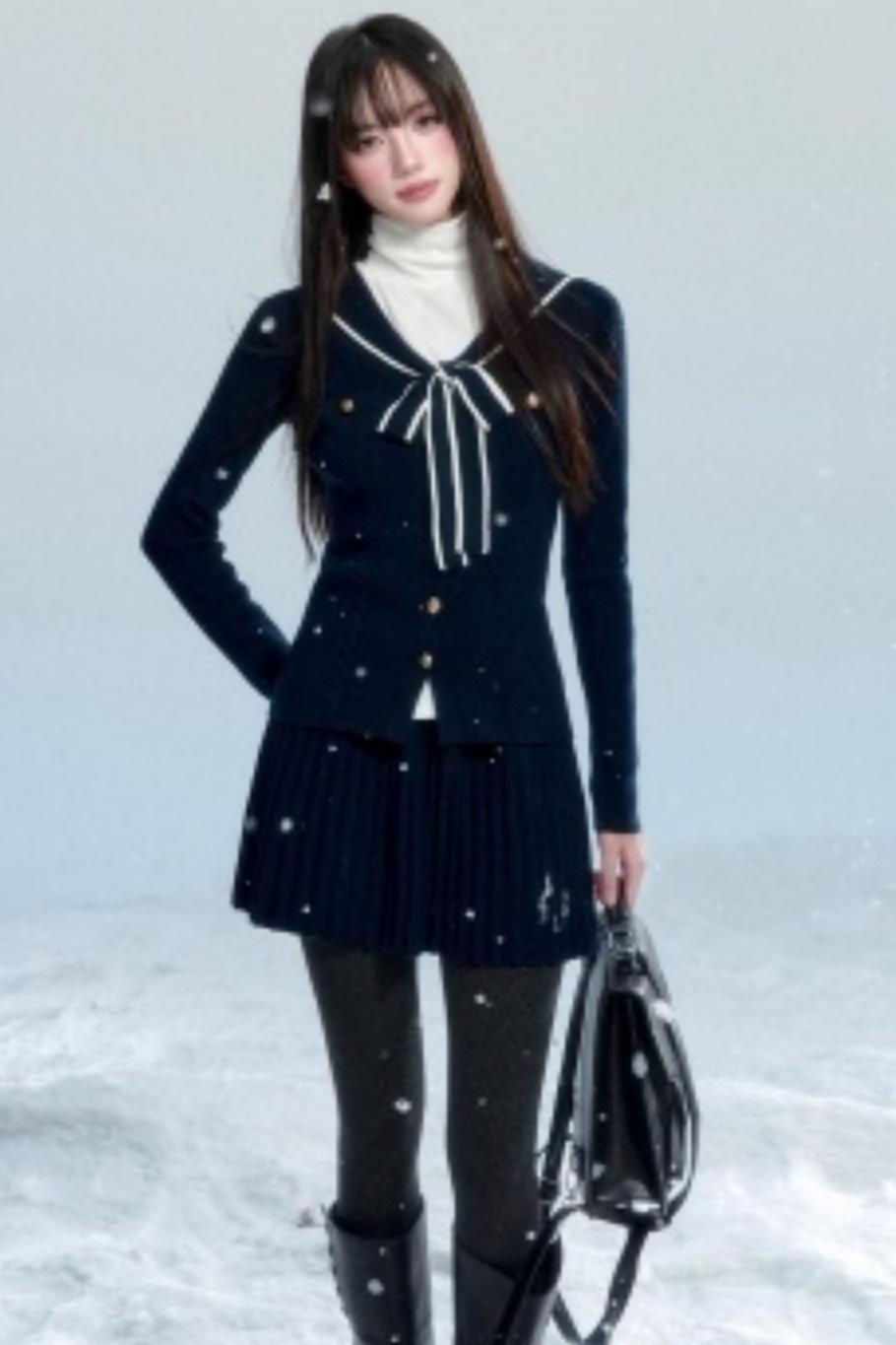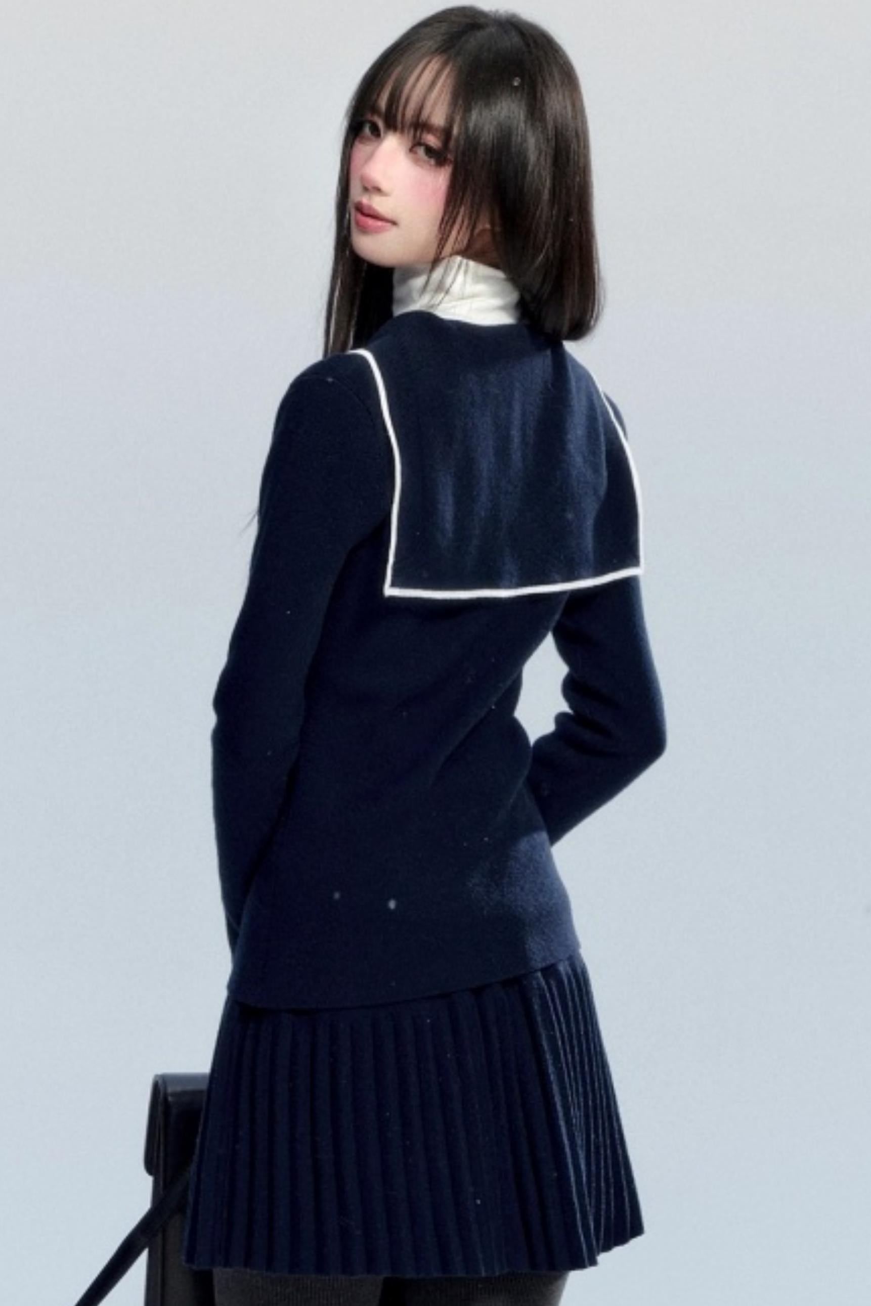 Navy Collar Knit Top