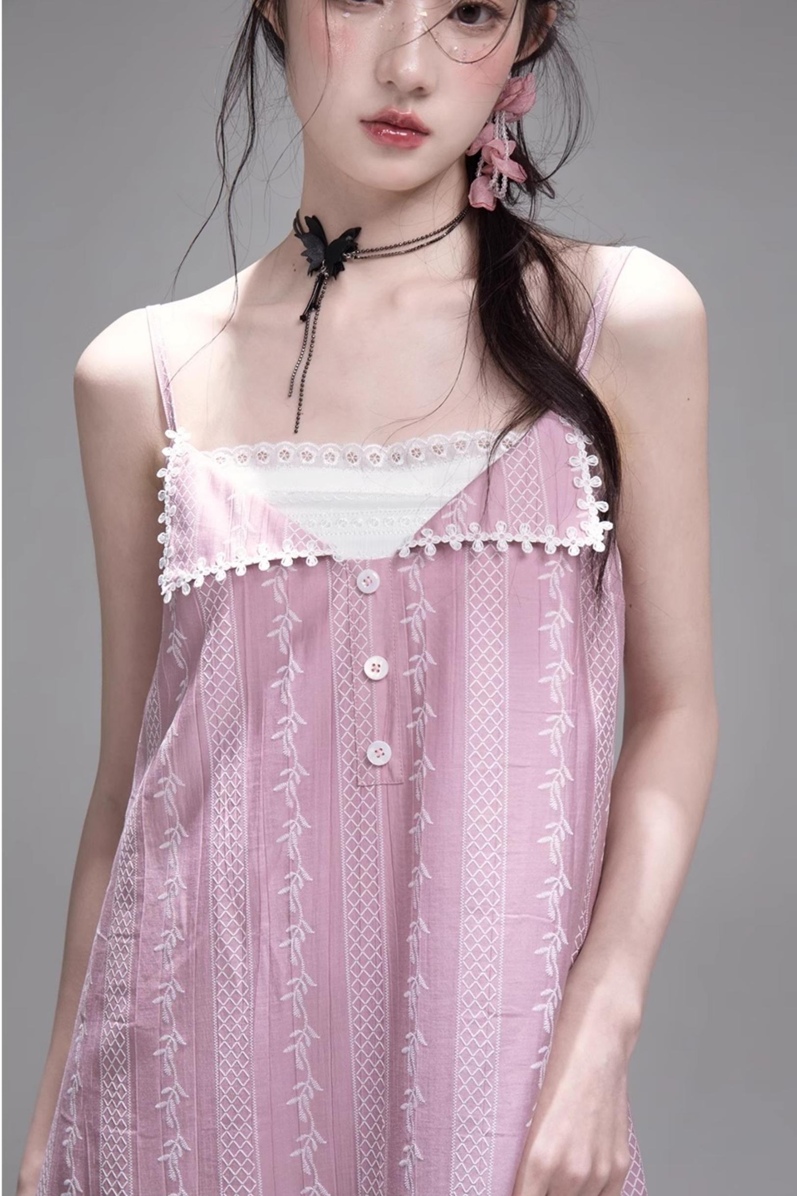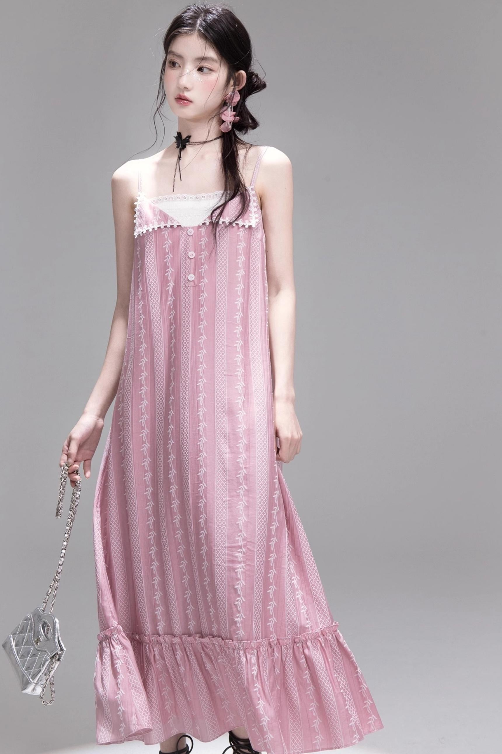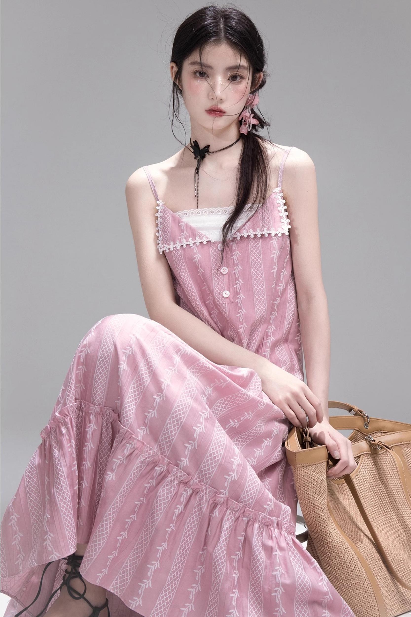 Peach Blossom Lace Suspenders Dress