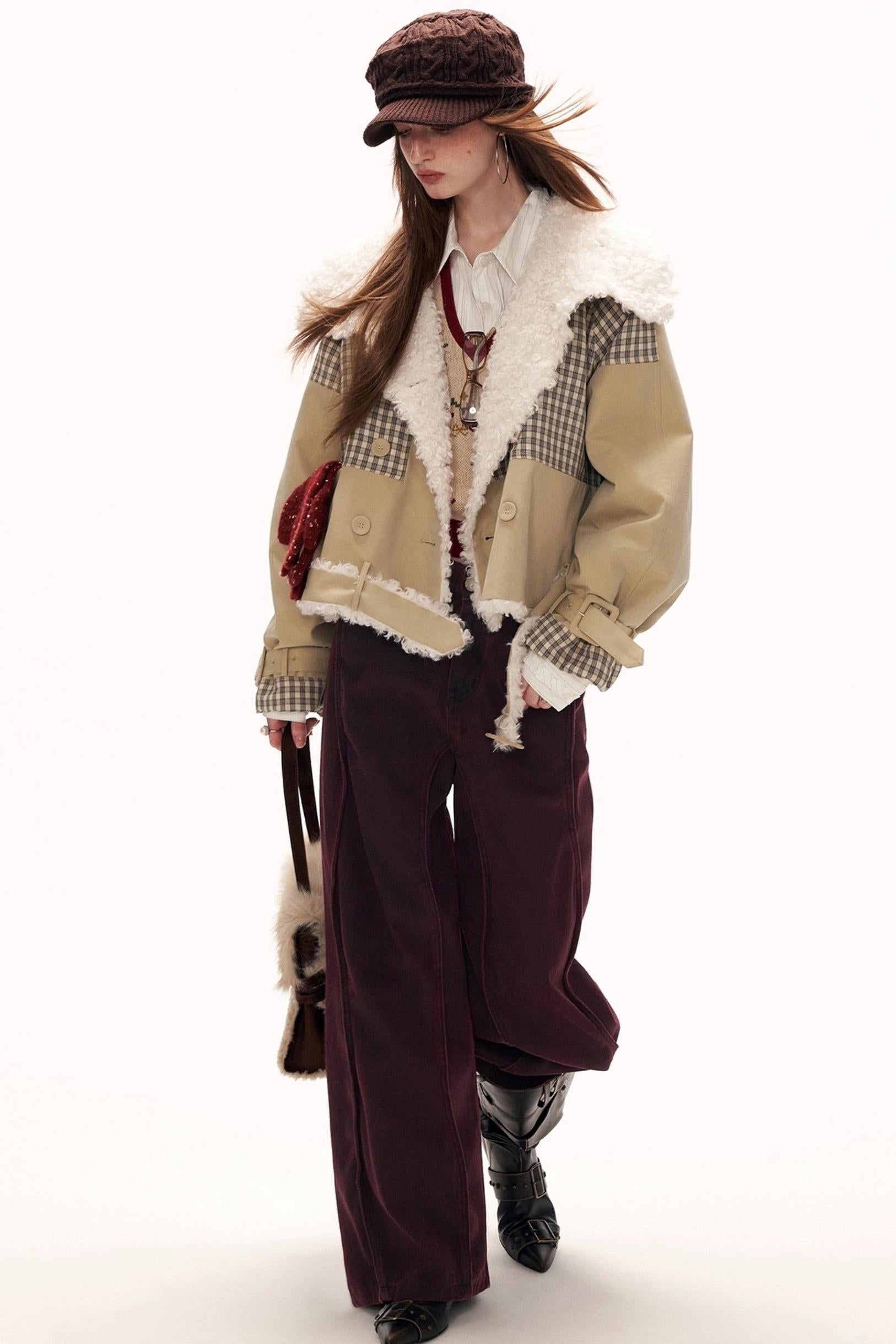 Plaid Fur Collar Large Lapel Jacket