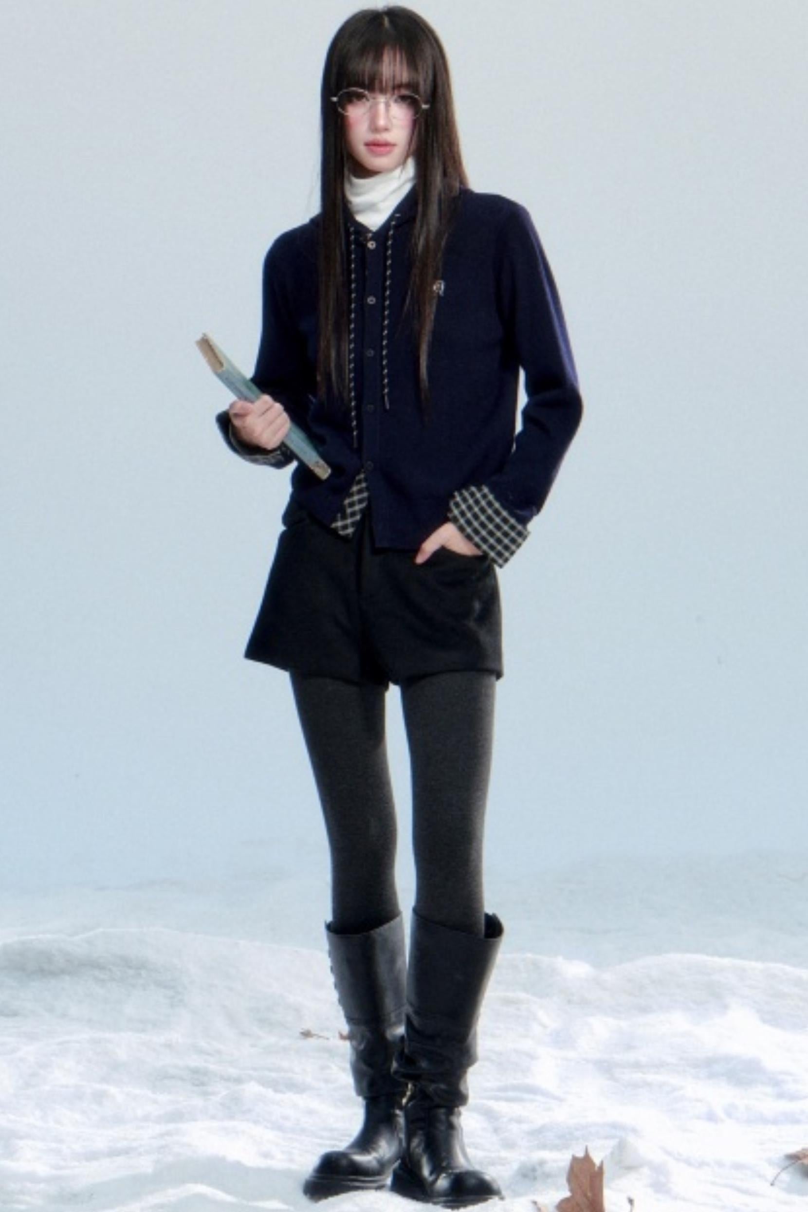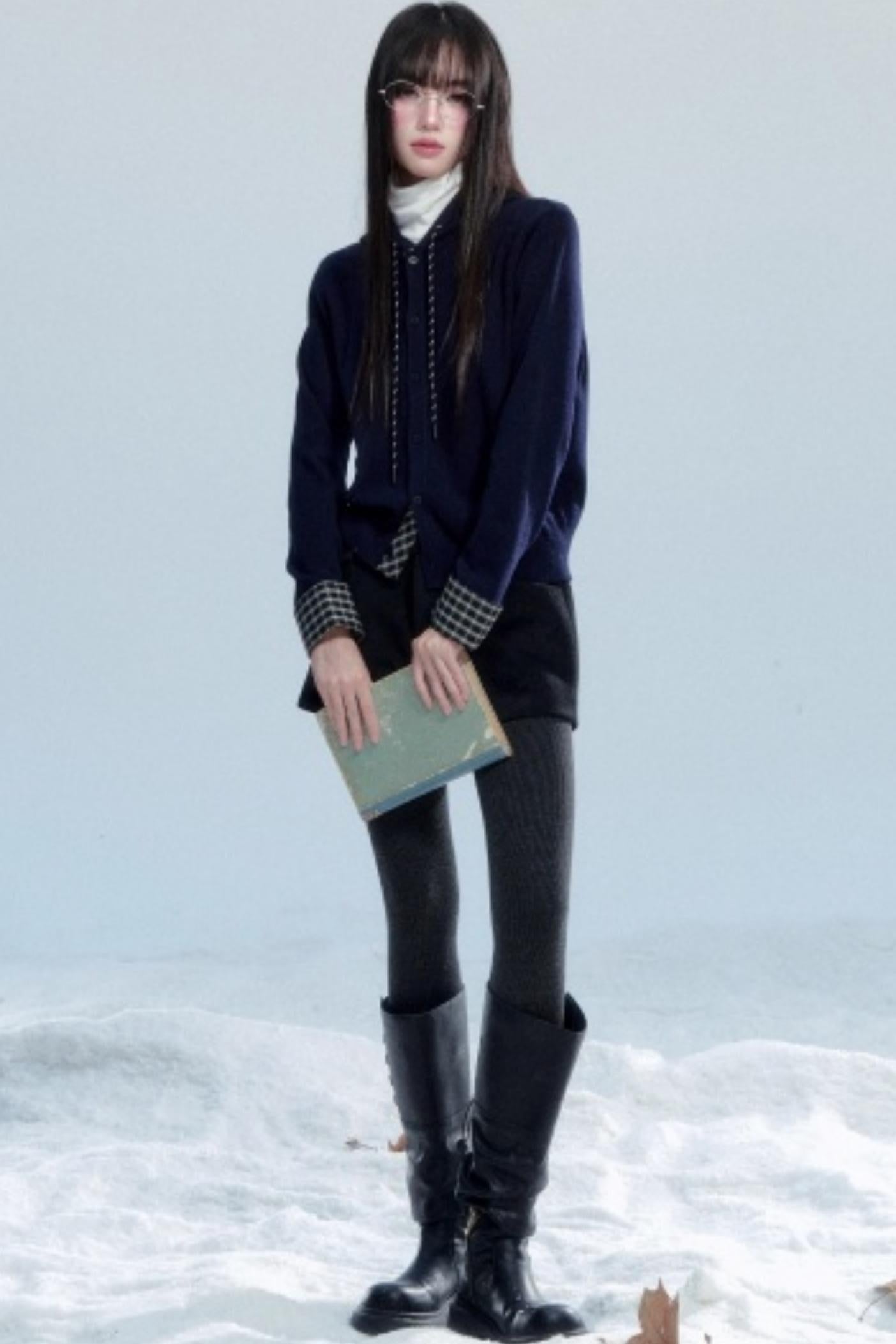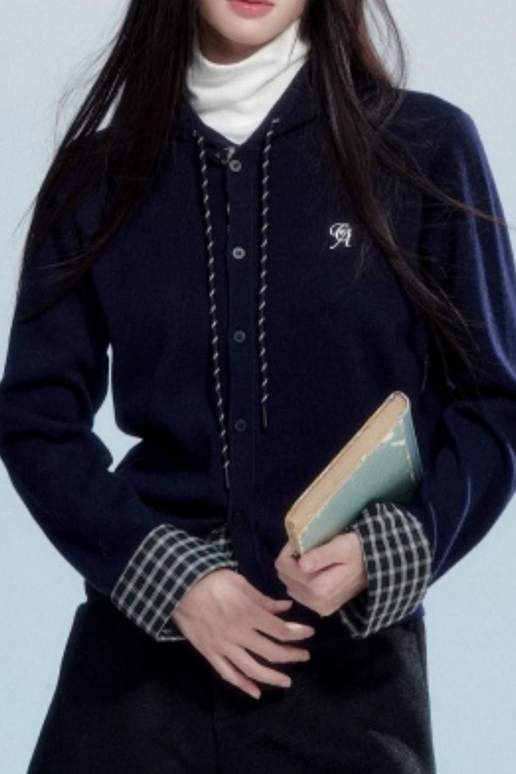 Plaid Patchwork Hooded Cardigan