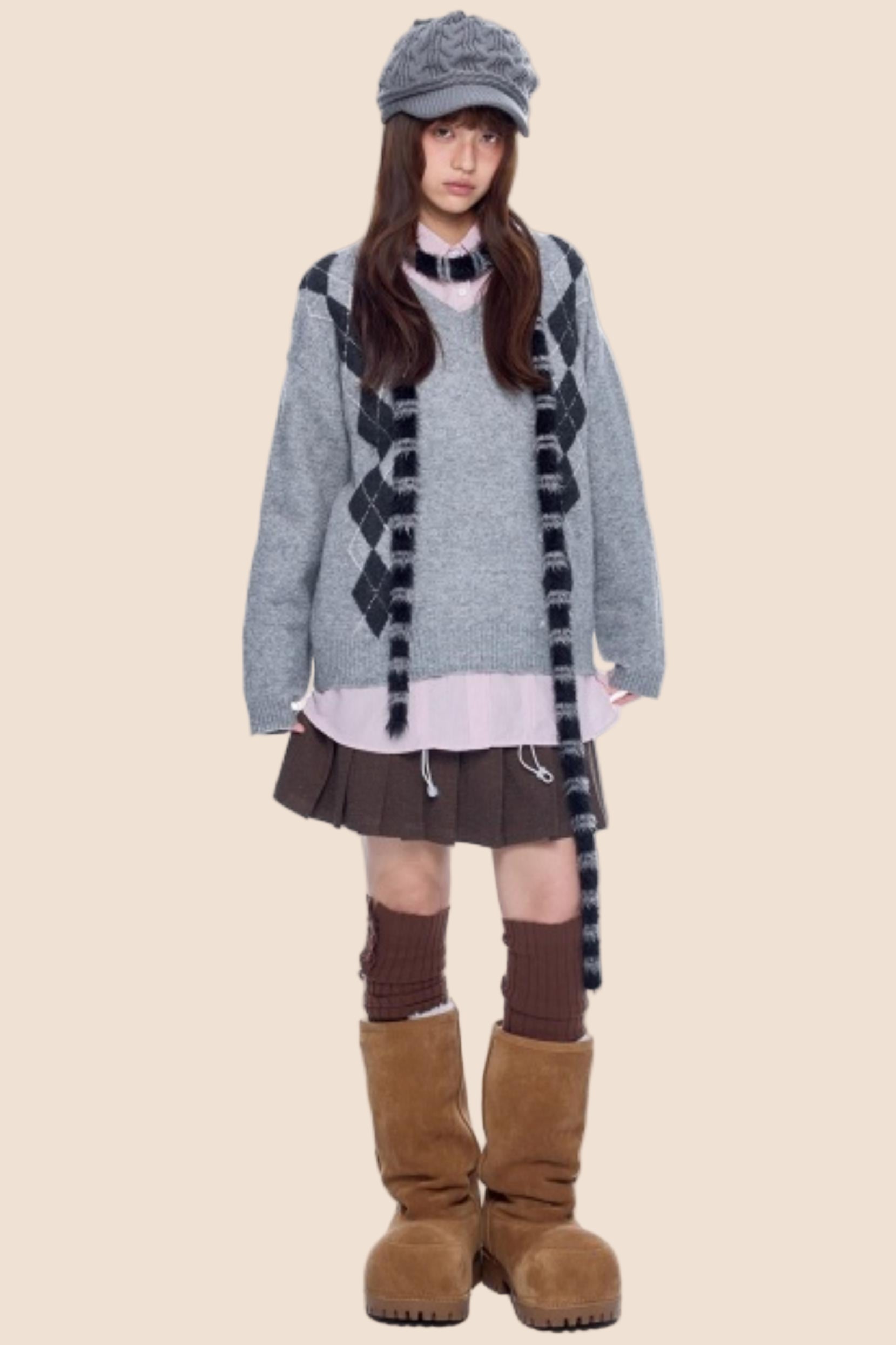 Ribbed V-Neck Knit Sweater