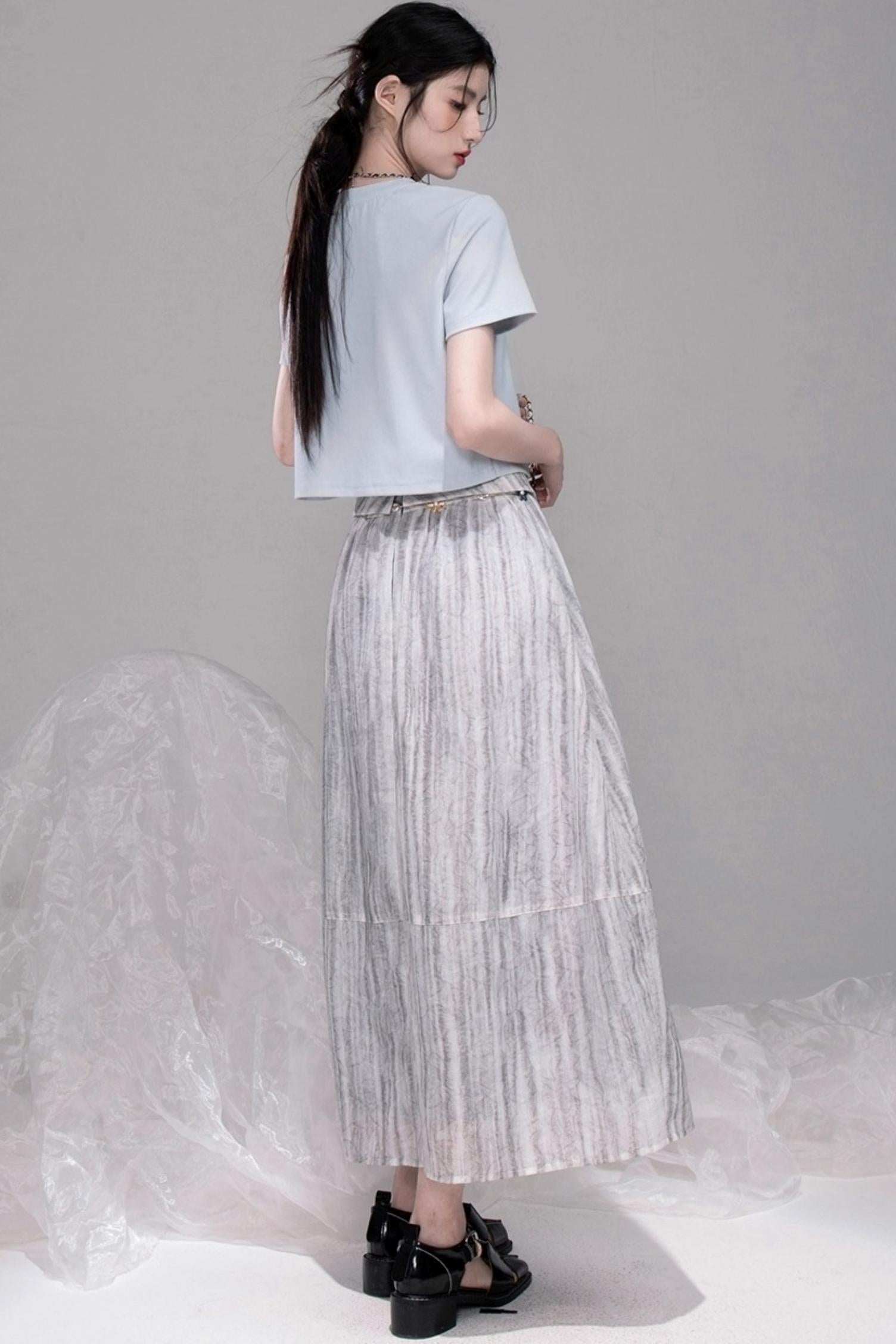 Smudge Art Sheer Print Skirt