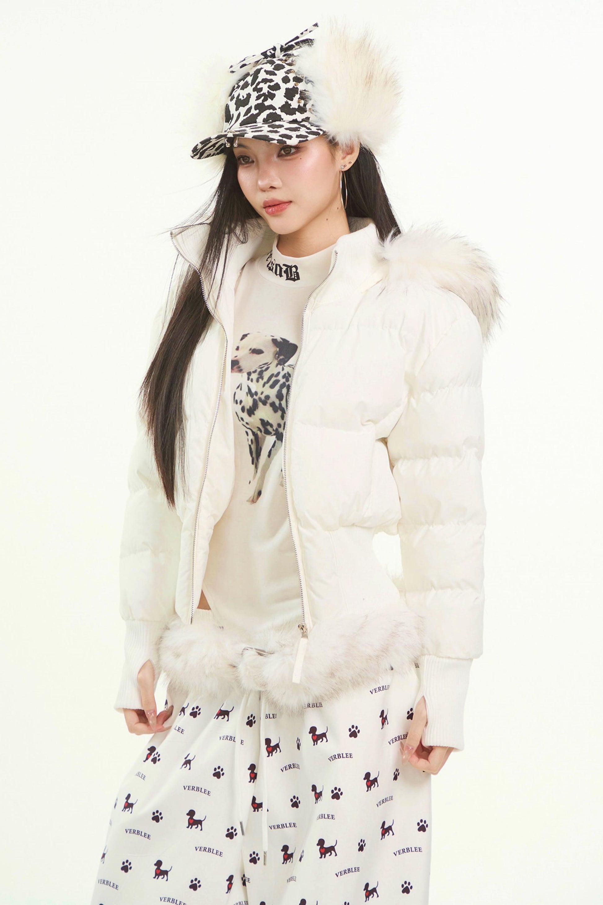 White Fur Collar Cotton Jacket