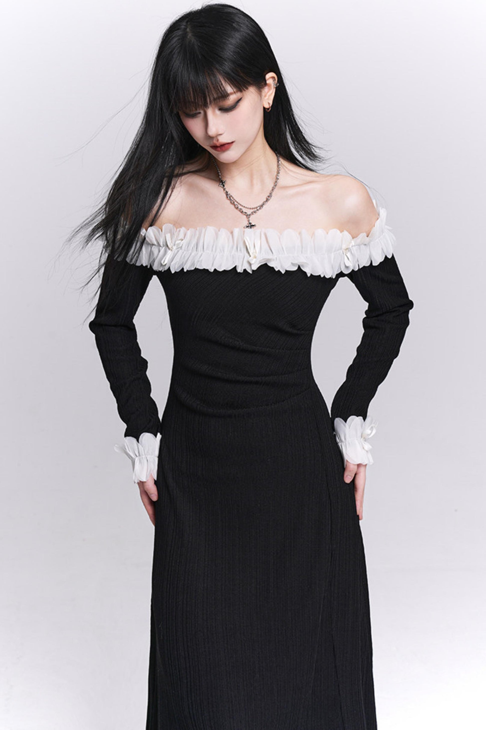 Black Off-Shoulder Long Dress