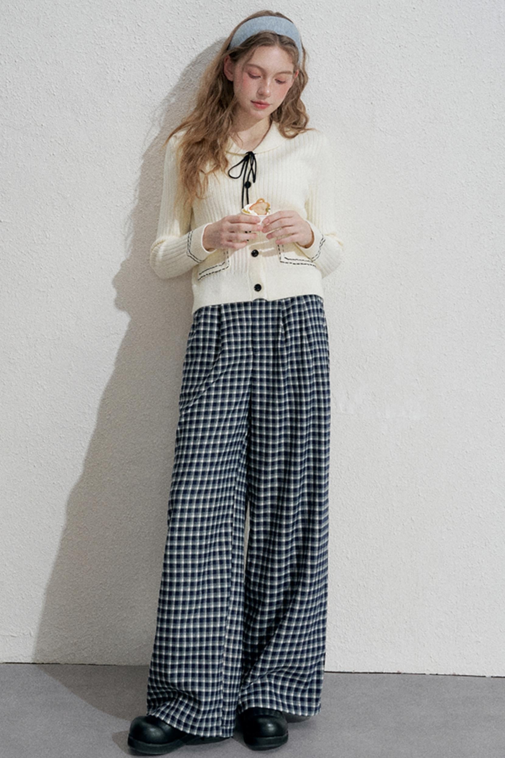 Blue Plaid Woolen Trousers