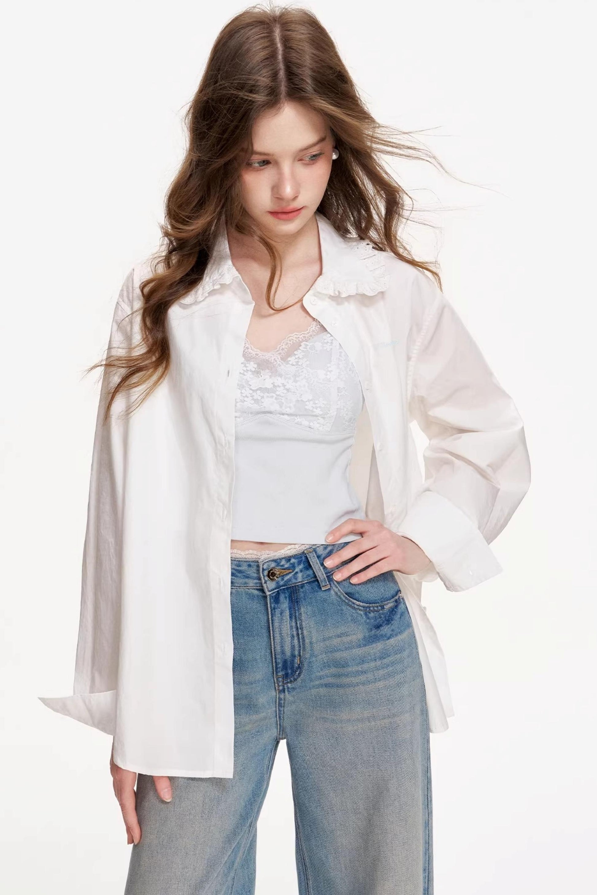Cotton Lace Embroidered Shirt