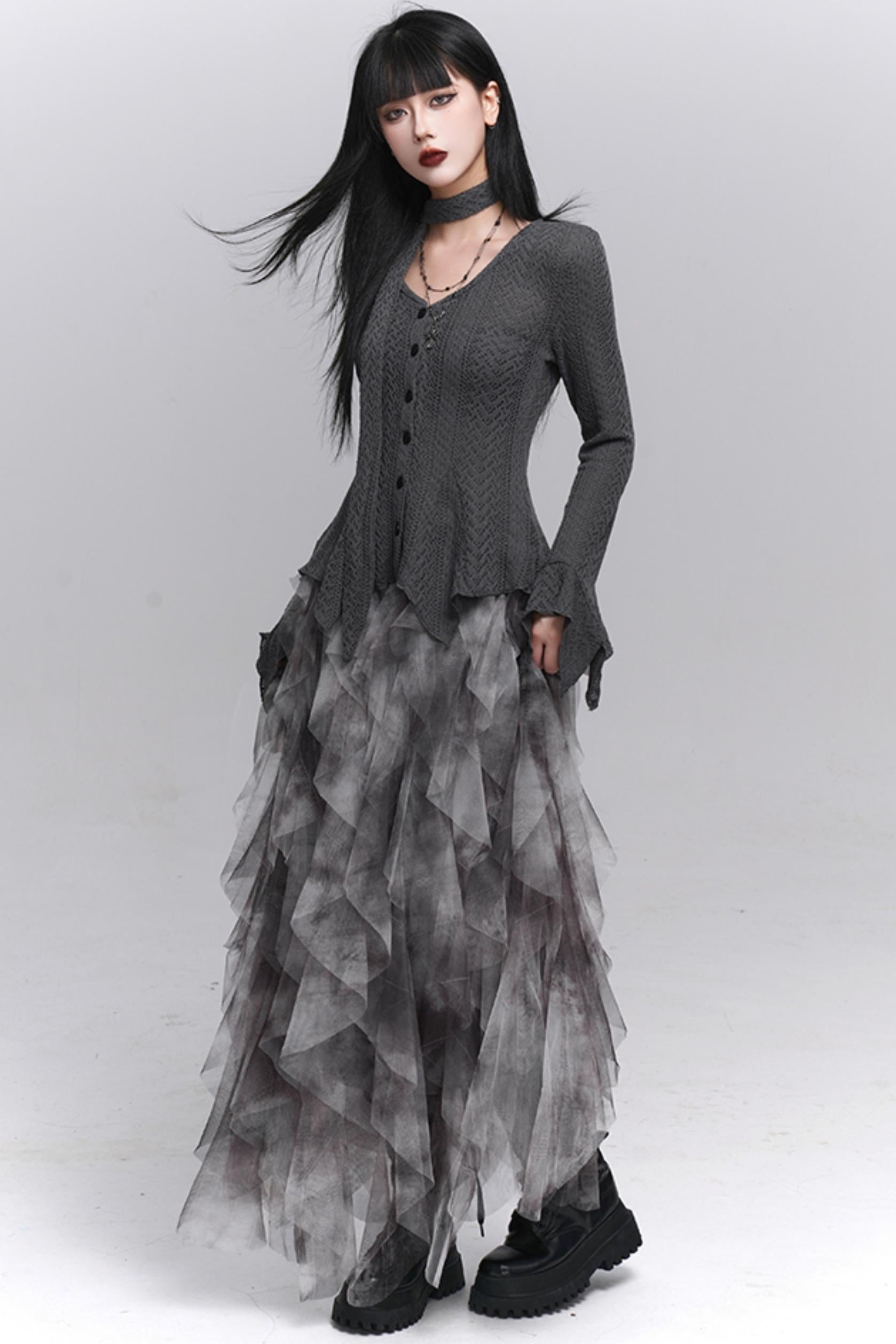 Gray Knitted Slim Top