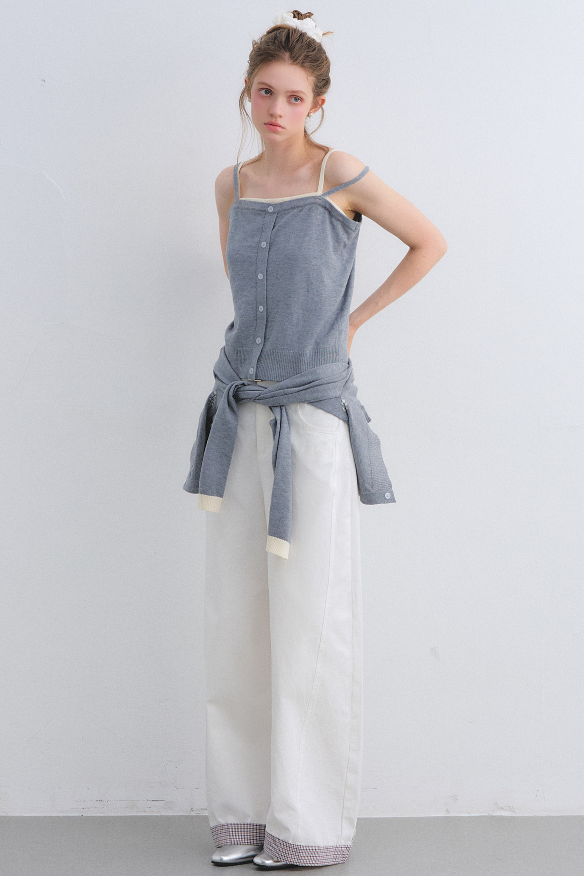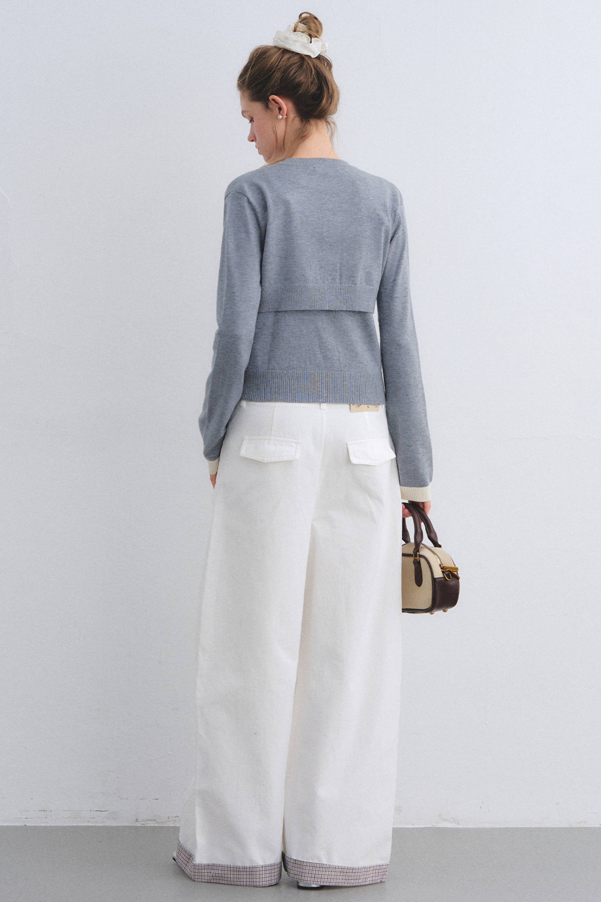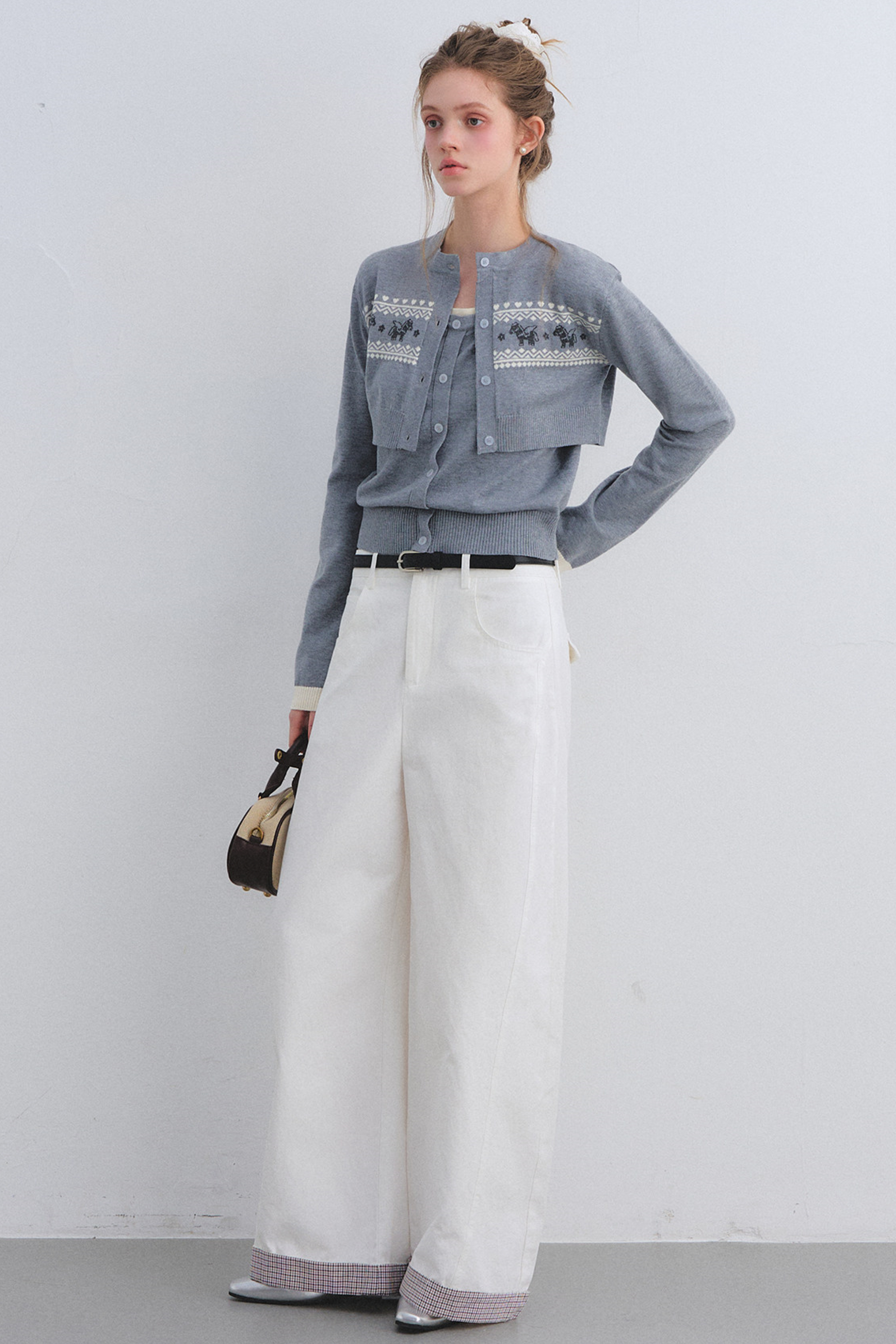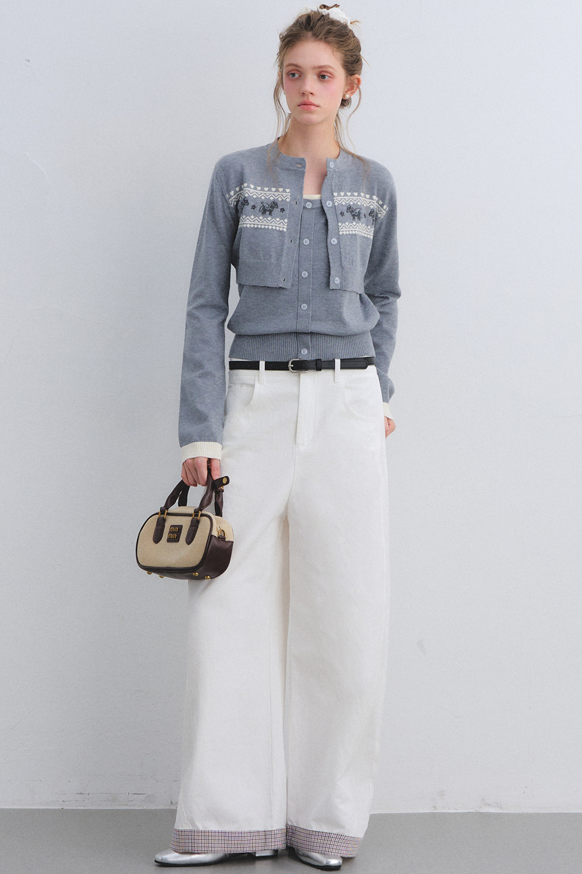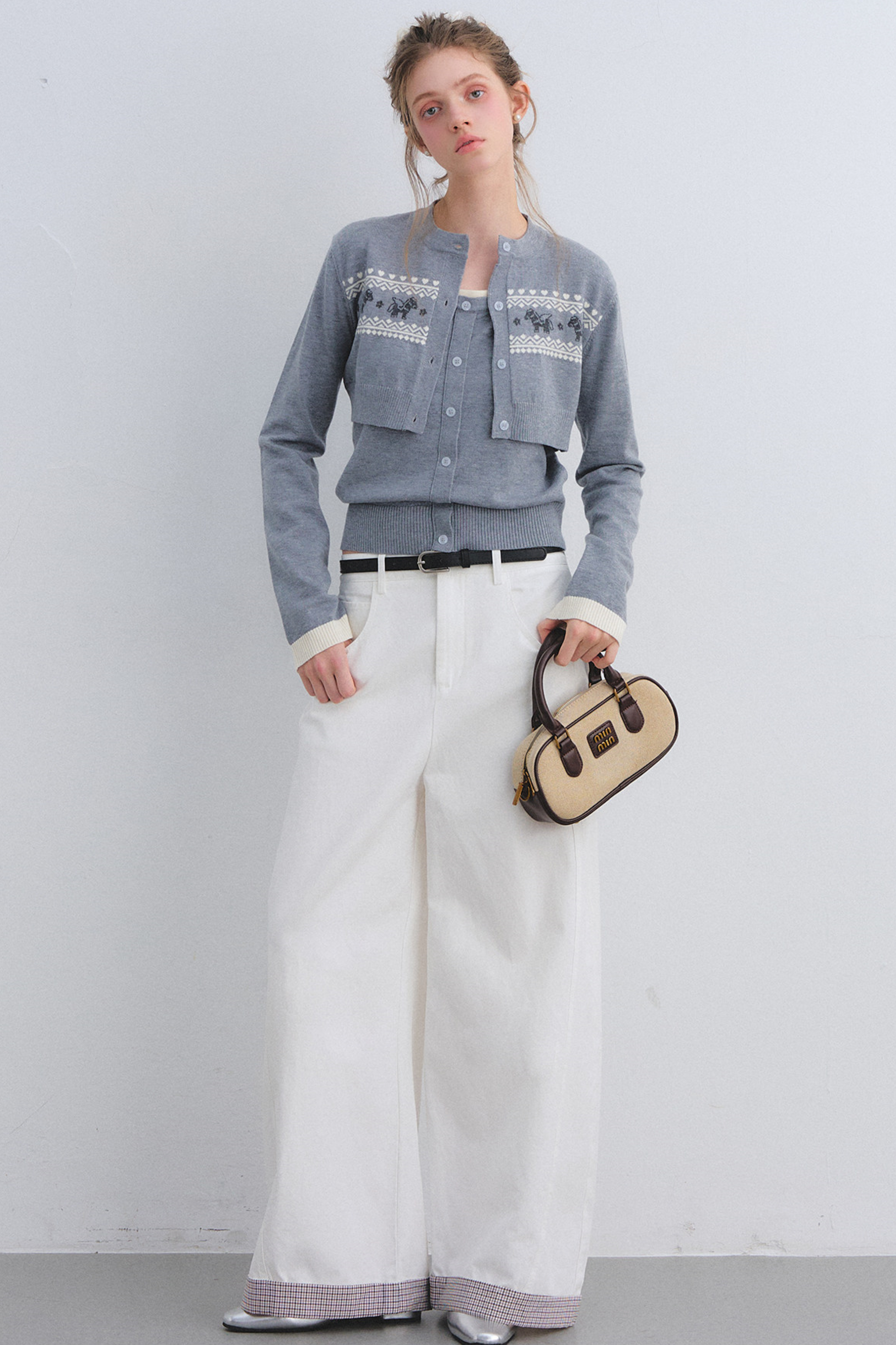 Gray Wool Knit Cardigan Set