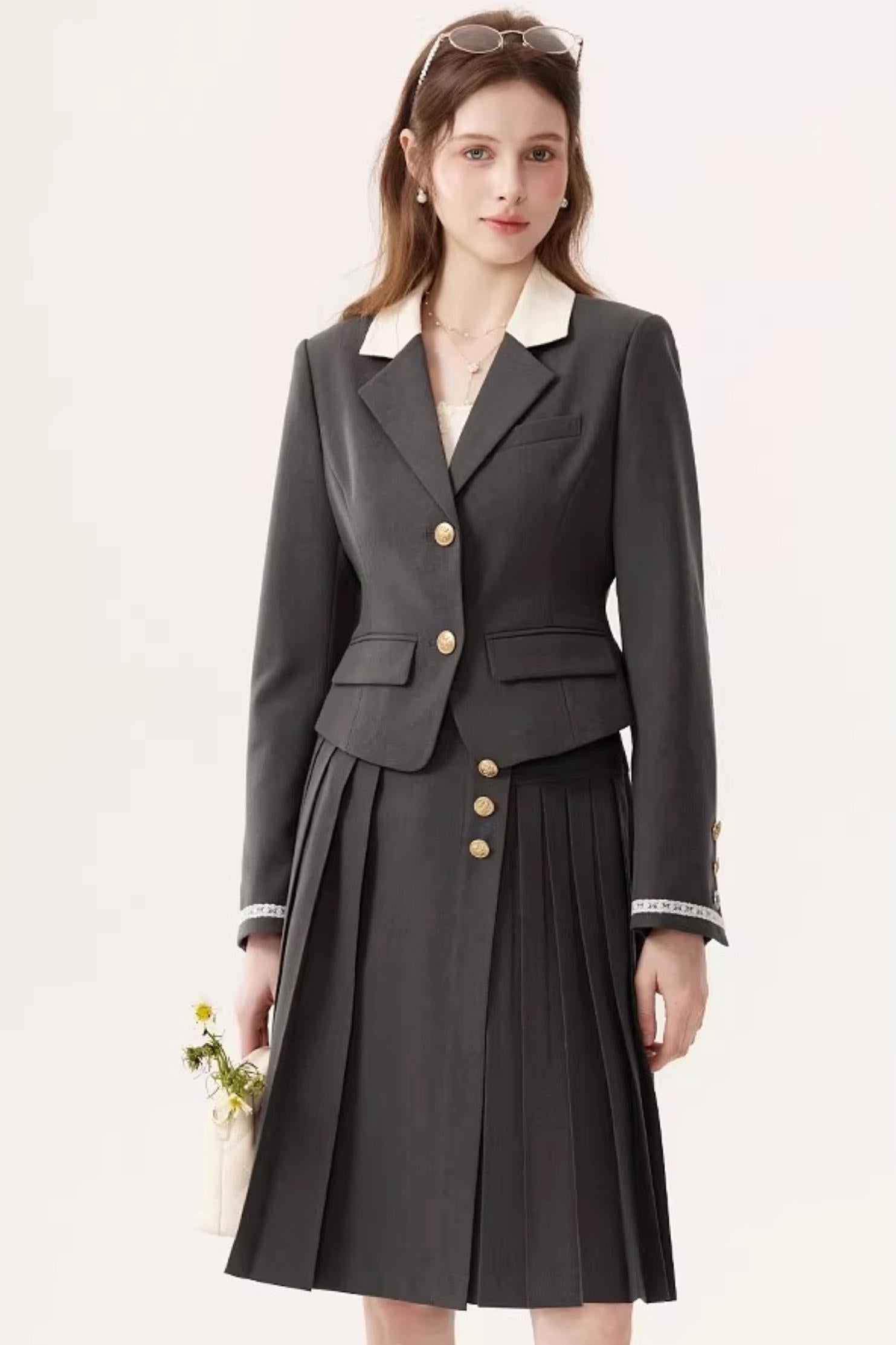 High-Waisted Pleated Midi Skirt