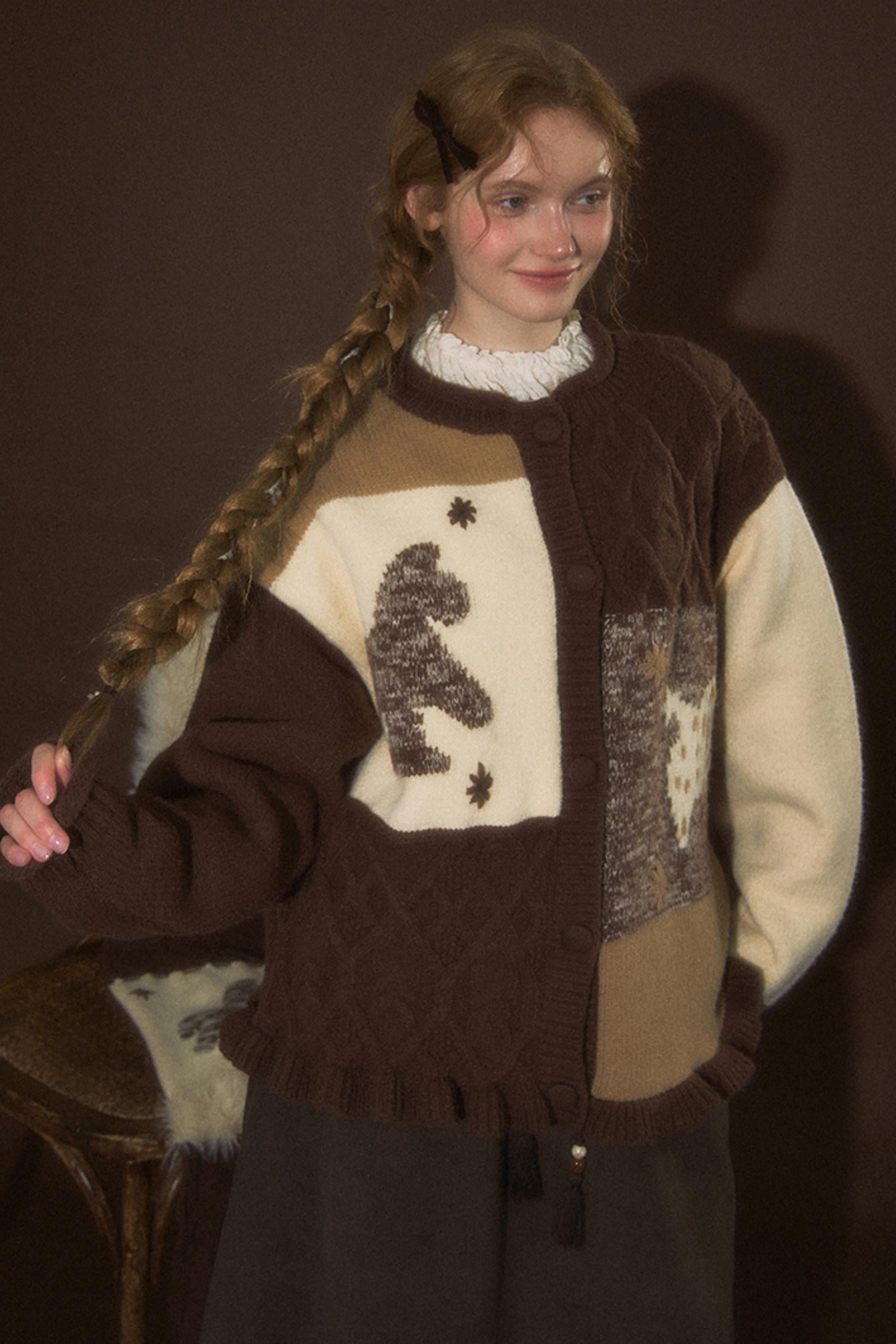 Soft Vintage Crew Neck Cardigan & Scarf Set-Up