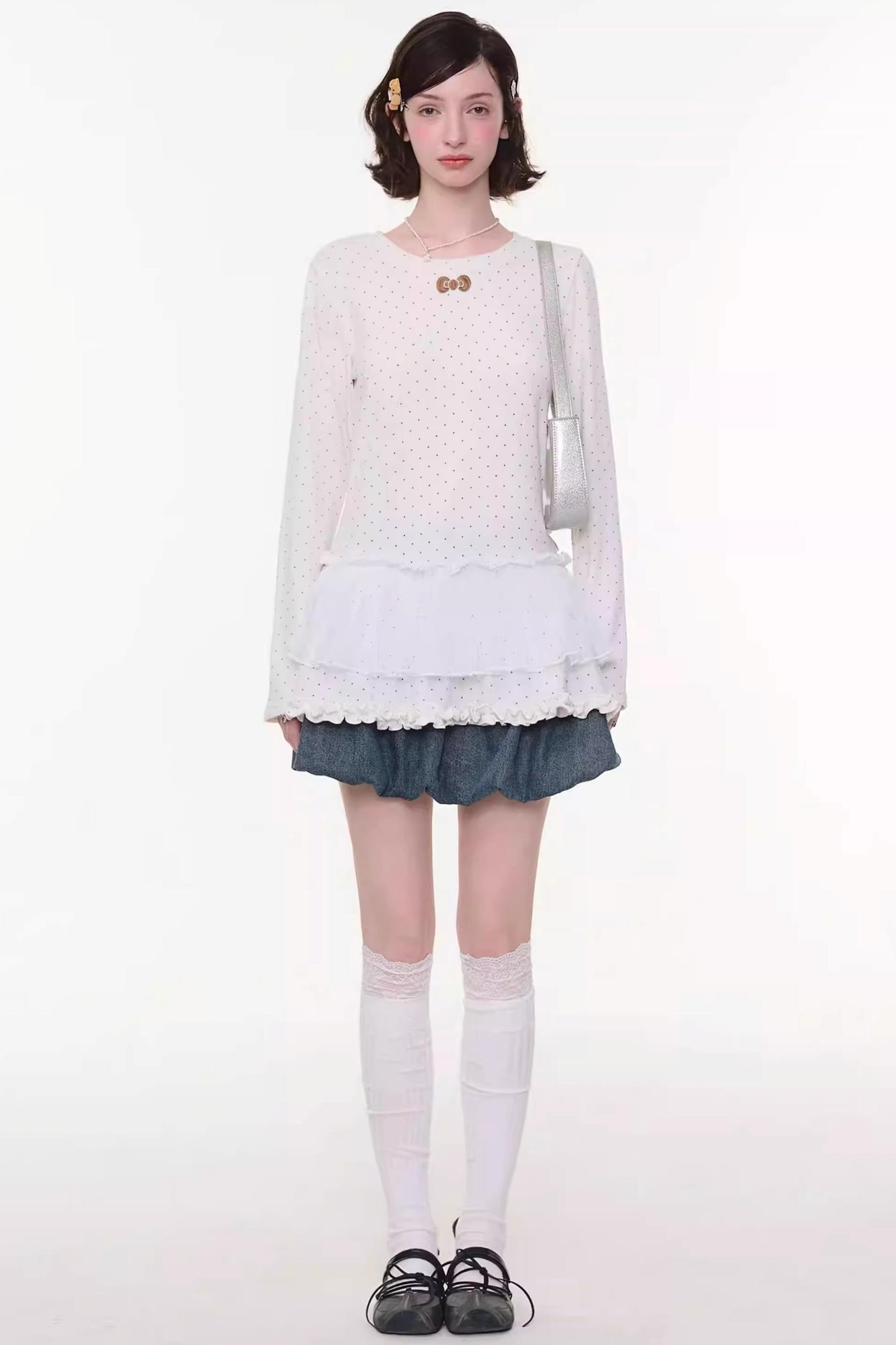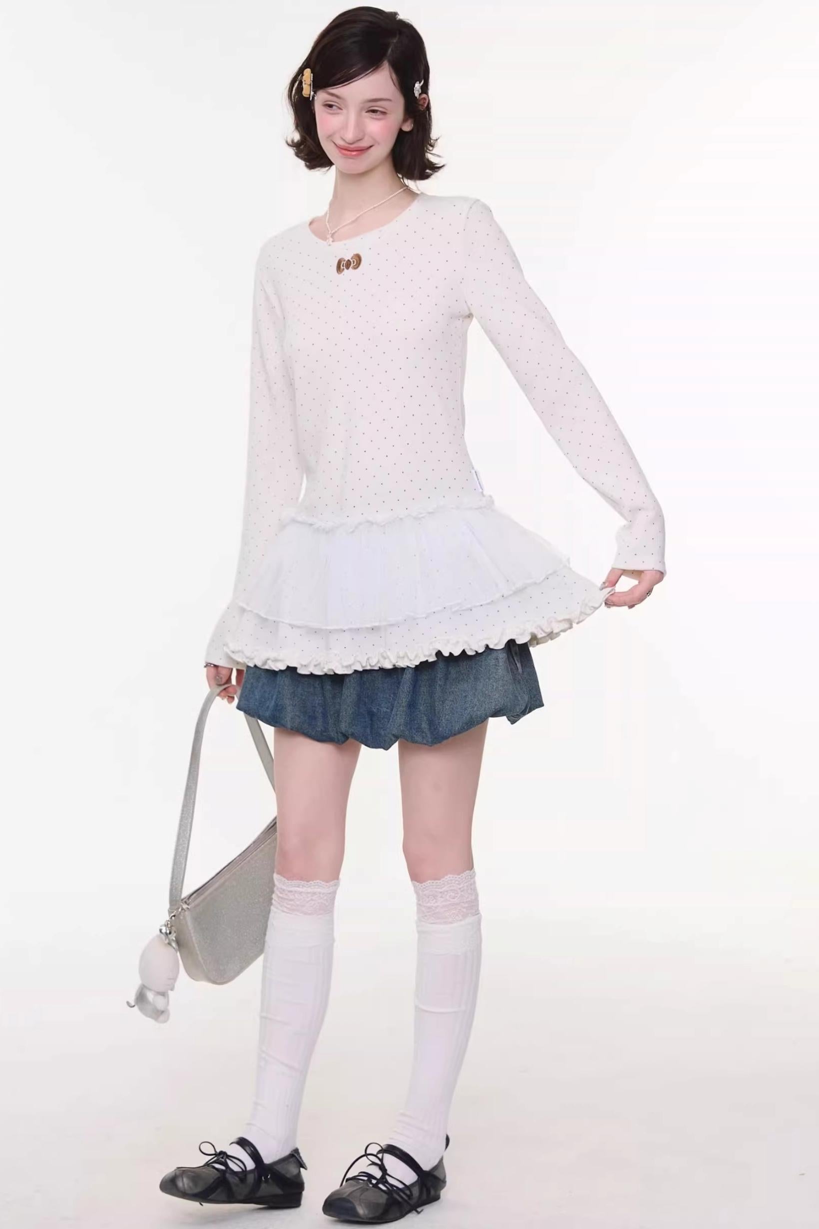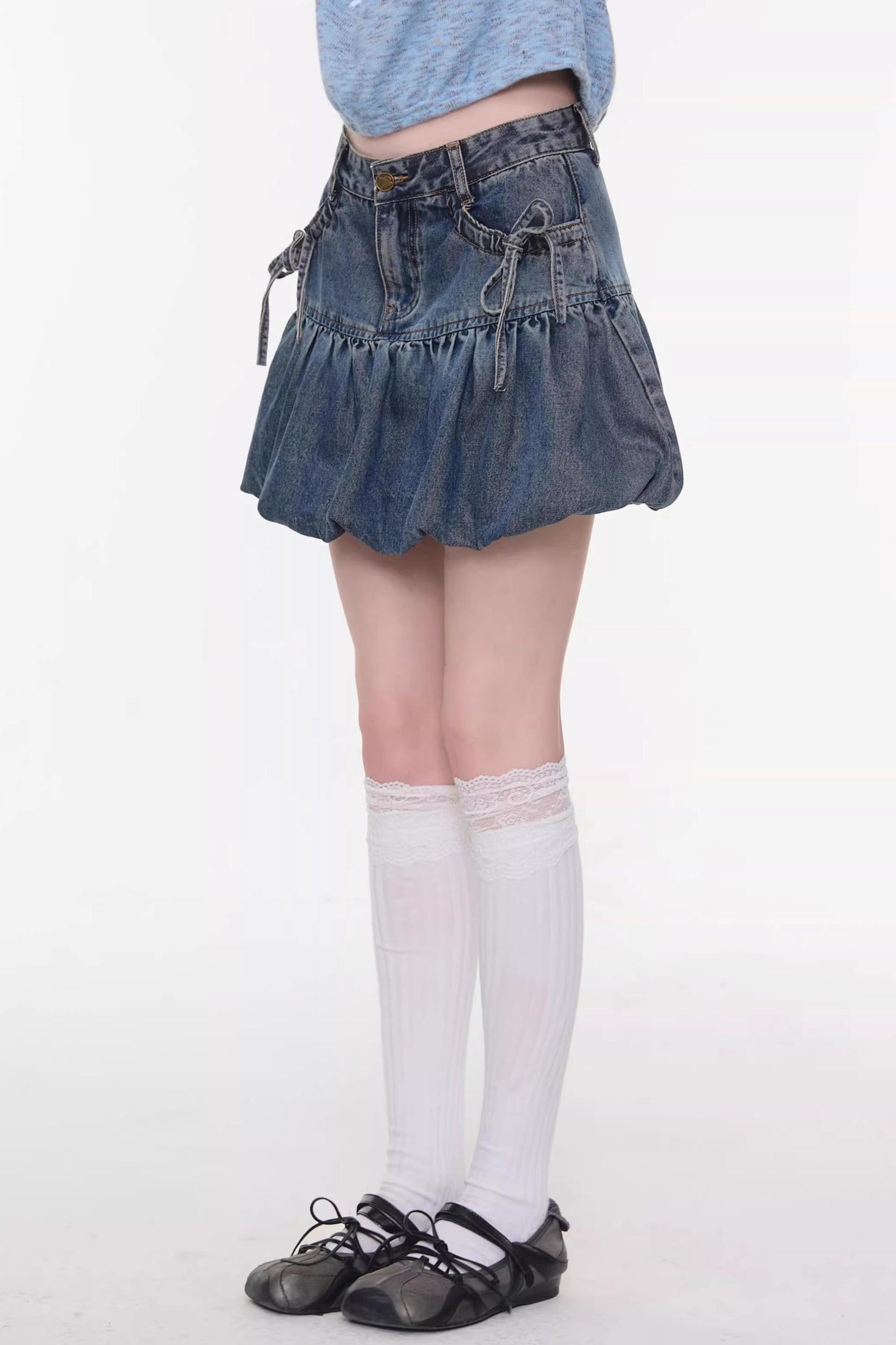Sweet Bubble Bowknot Denim Skirt