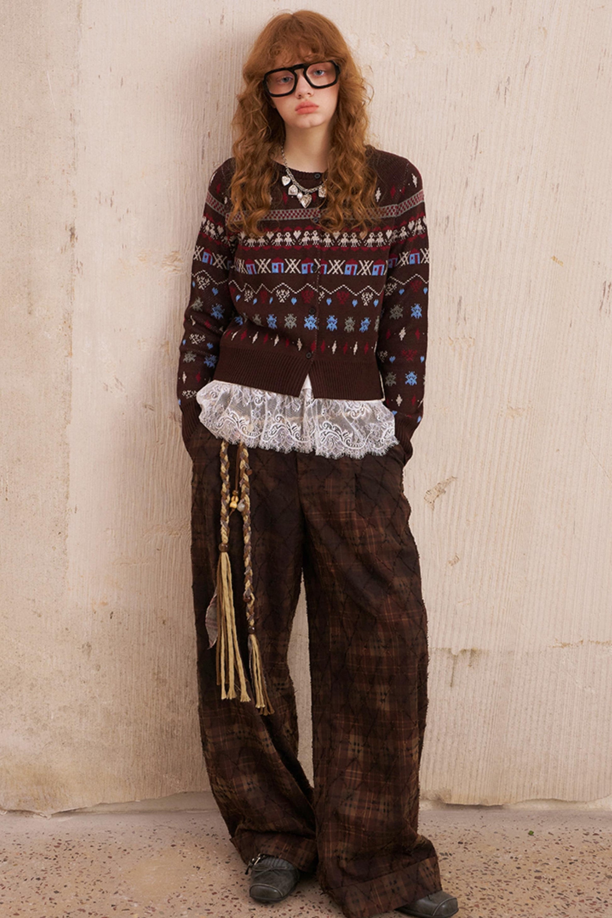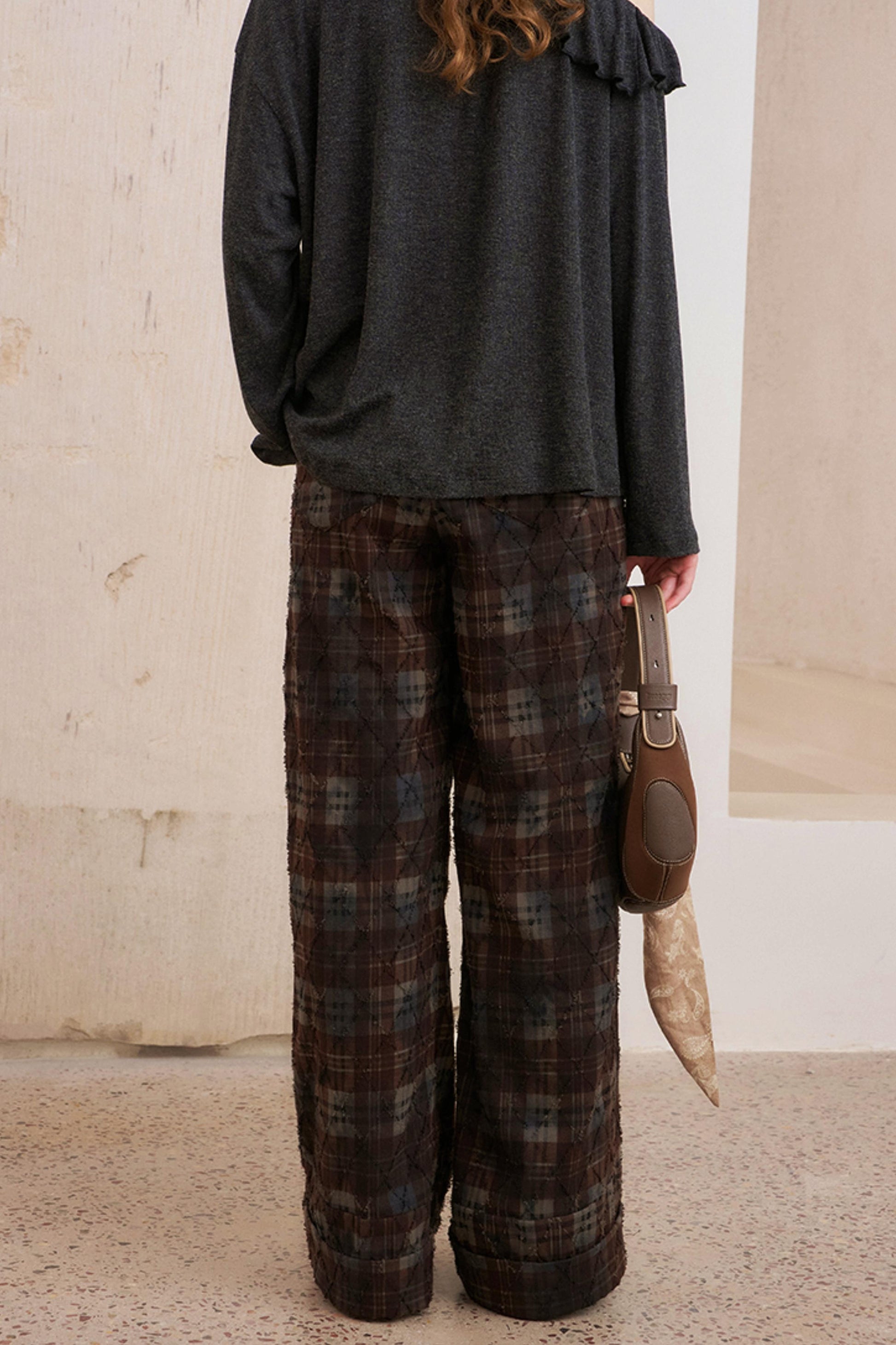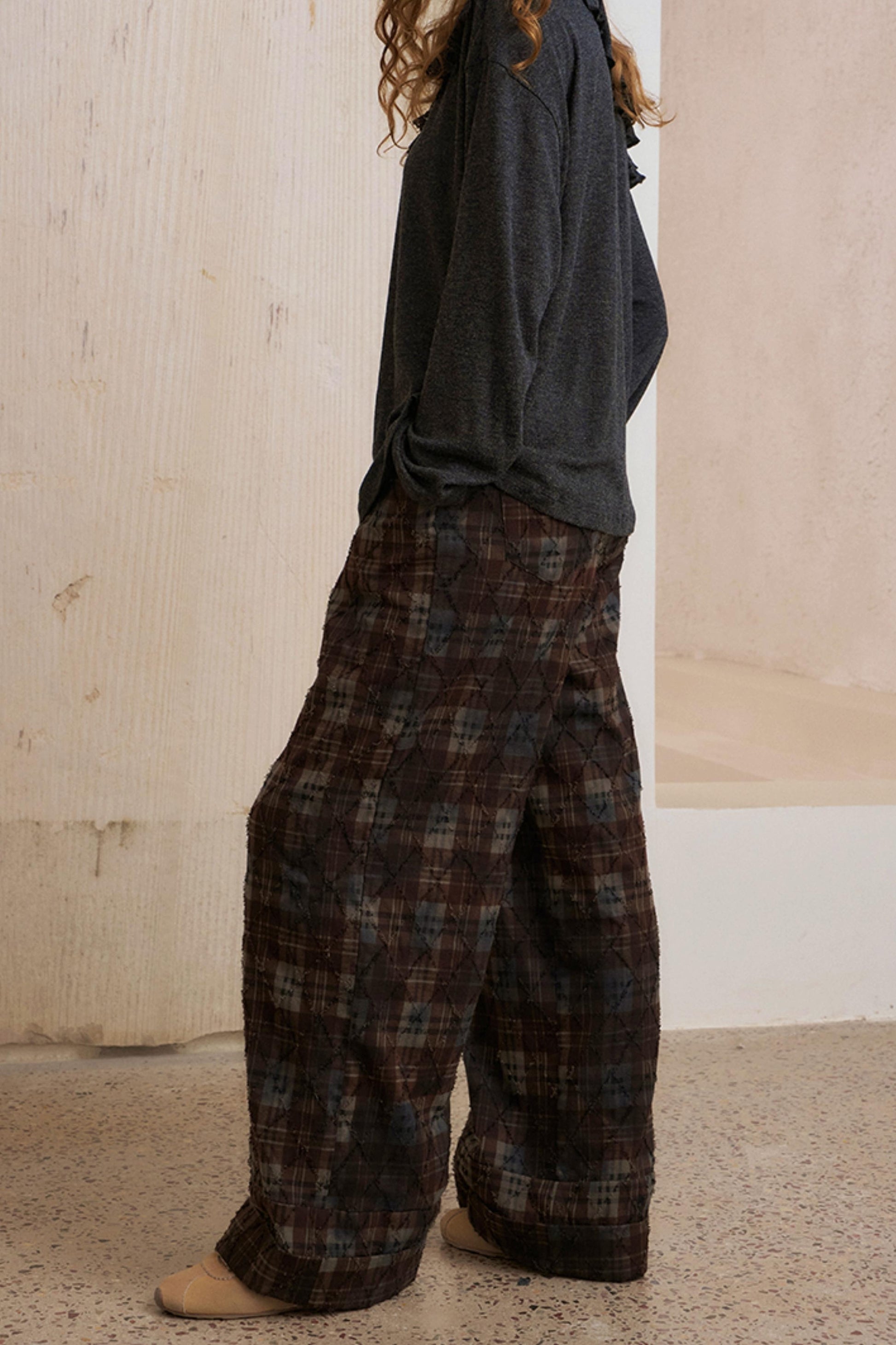 Textured Plaid Boho Slacks