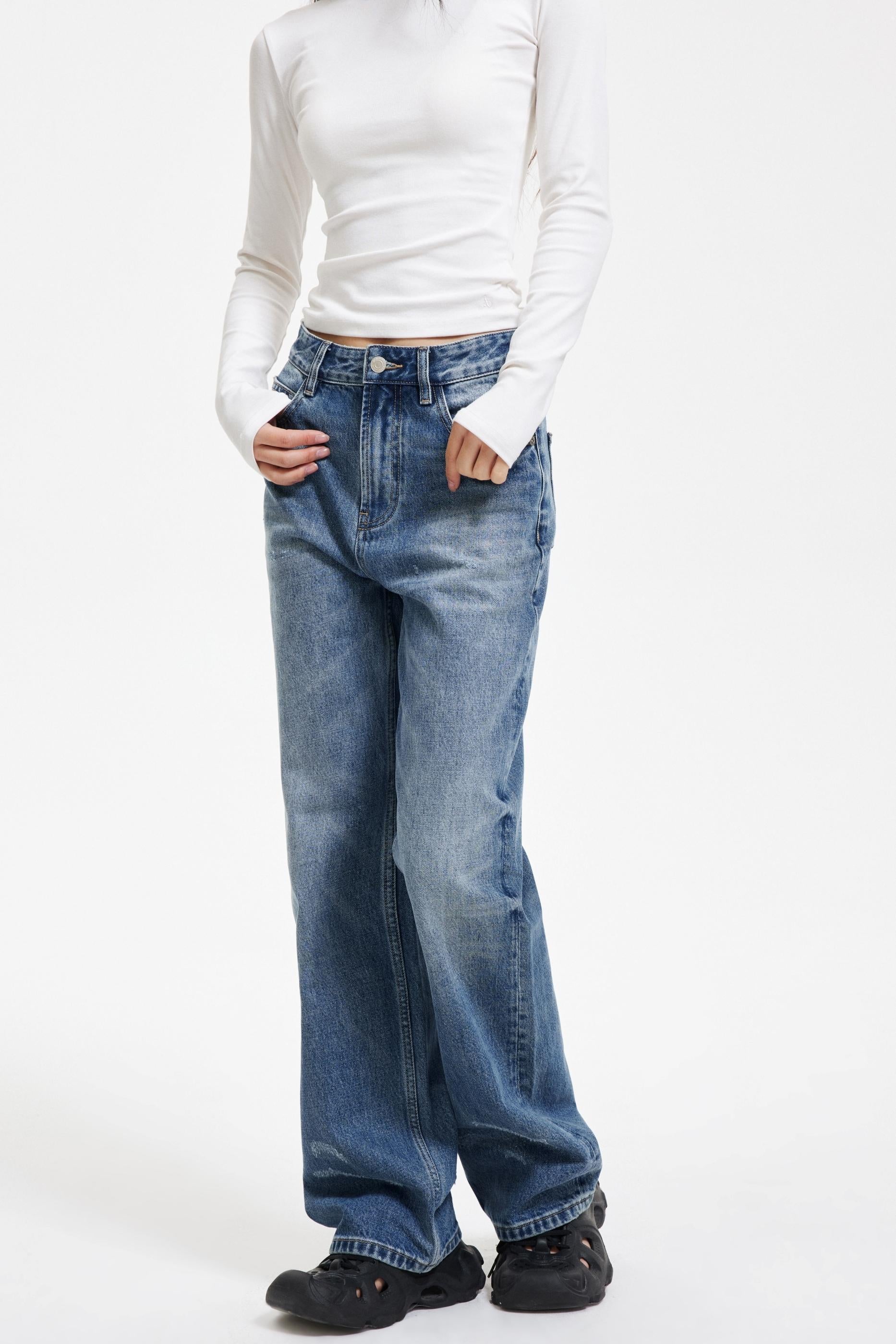 Washed Blue Ripped Denim Pants
