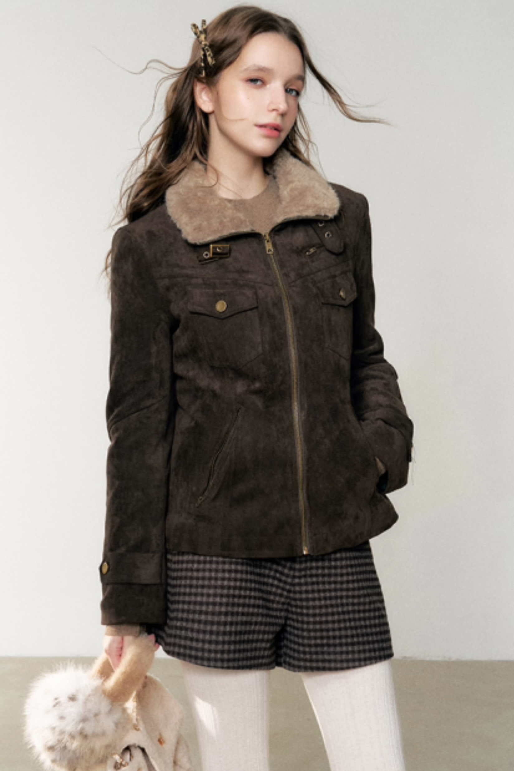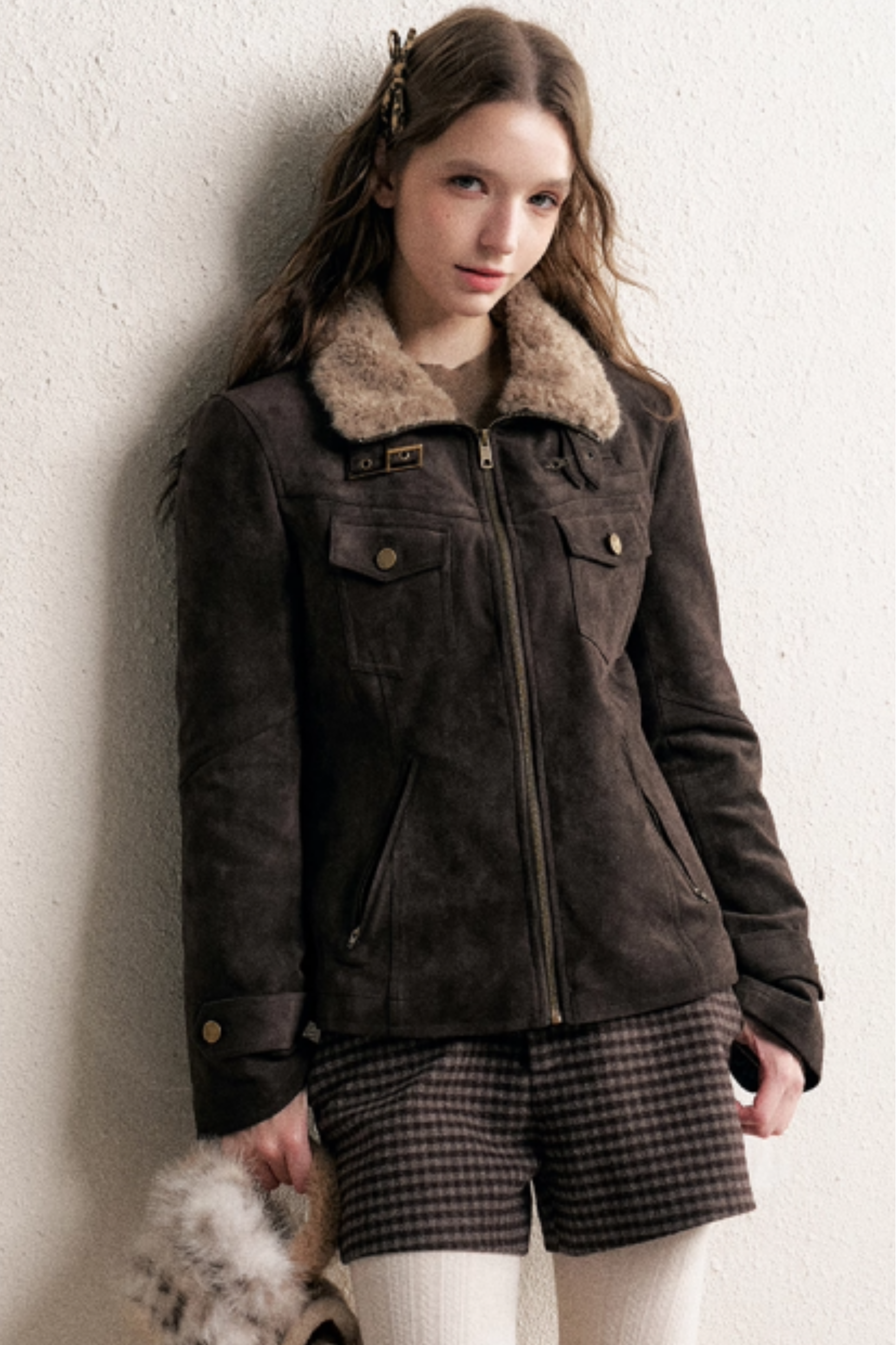 Coffee-Colored Fur Collar Coat