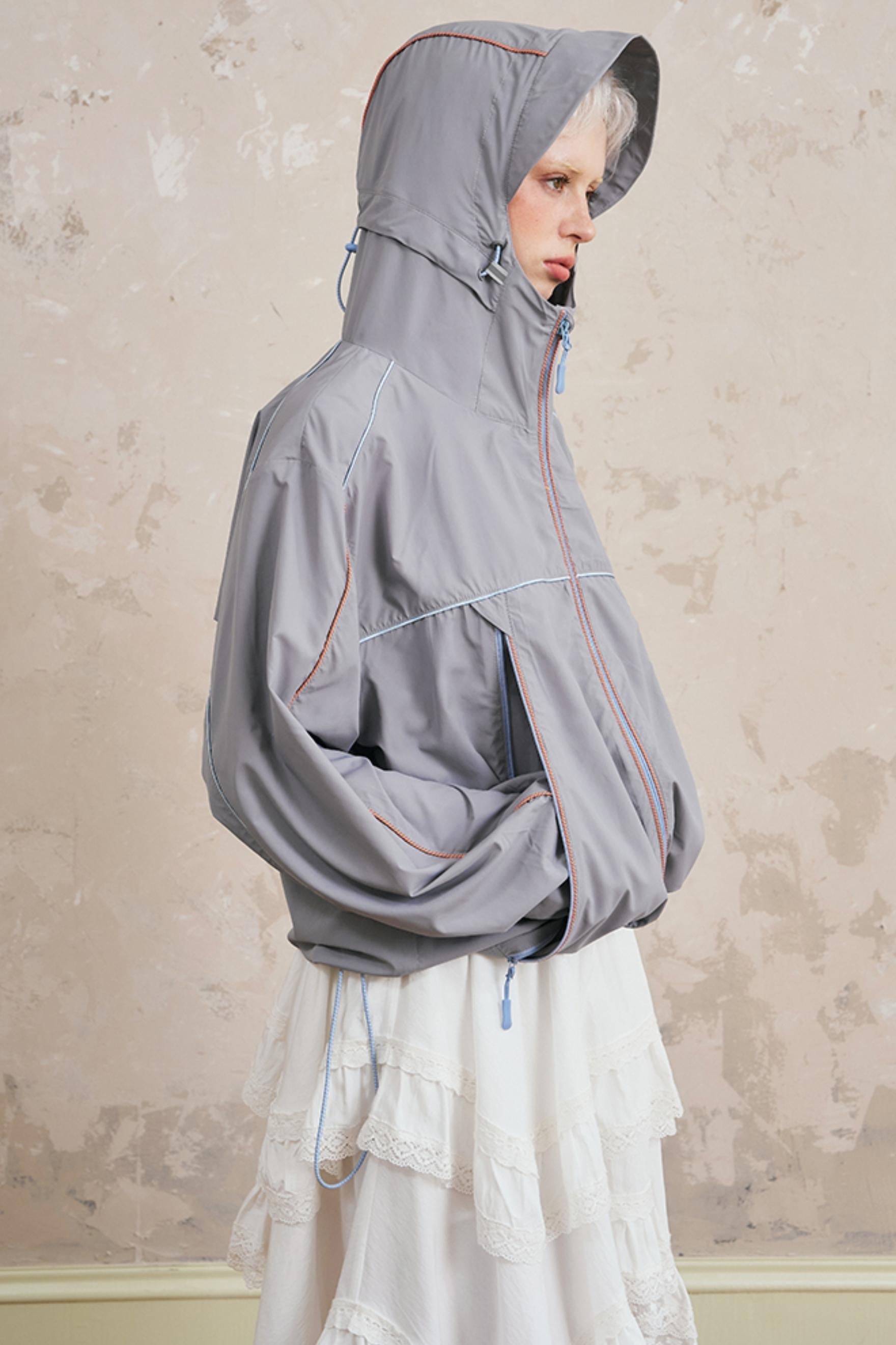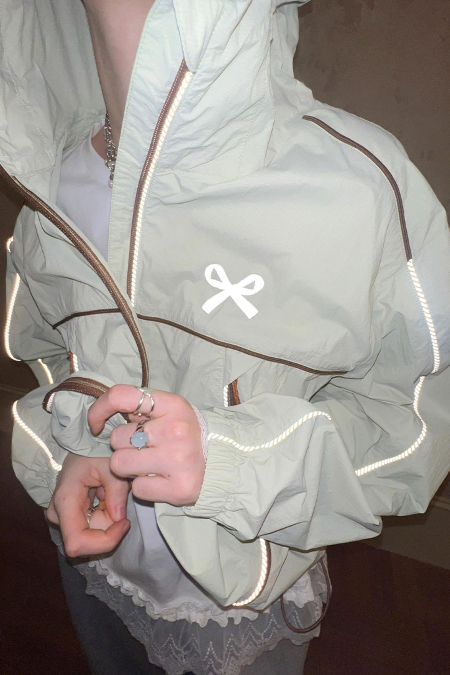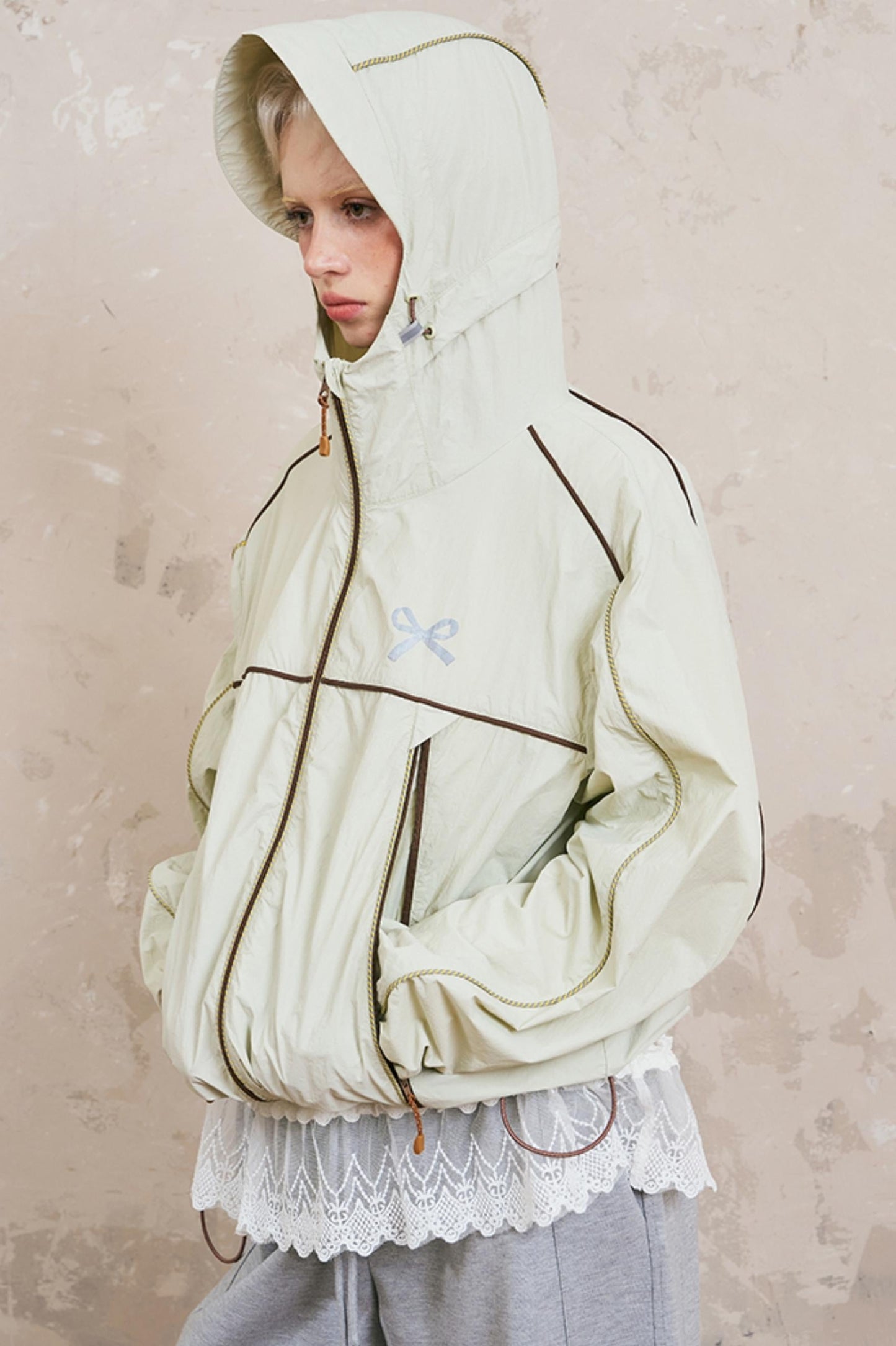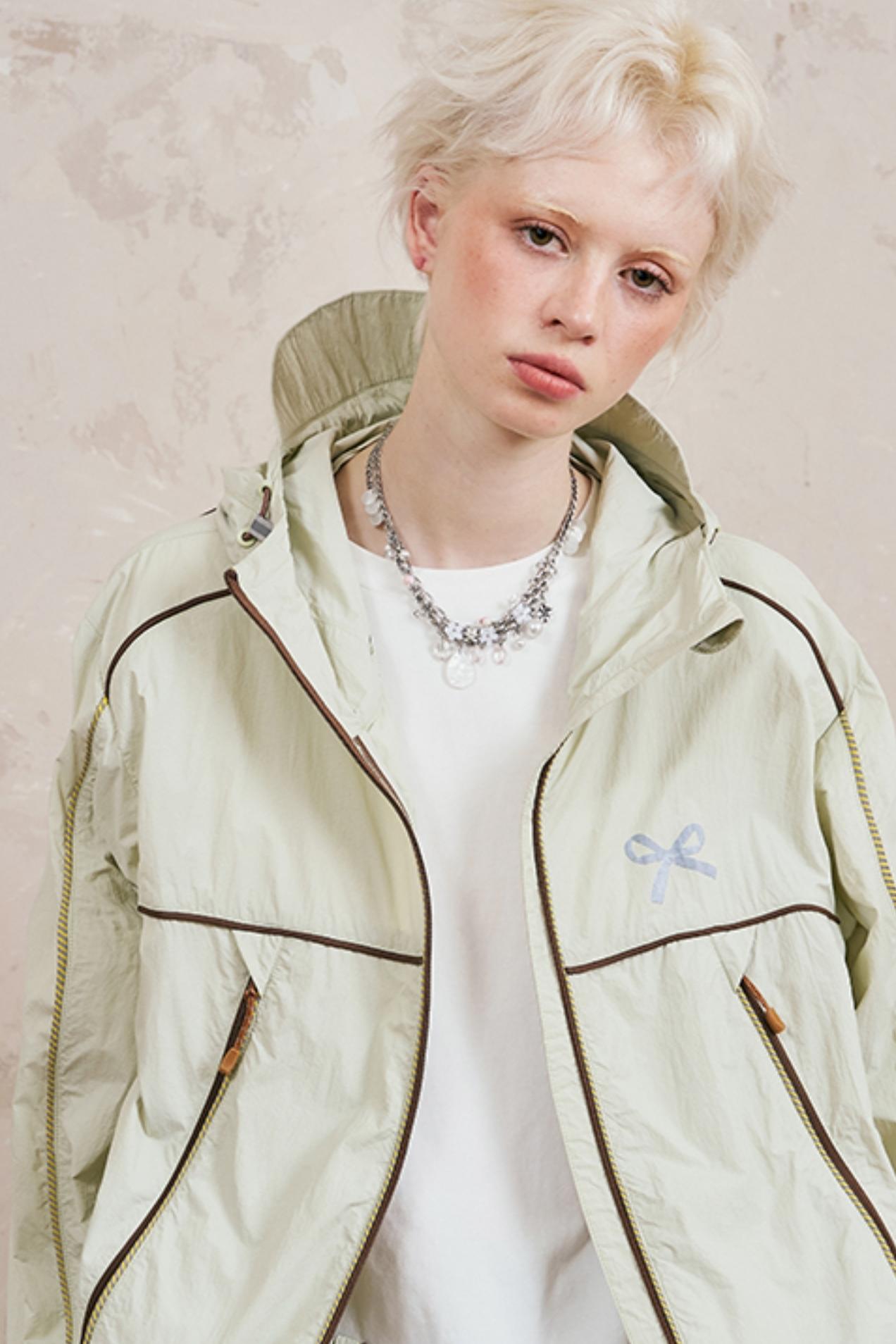 Color-Block Bow Hoodie Jacket