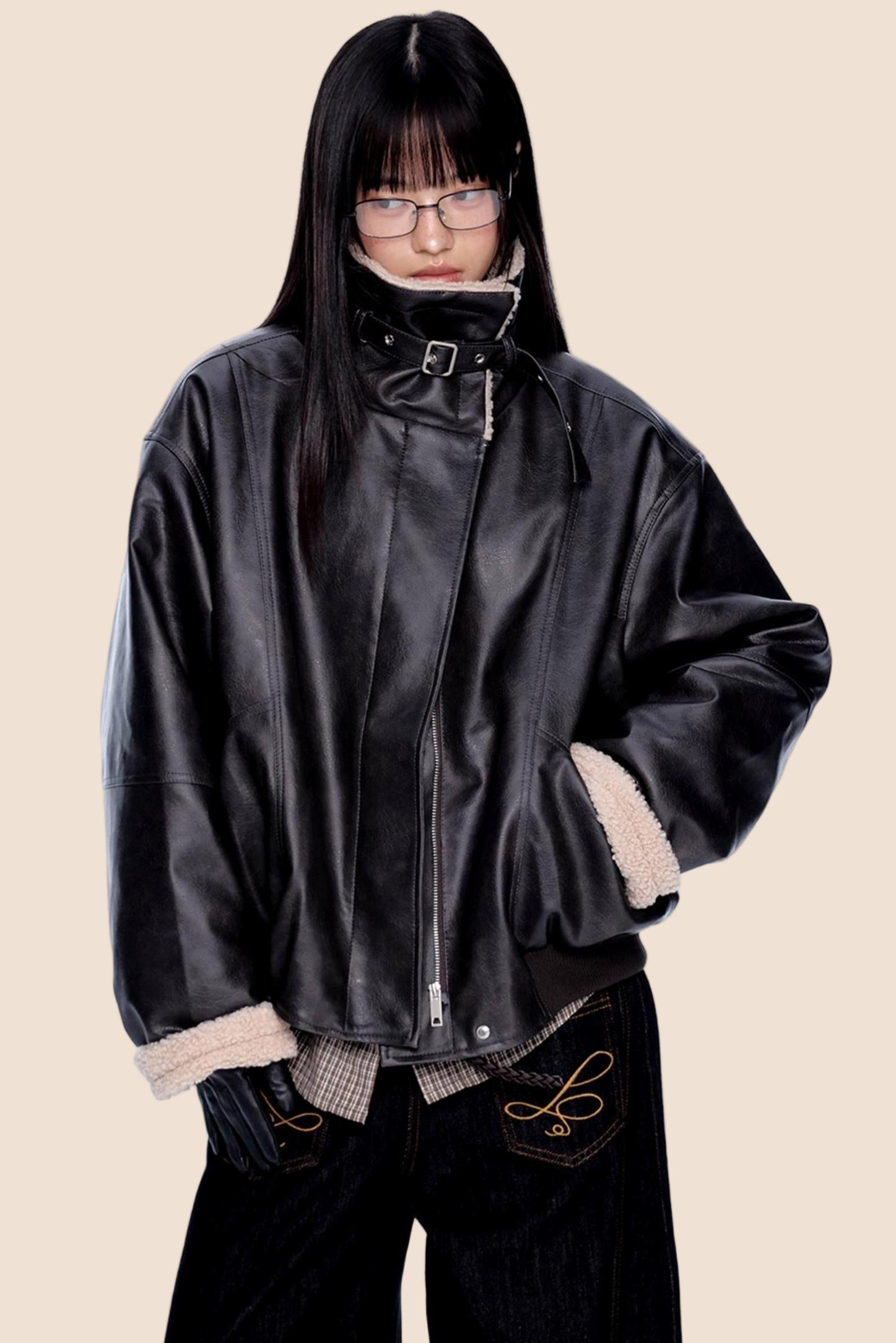 Fur Collar Color-Blocked Jacket