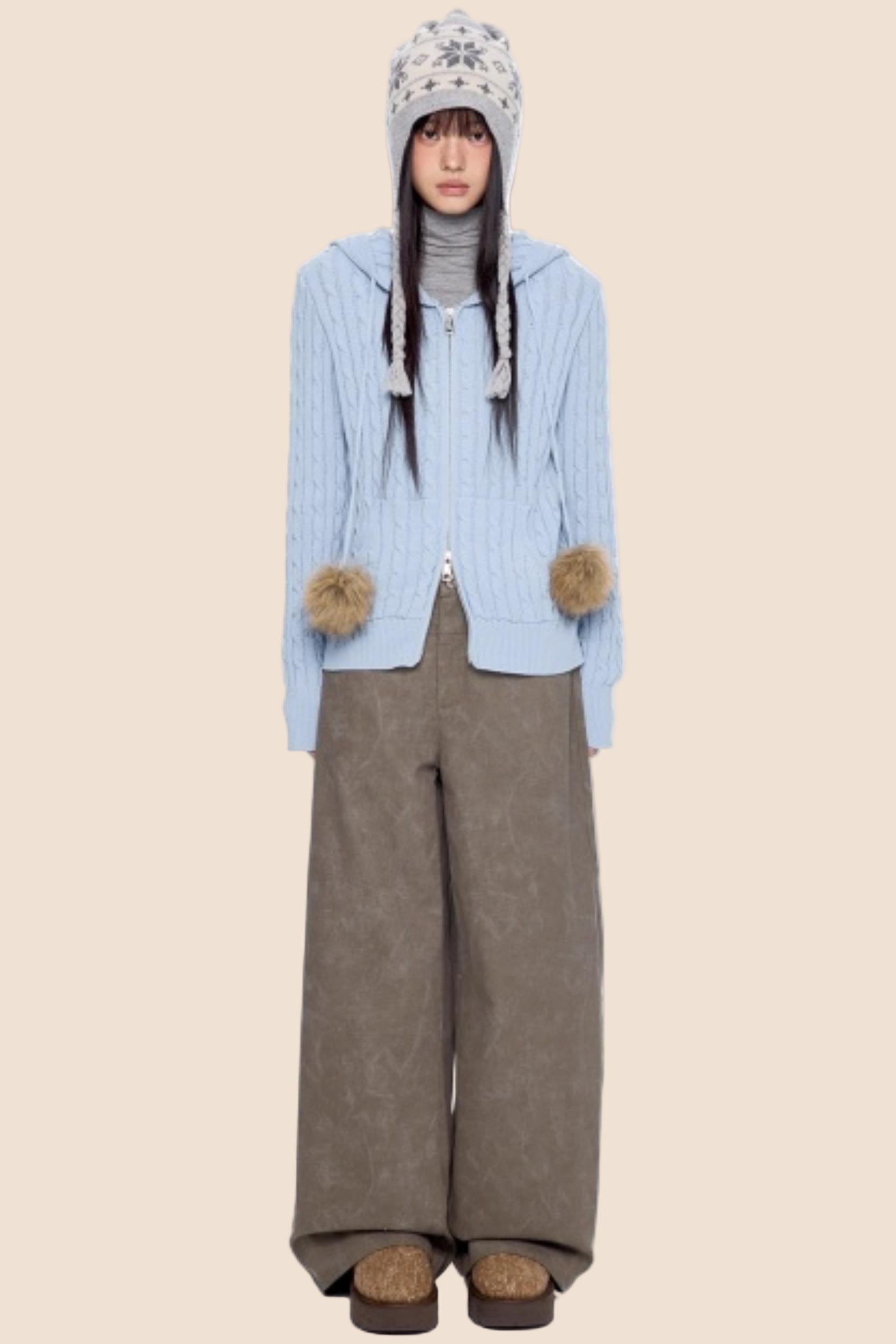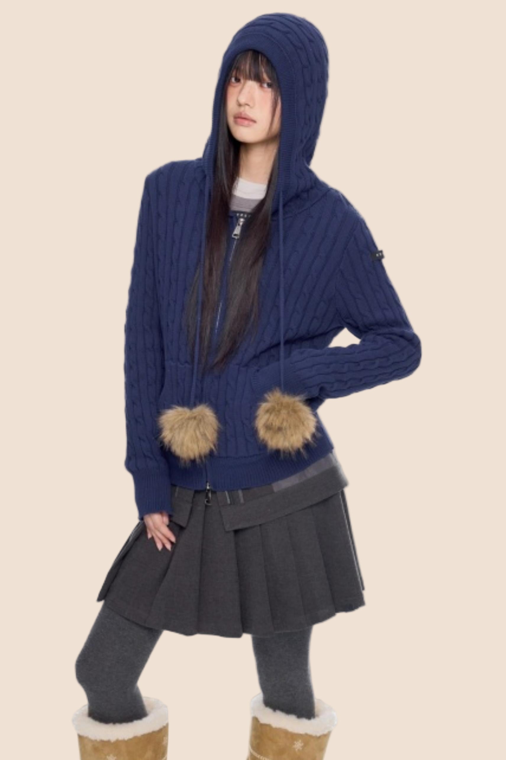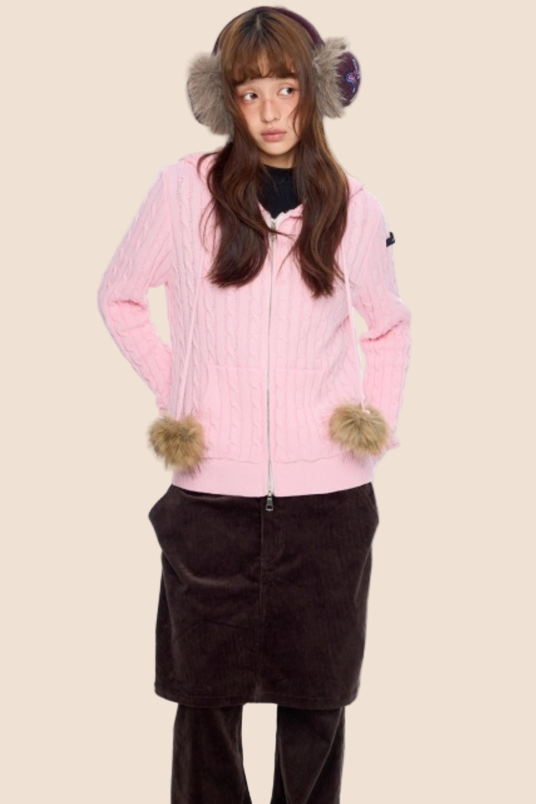 Furball Twisted Knit Hooded Cardigan