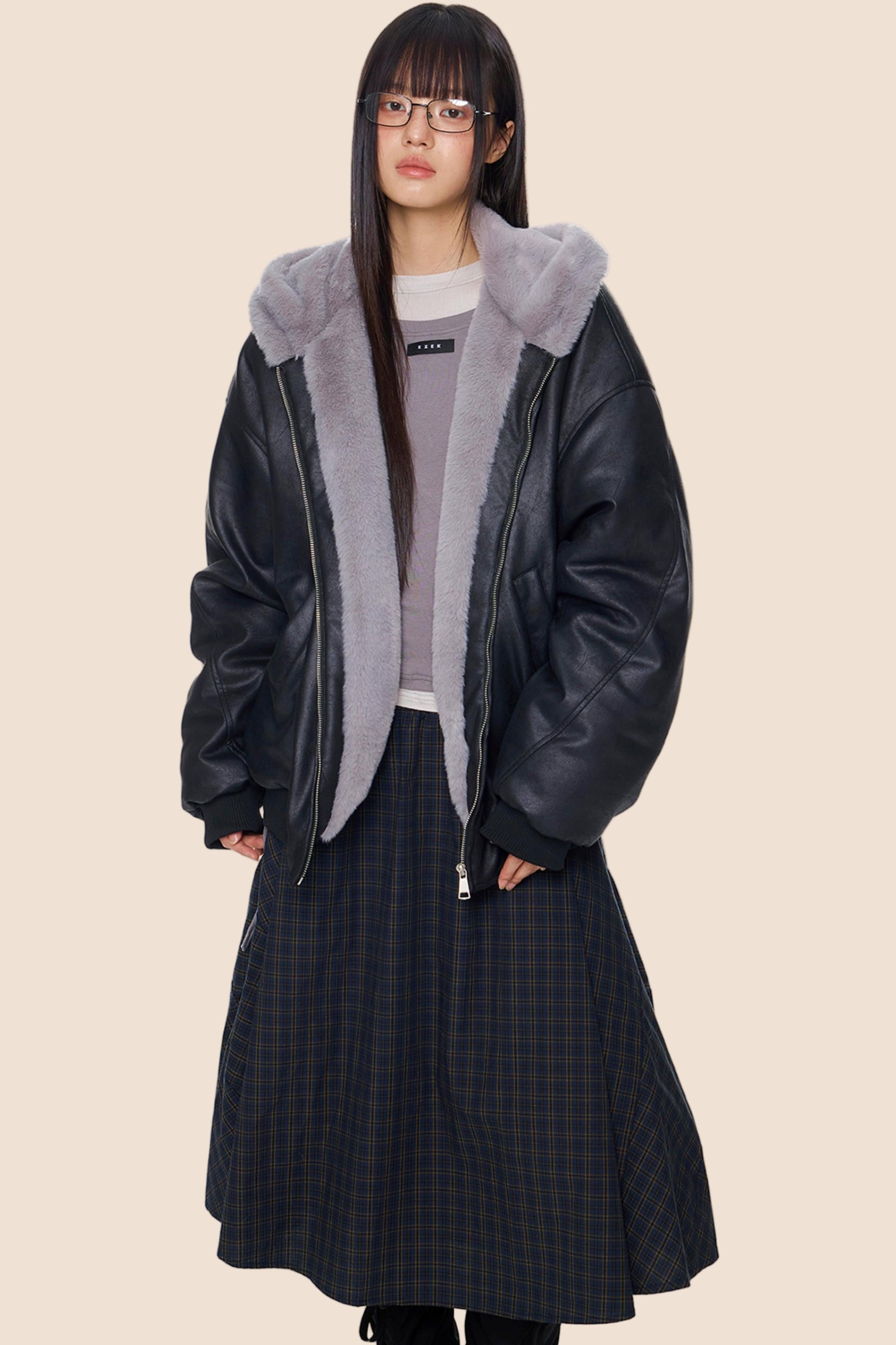 Furry Hooded Leather Jacket