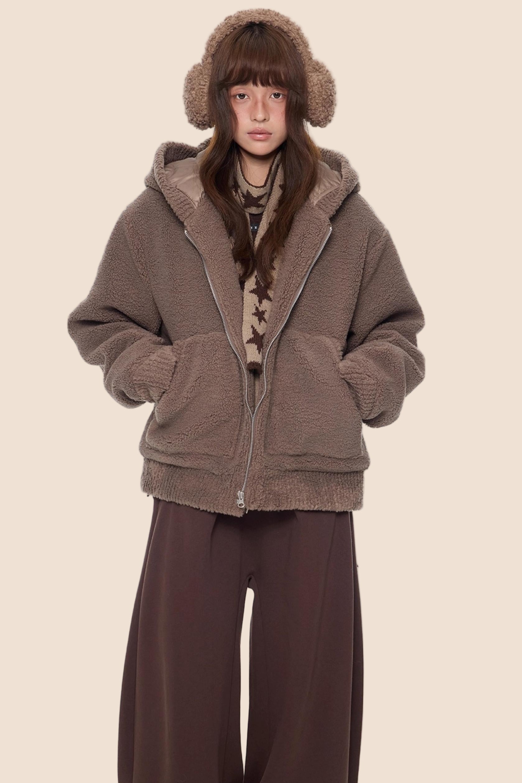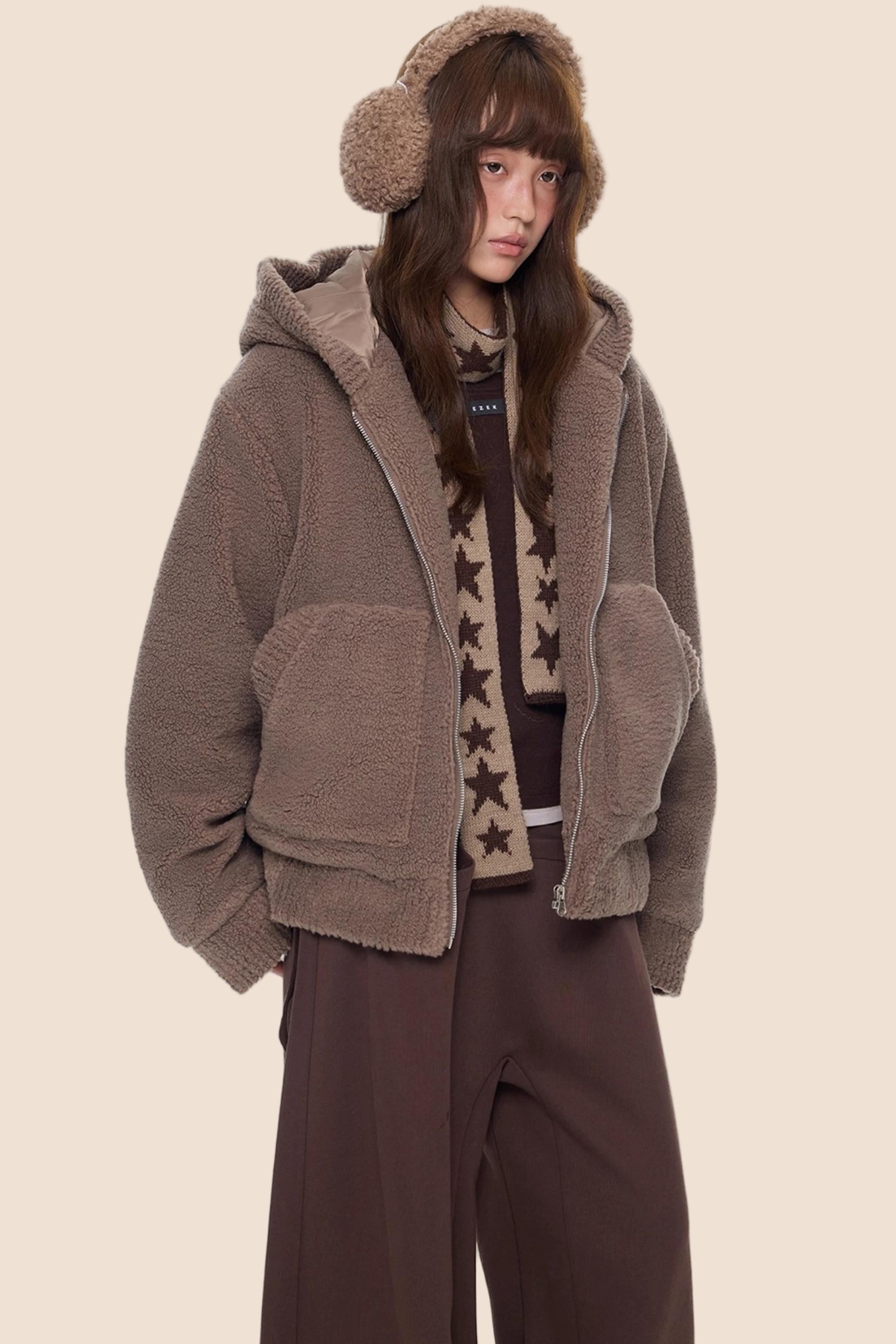 Imitation Lamb Wool Hooded Jacket