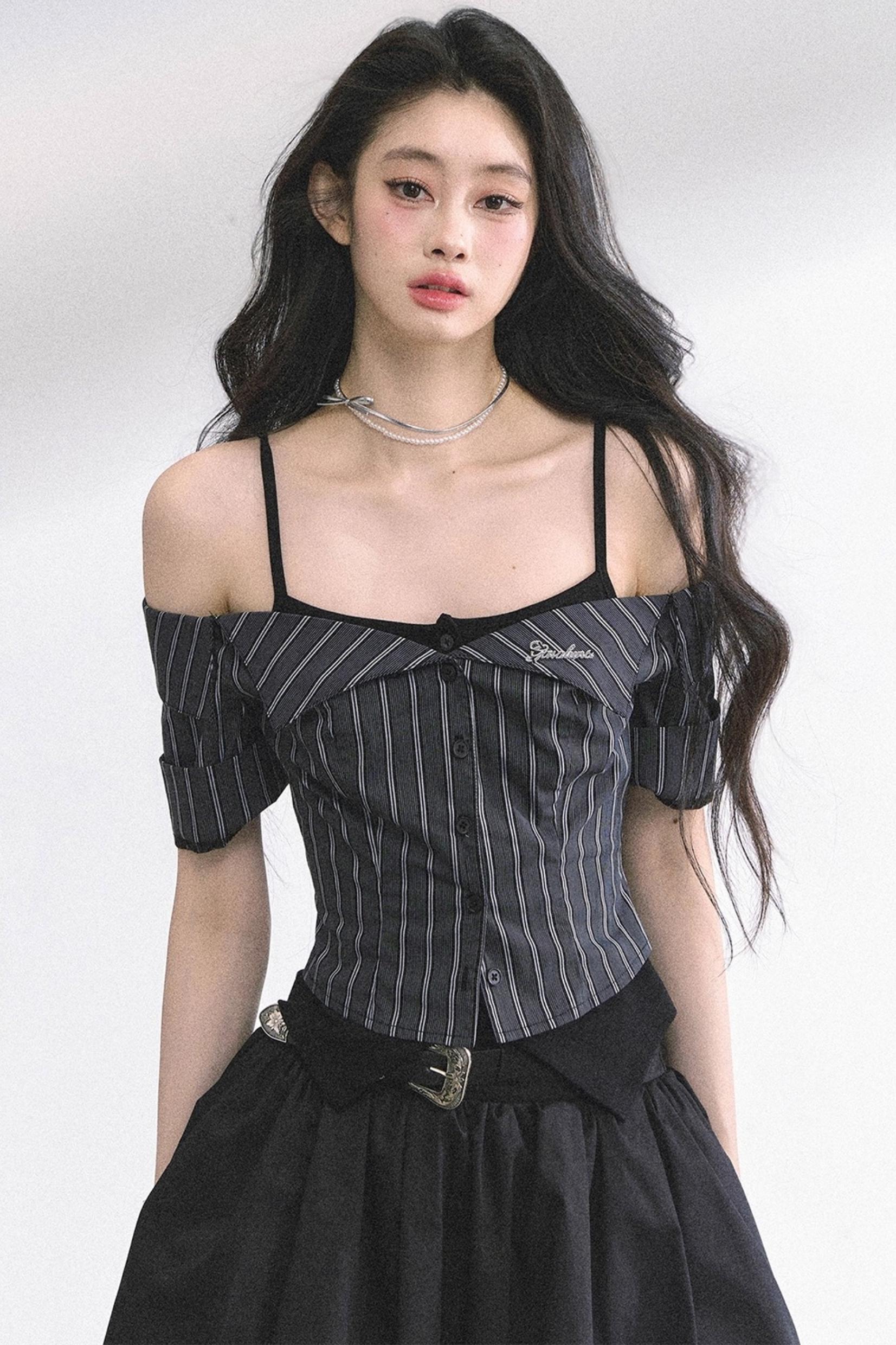Kyoto Striped Short-Sleeved Sunscreen Top