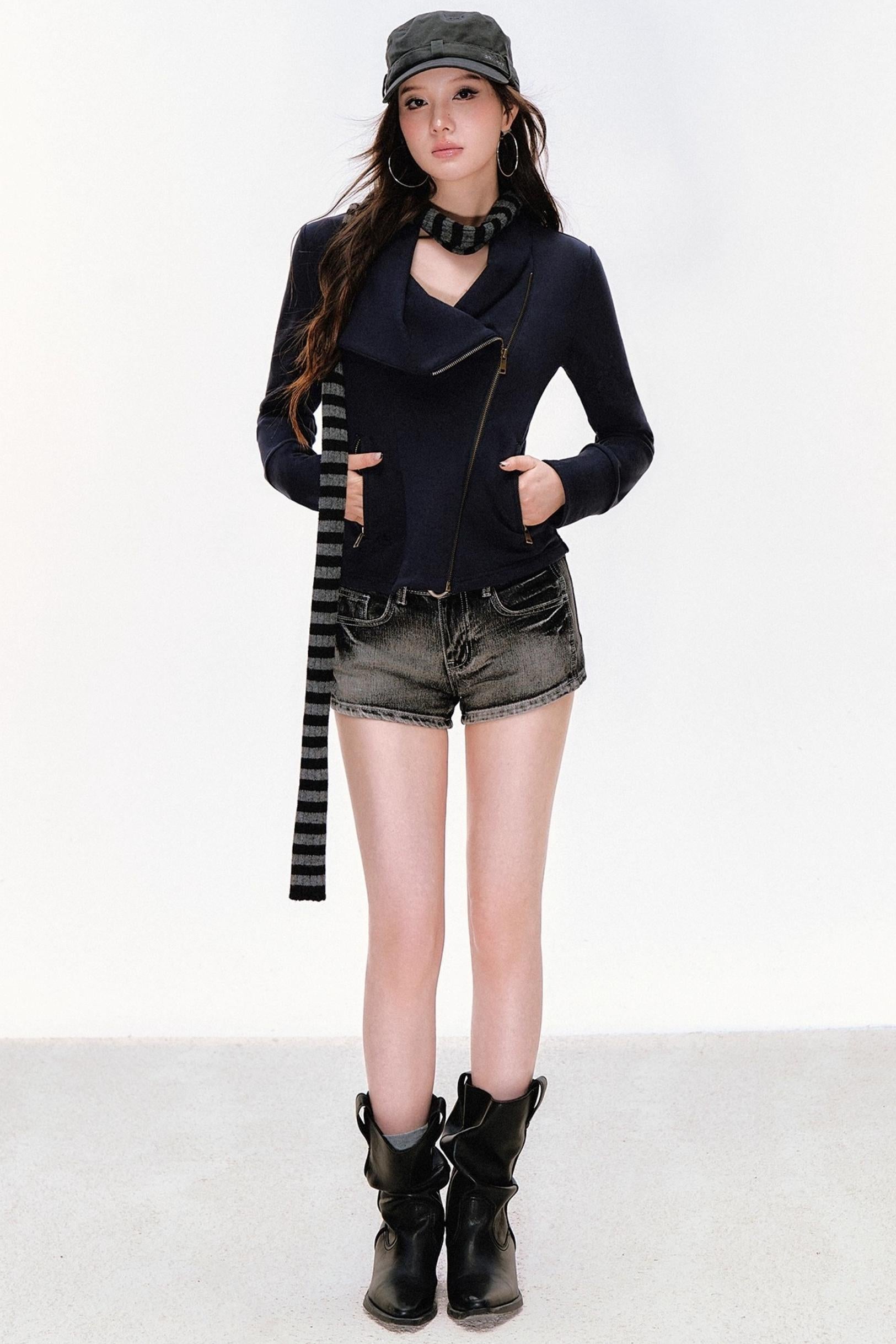 Lapel Diagonal Placket Short Jacket