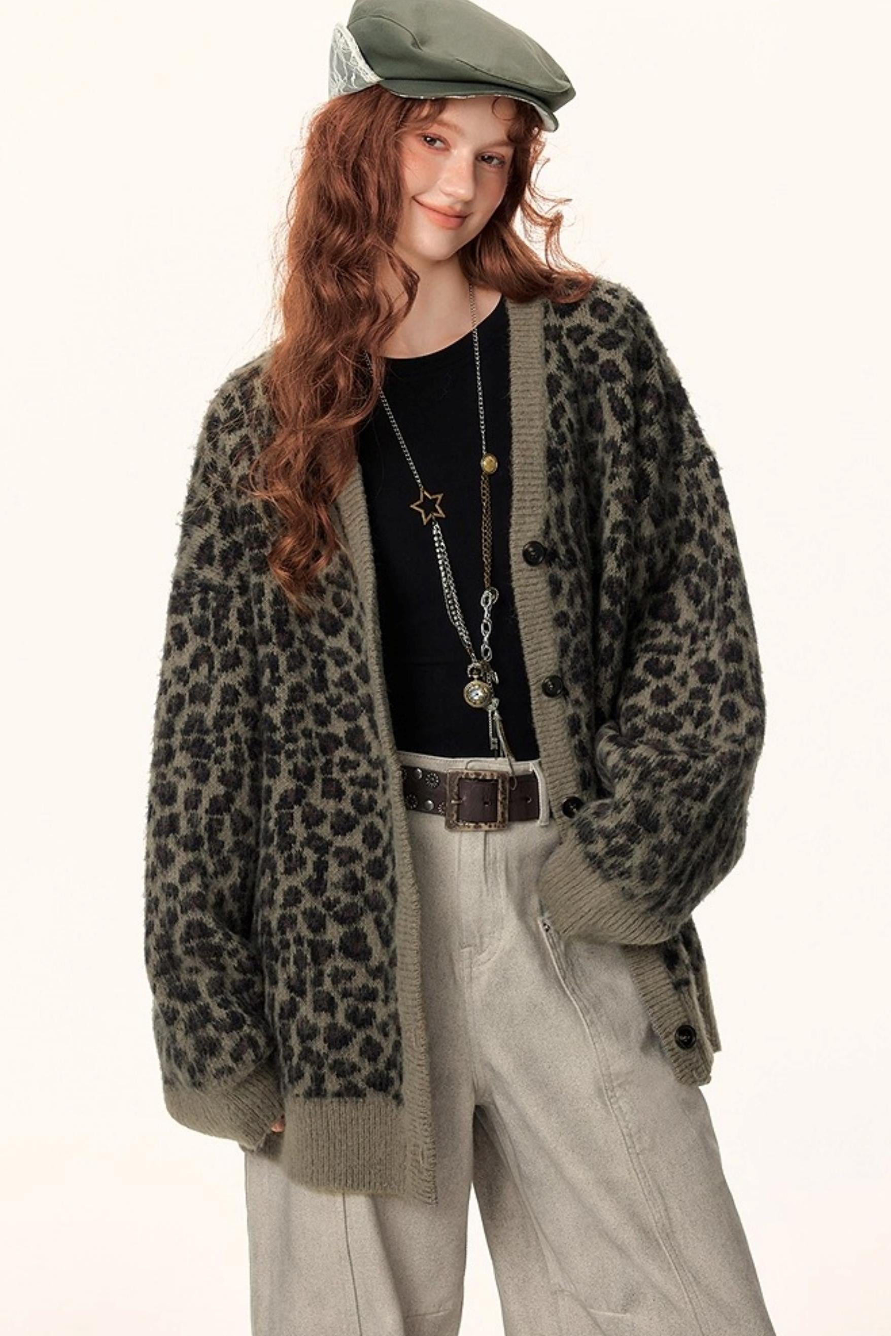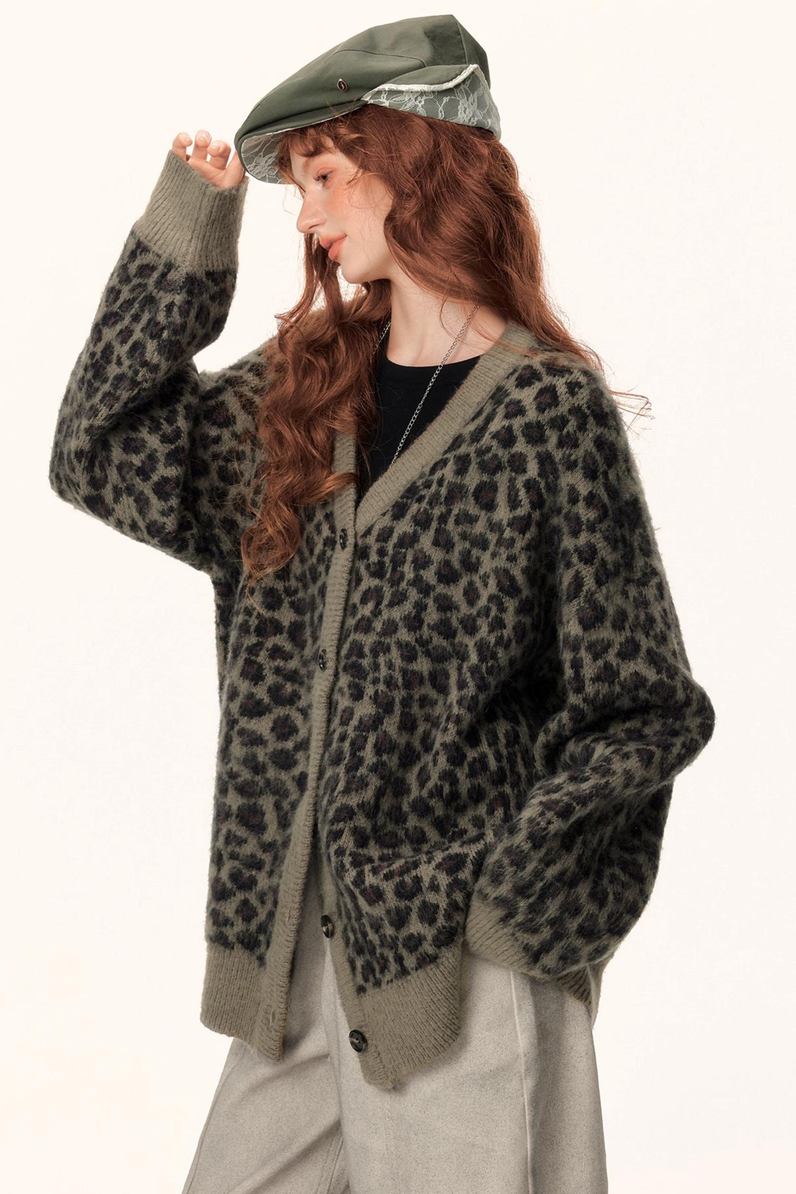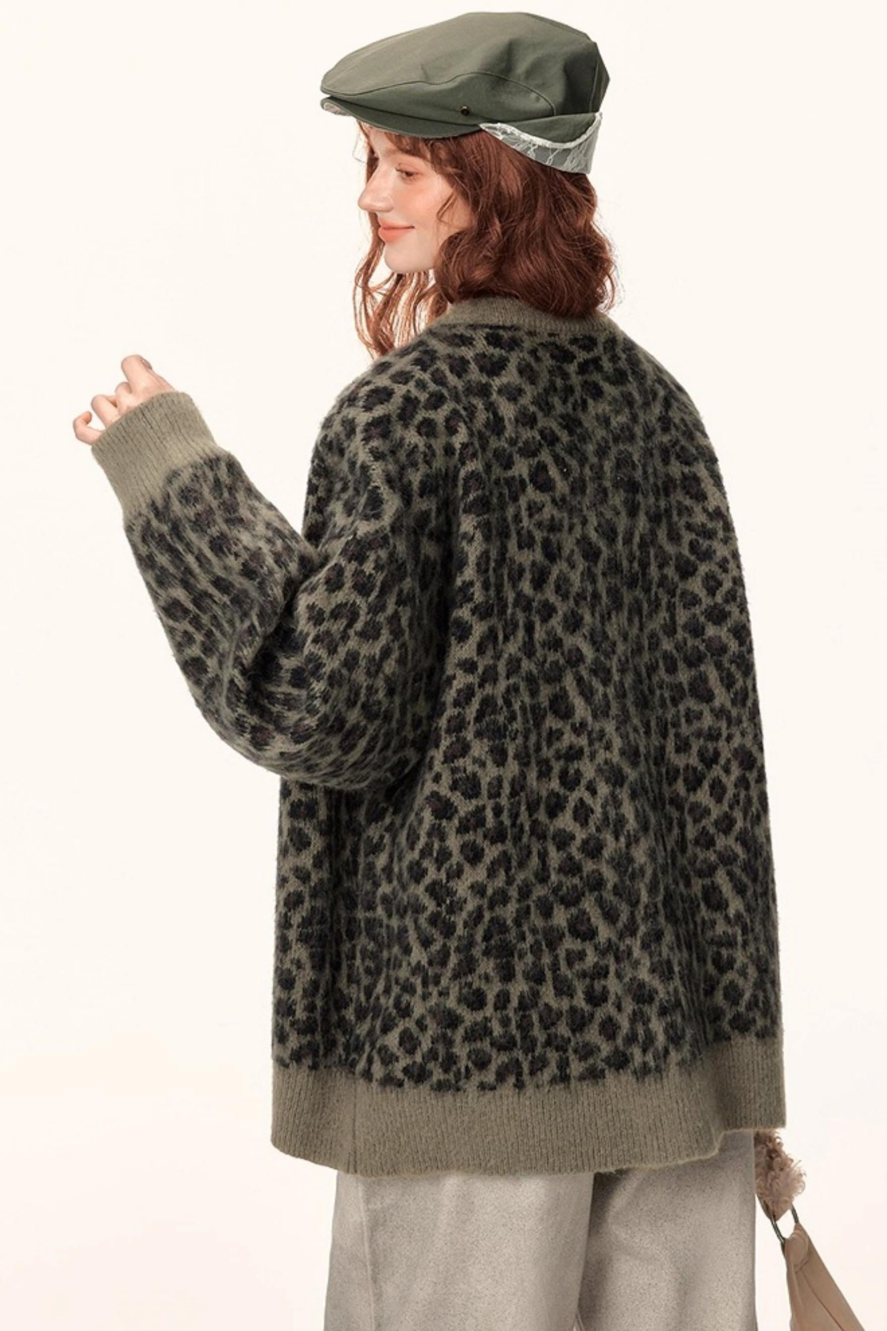 Leopard Print Jacquard Cardigan