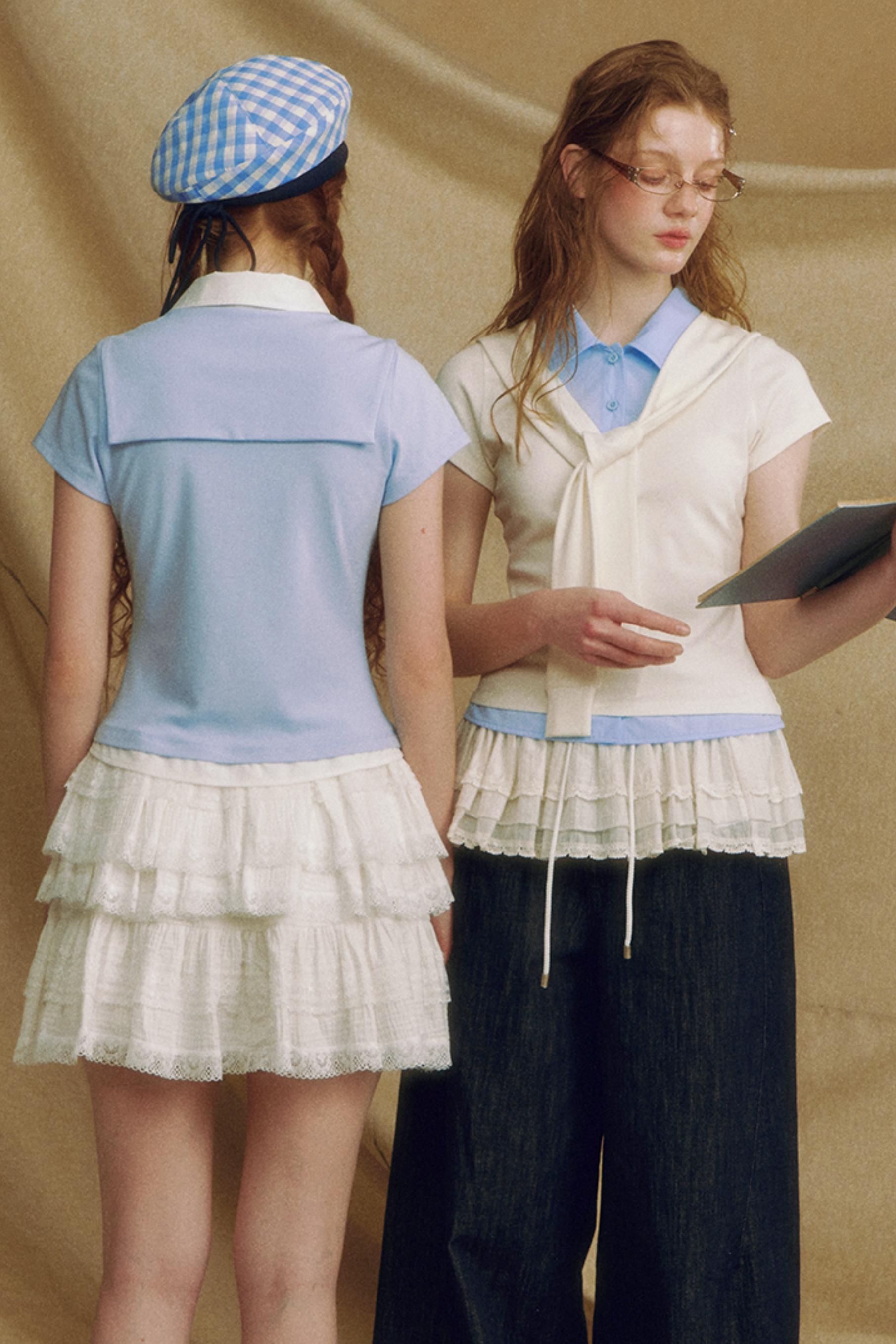 Navy Color Clash Shawl Tee
