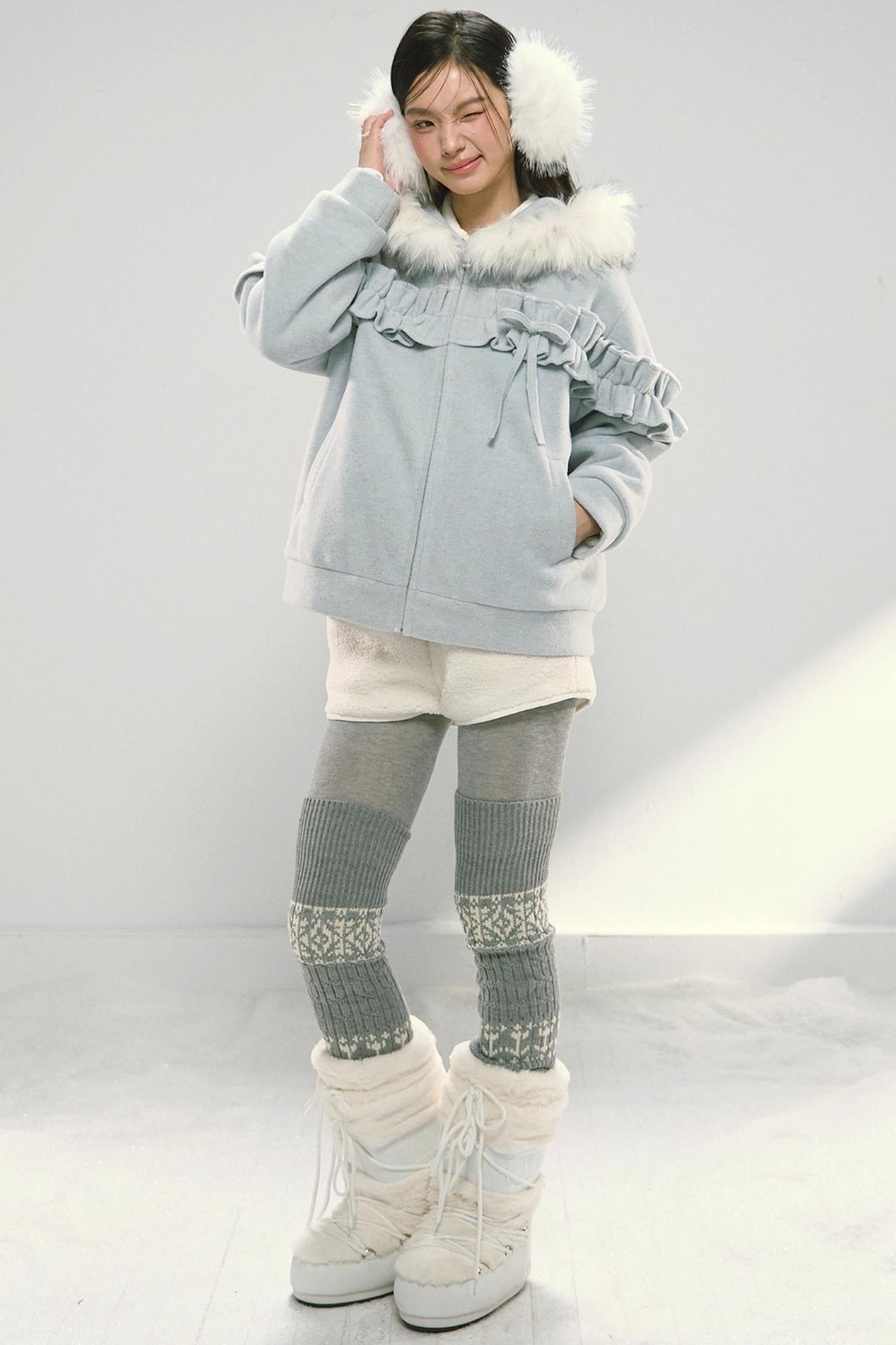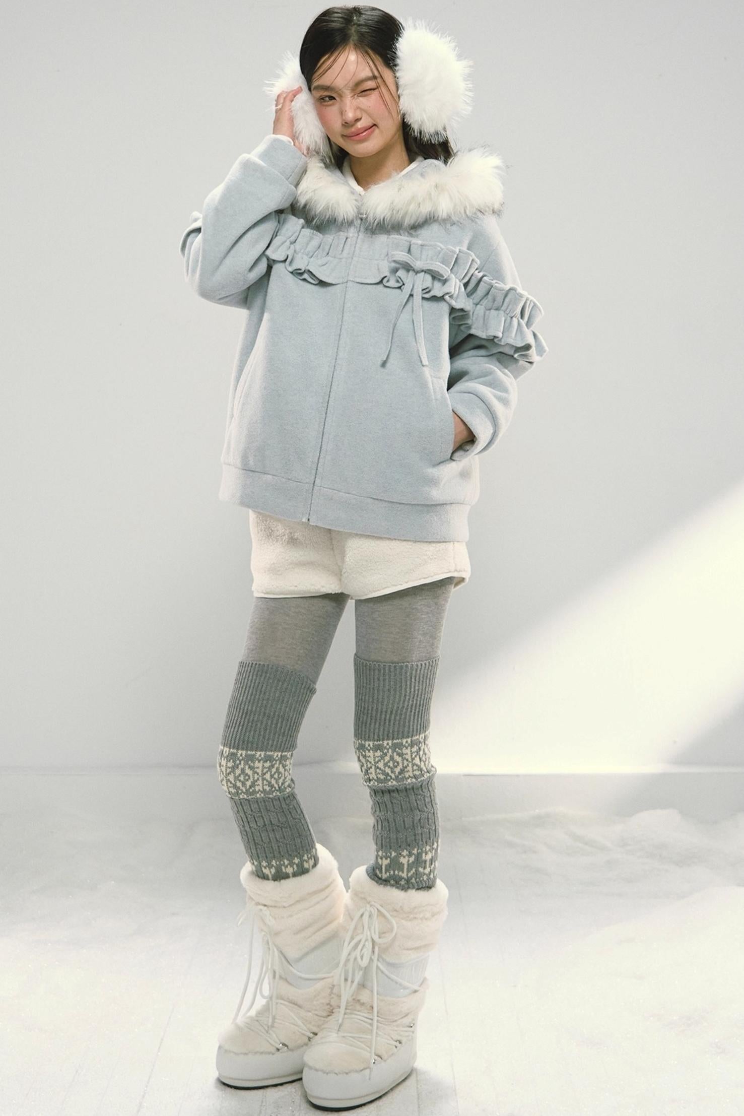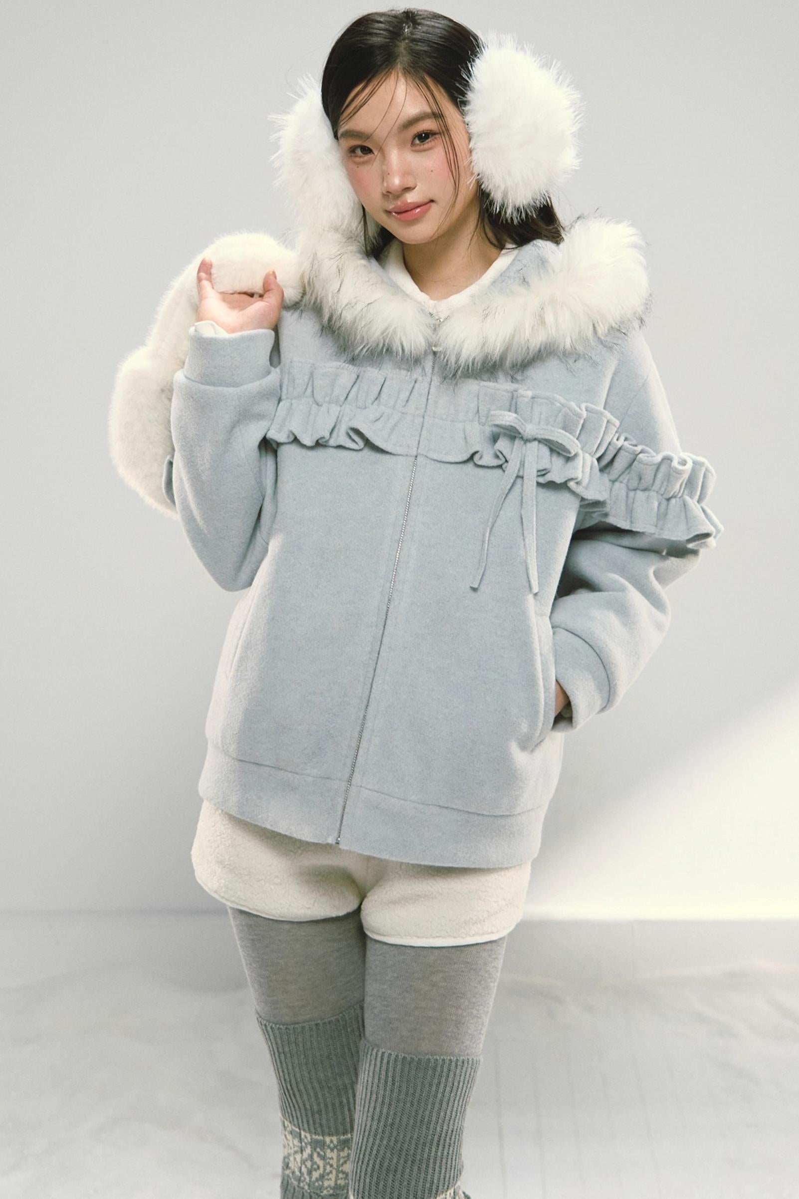 Pink Lace Fur Hooded Tweed Jacket