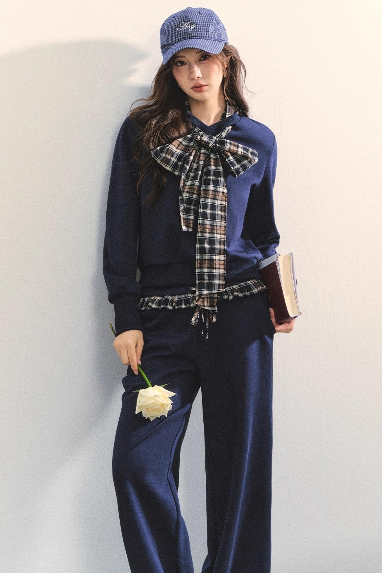 Plaid Sweatshirt Trousers Set-Up