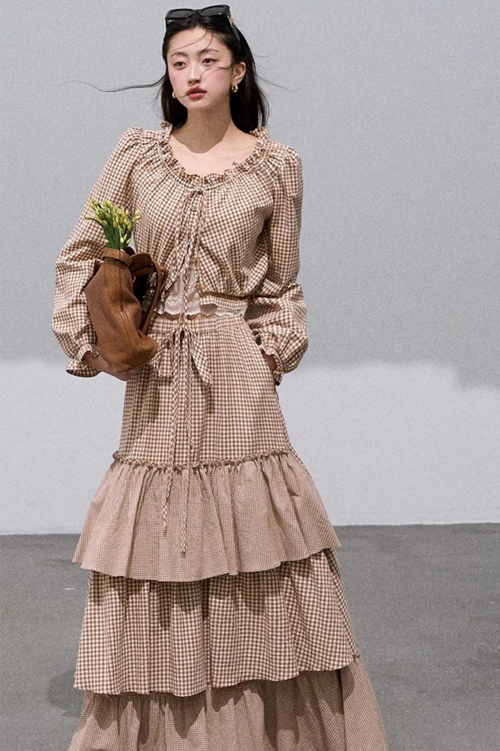 Preppy Cotton Strappy Cake Skirt Set-Up