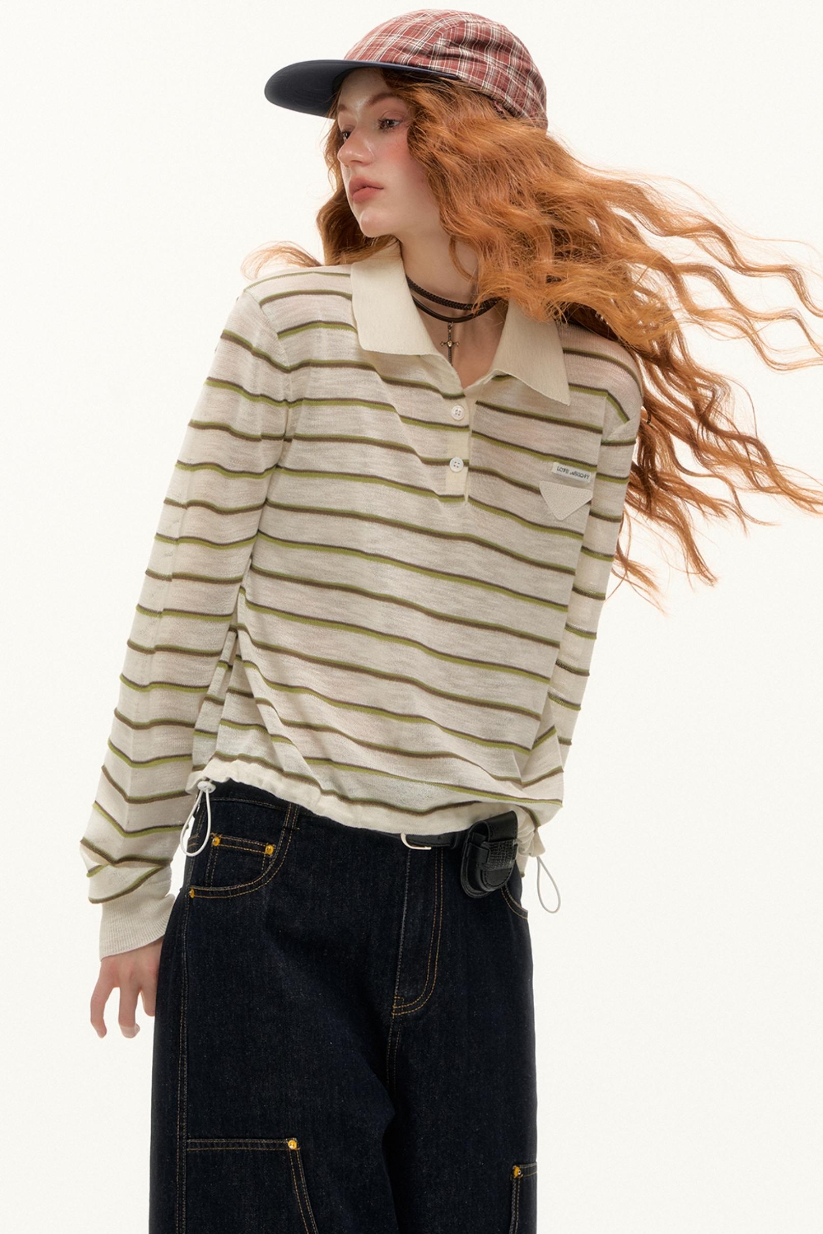 (ストライプ長袖シャツ)