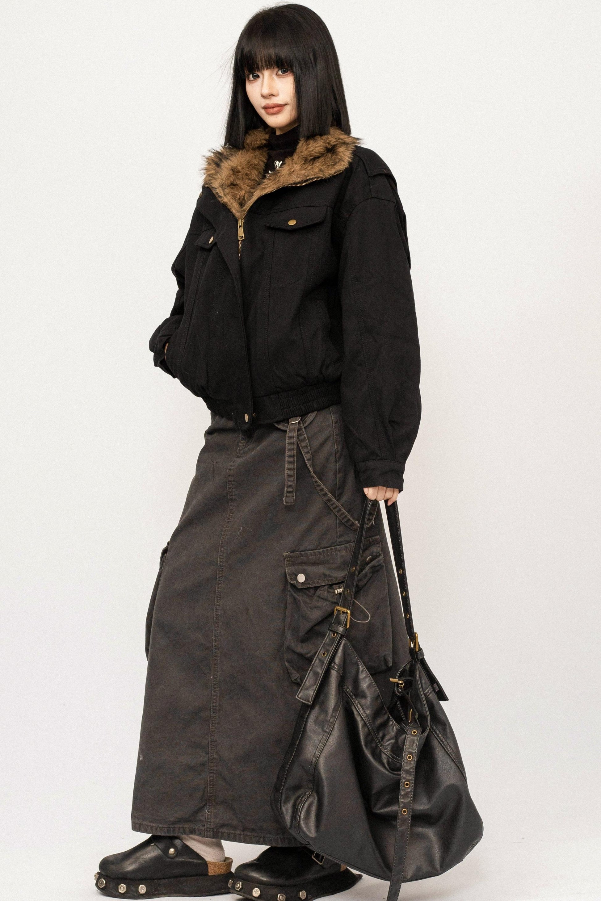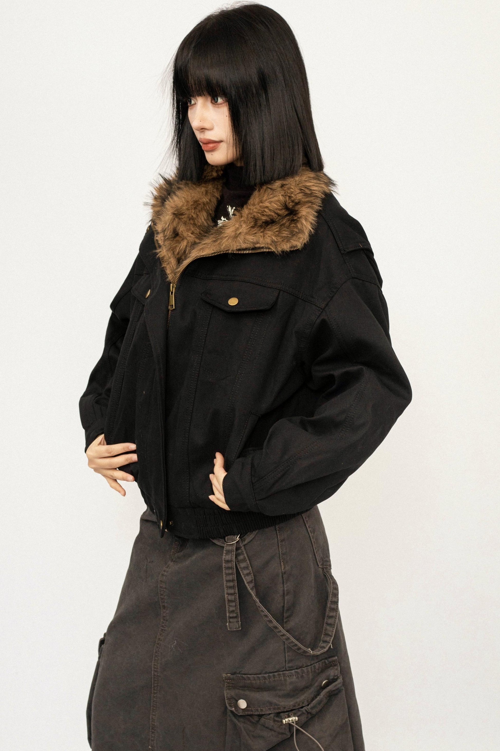 Retro Fur Collar Workwear Winter Cotton Jacket