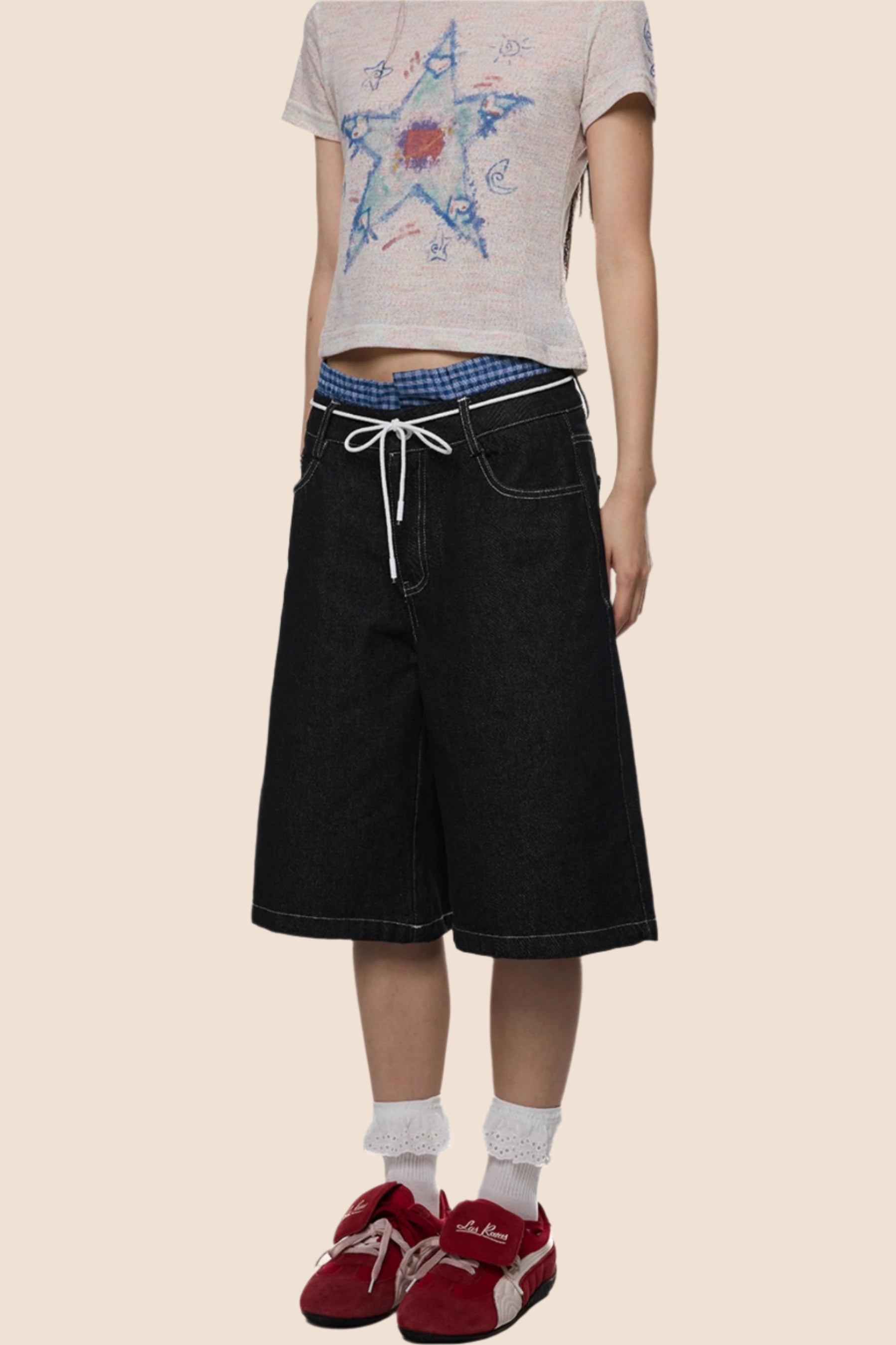 Retro Plaid Wide-Leg Summer Jeans