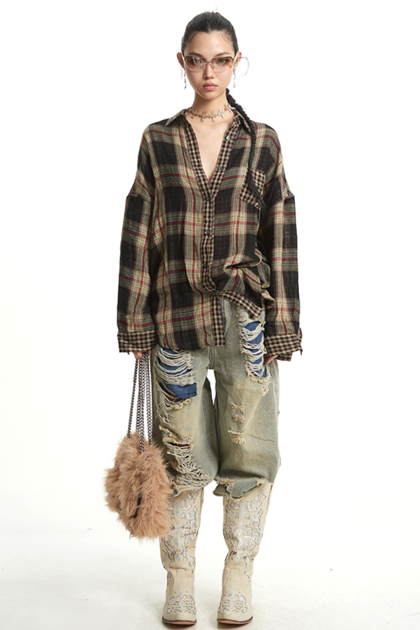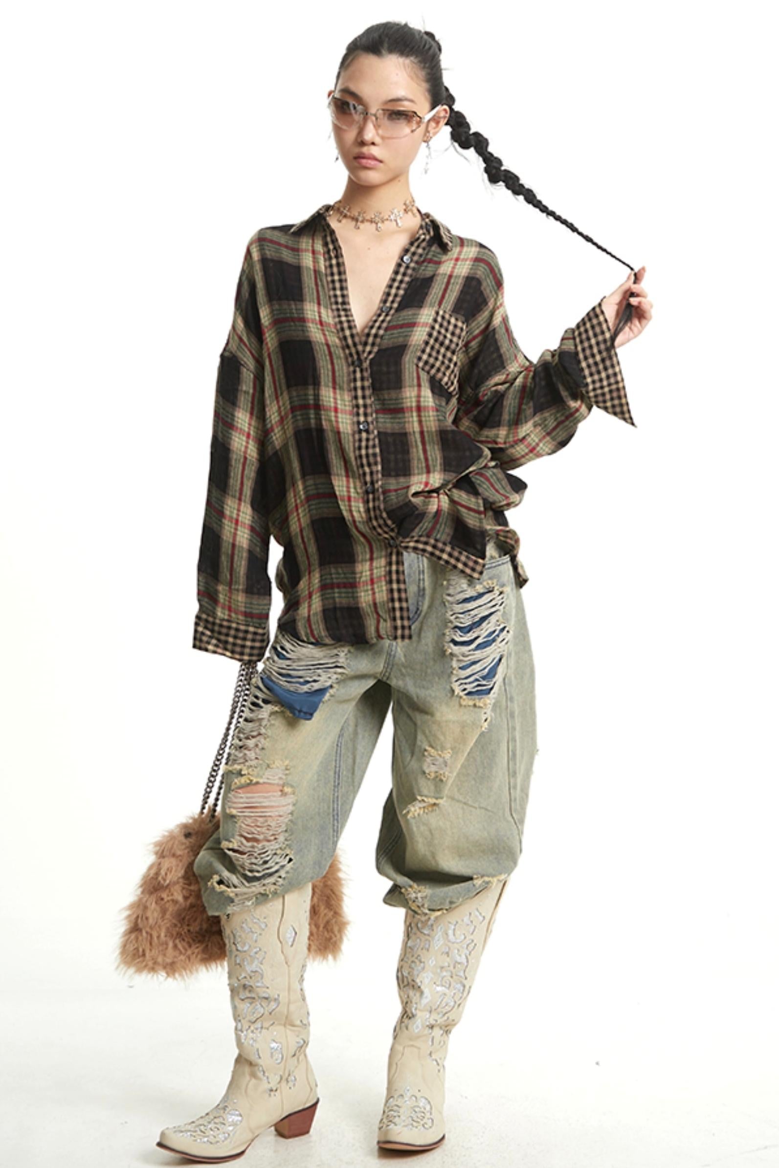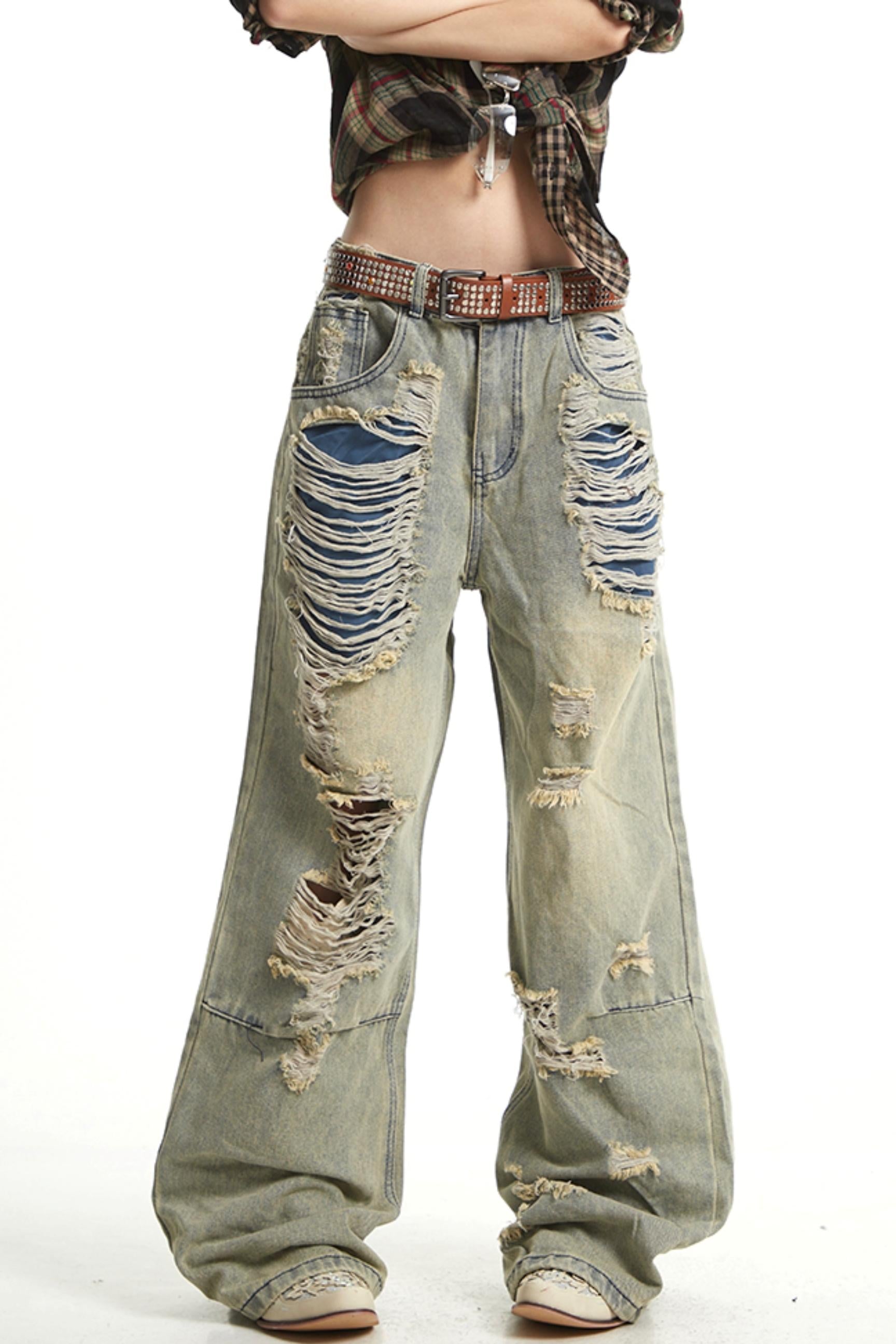 Retro Wide-Leg Denim Trousers