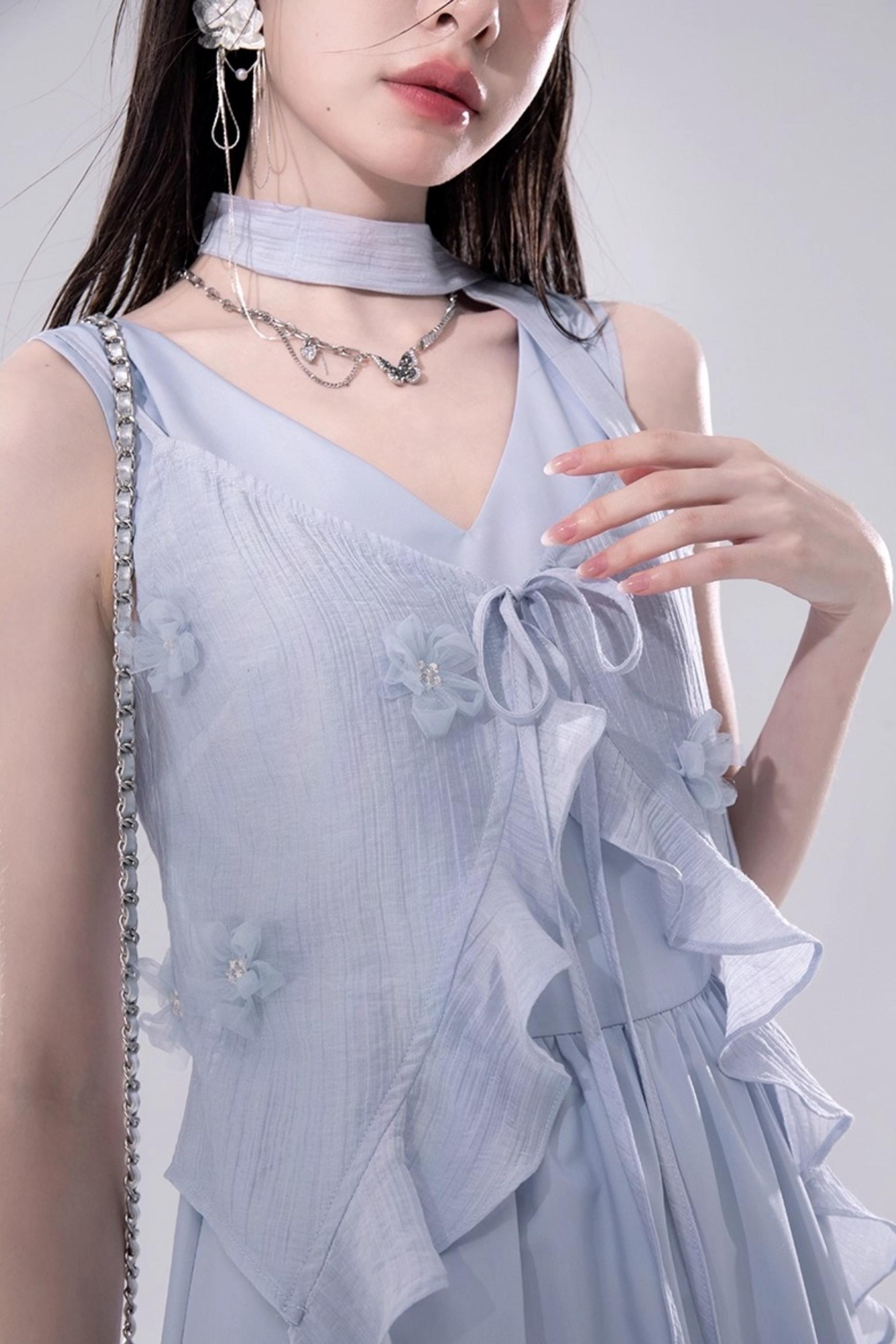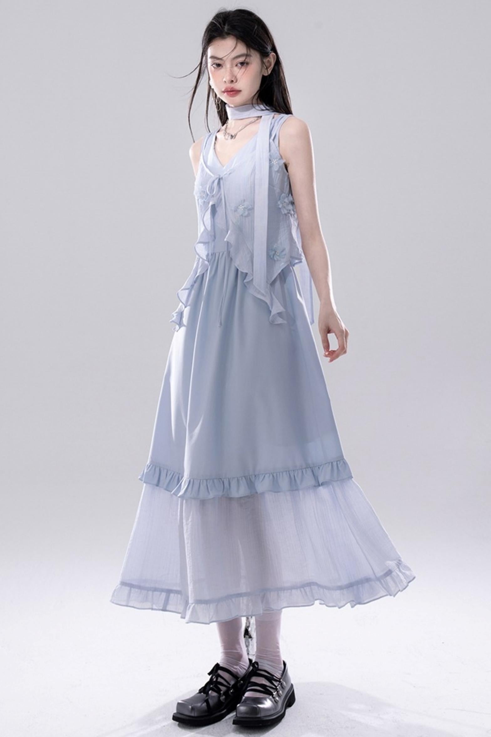 Romantic Blue Flower Cardigan Skirt Set