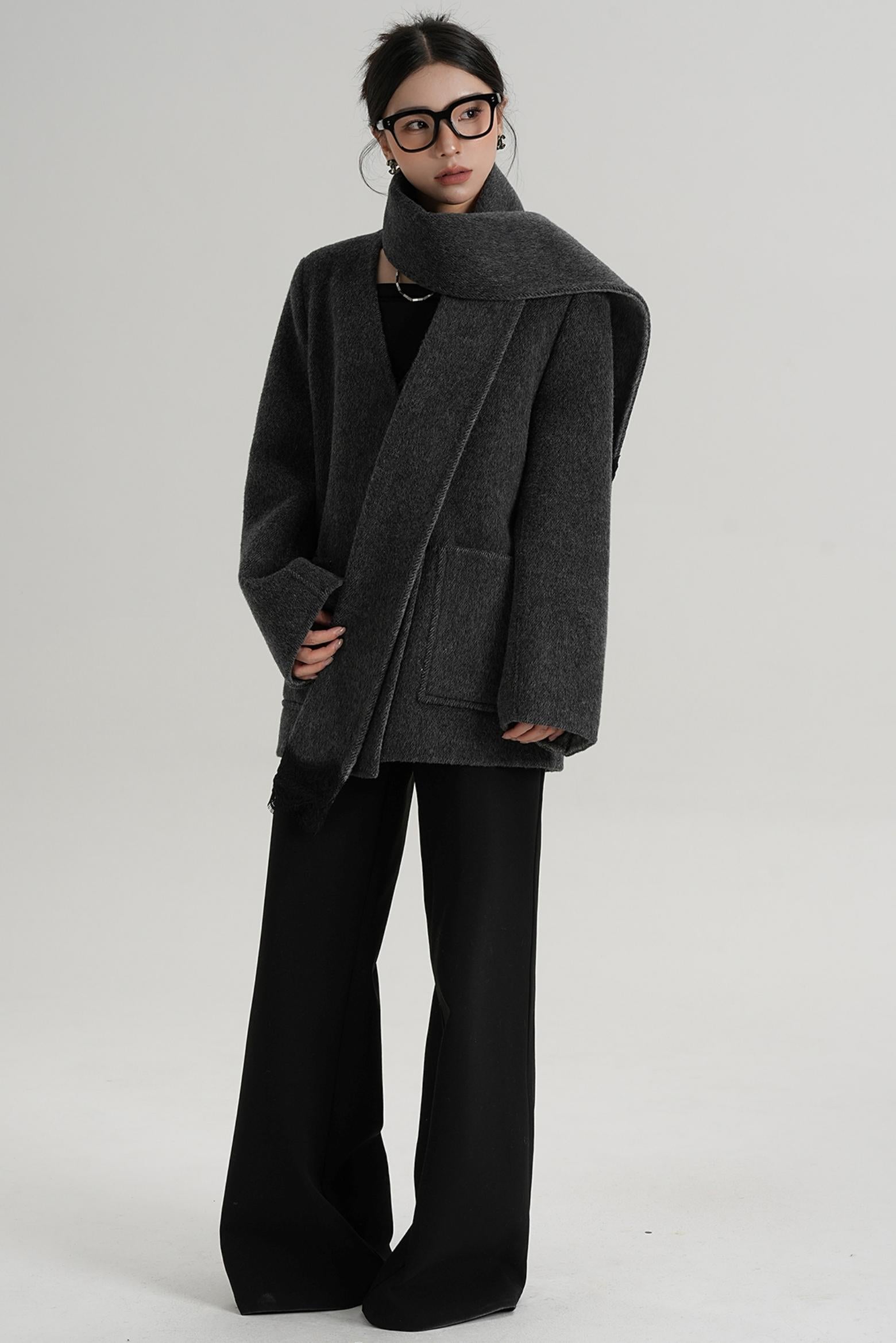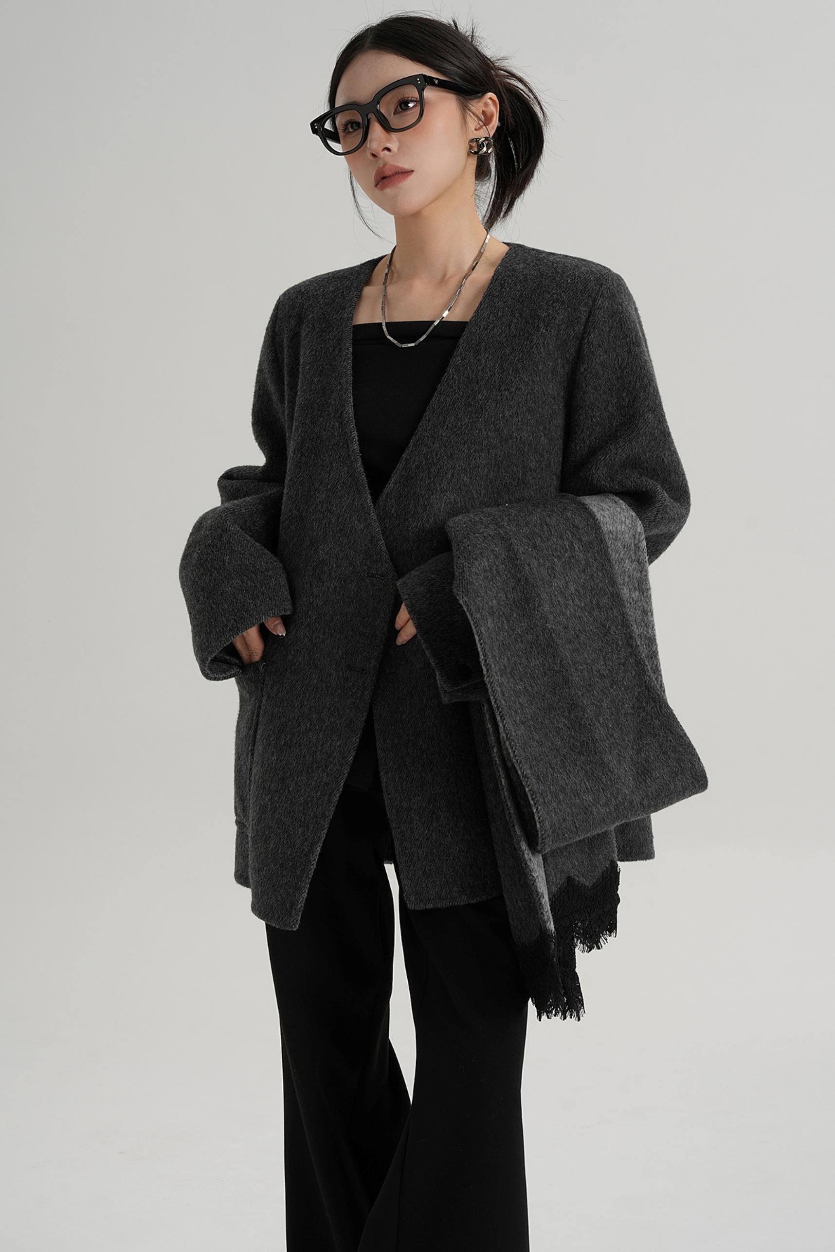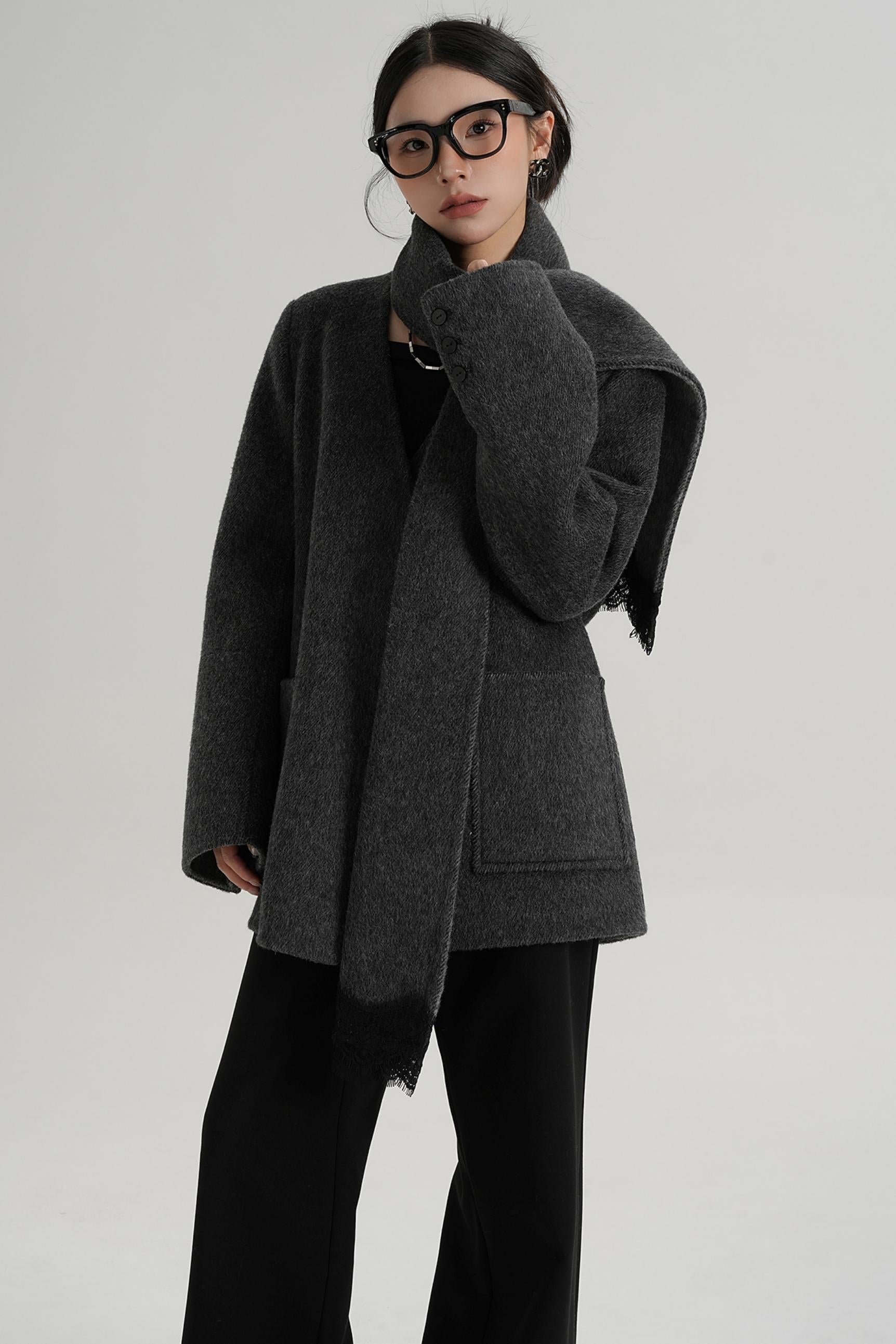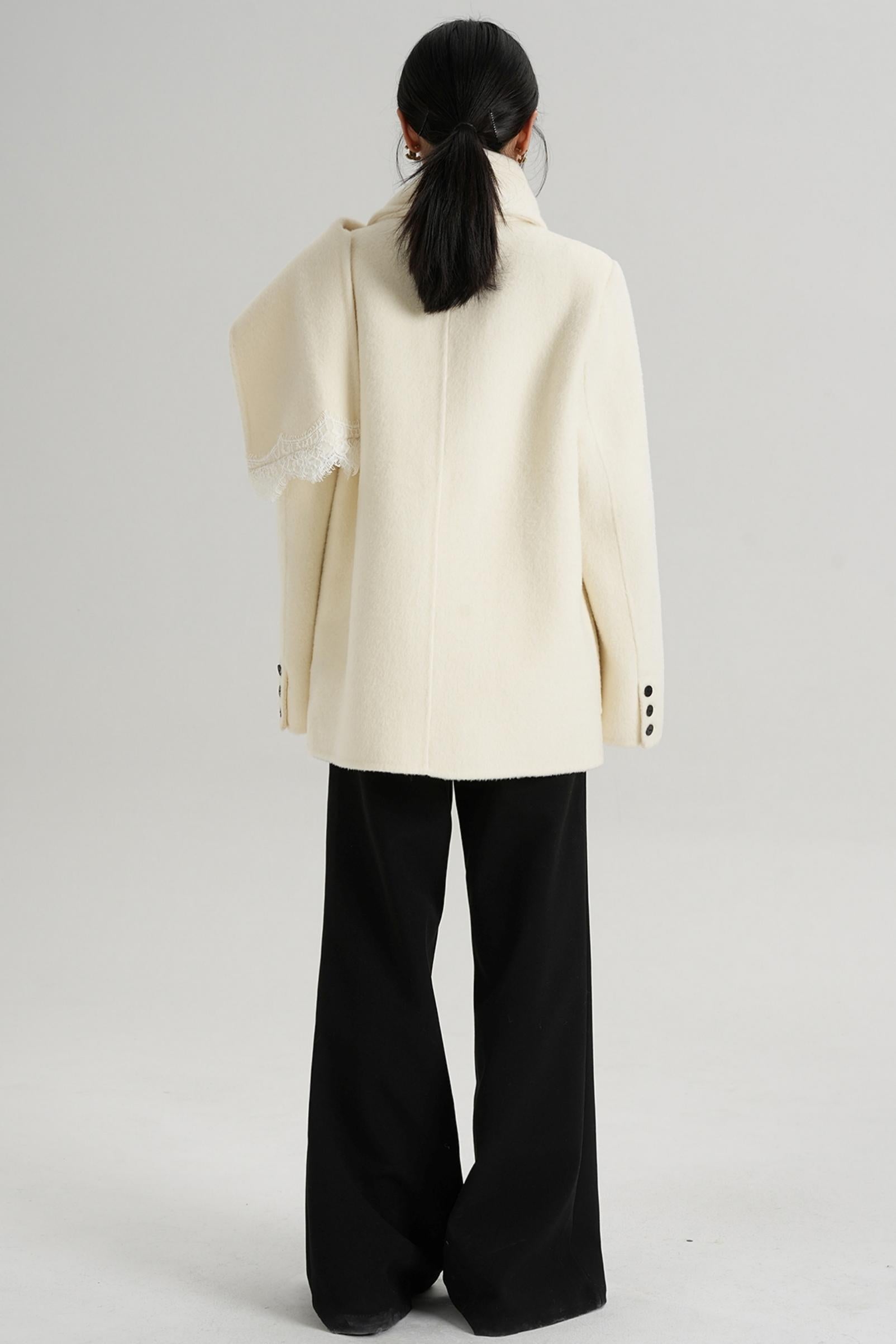 Scarf Patchwork Lace Woolen Coat