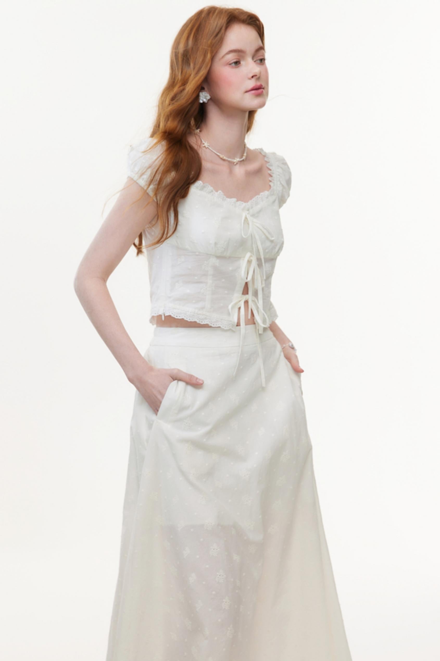 Skeleton Embroidered Two-Piece Skirt Set-Up
