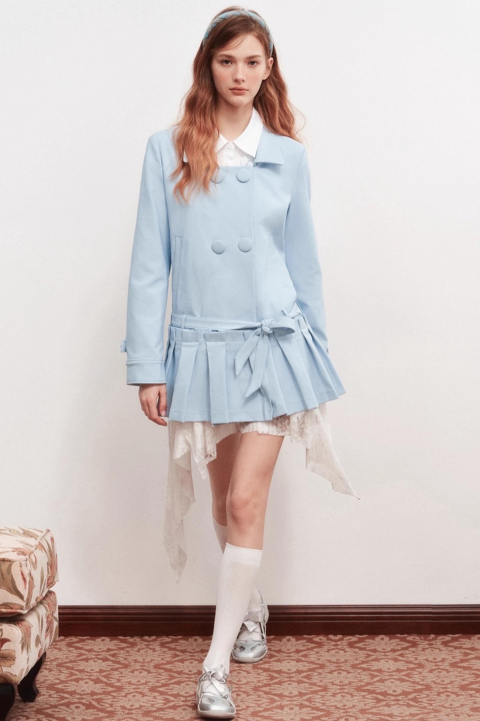 Square Neck Shirred Trench Coat Dress