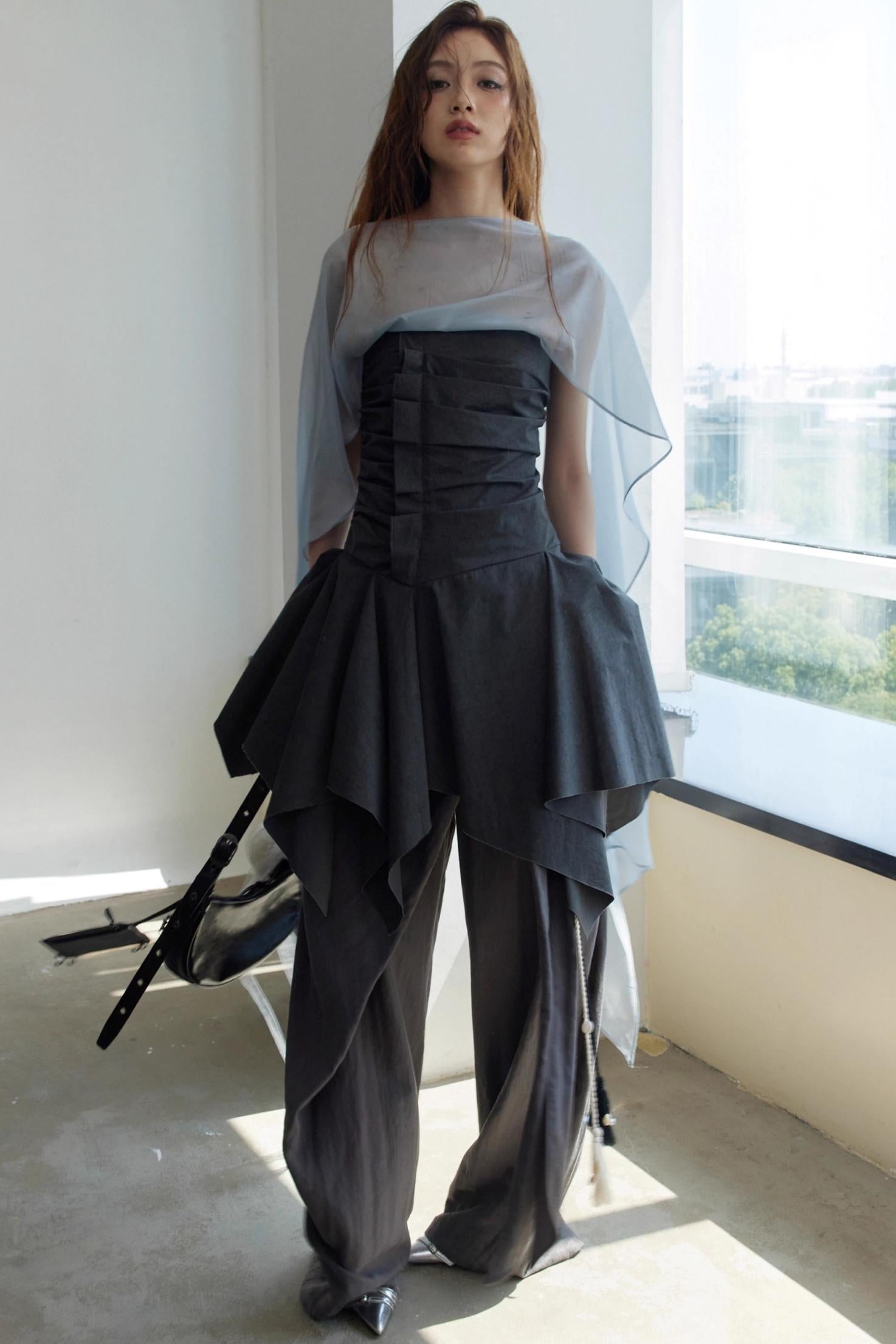 Wax-Dyed Asymmetric Hem Vintage Vest