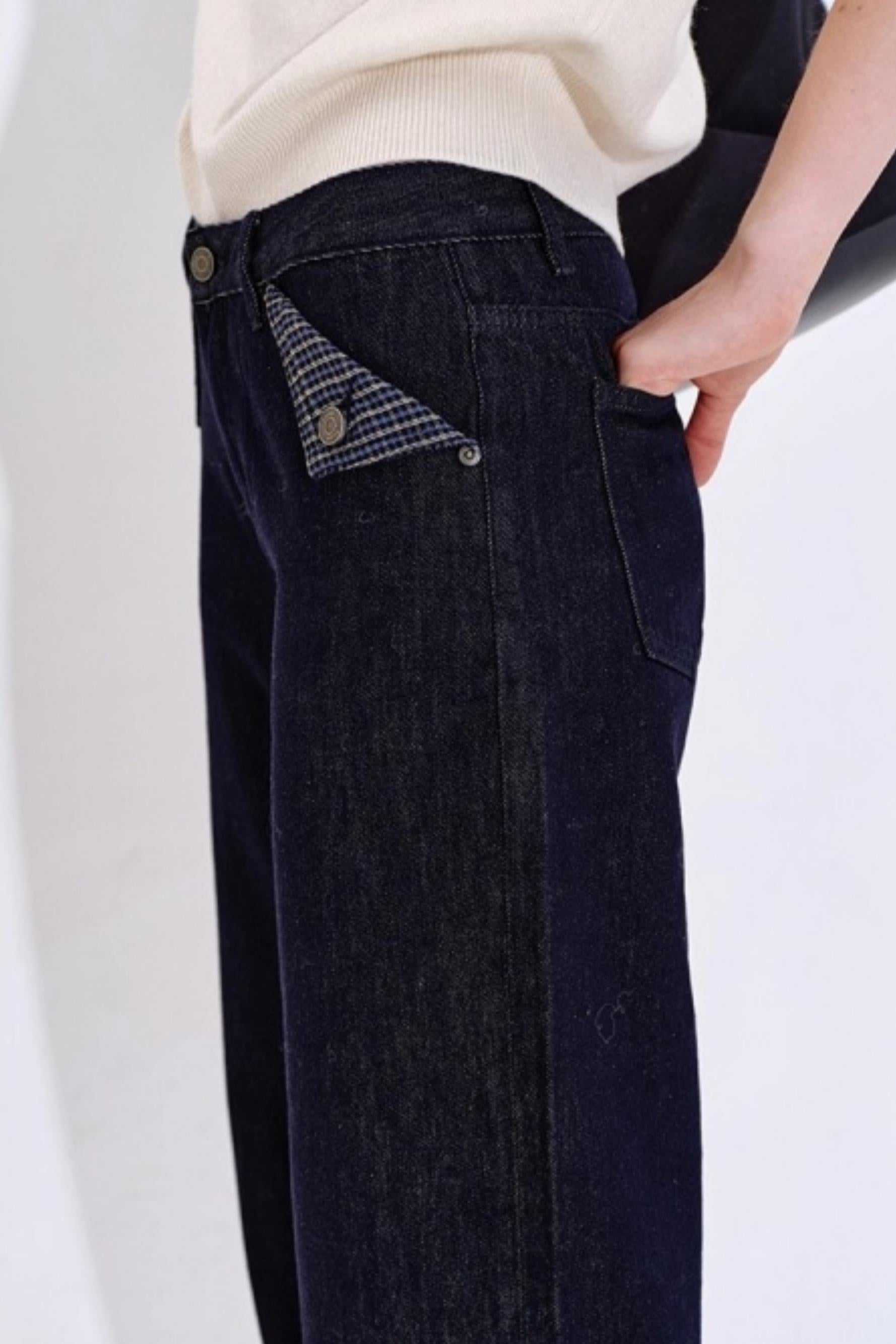 Yuppie Check Contrast Straight Jeans