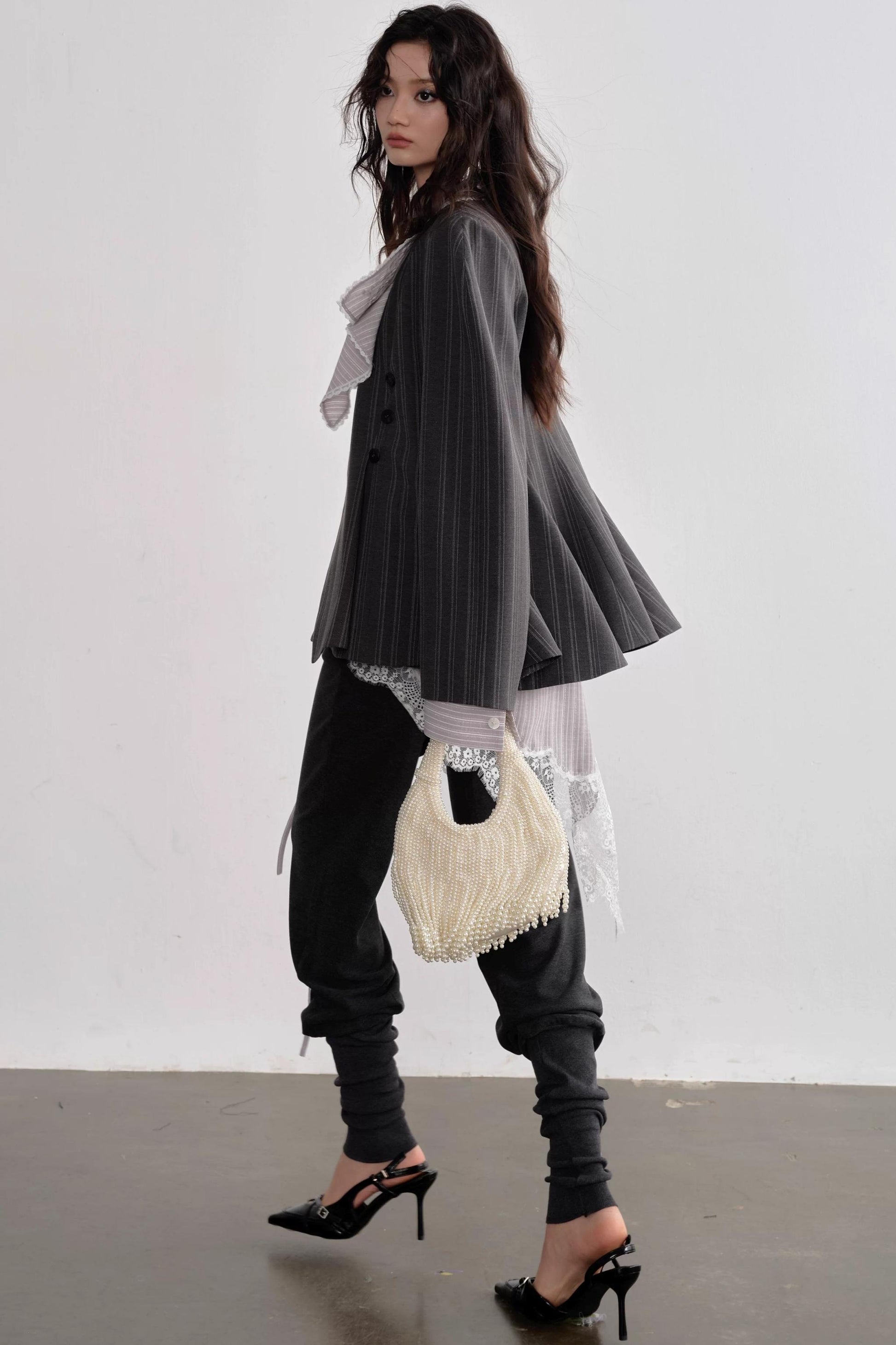 Asymmetrical Gray Striped Blazer